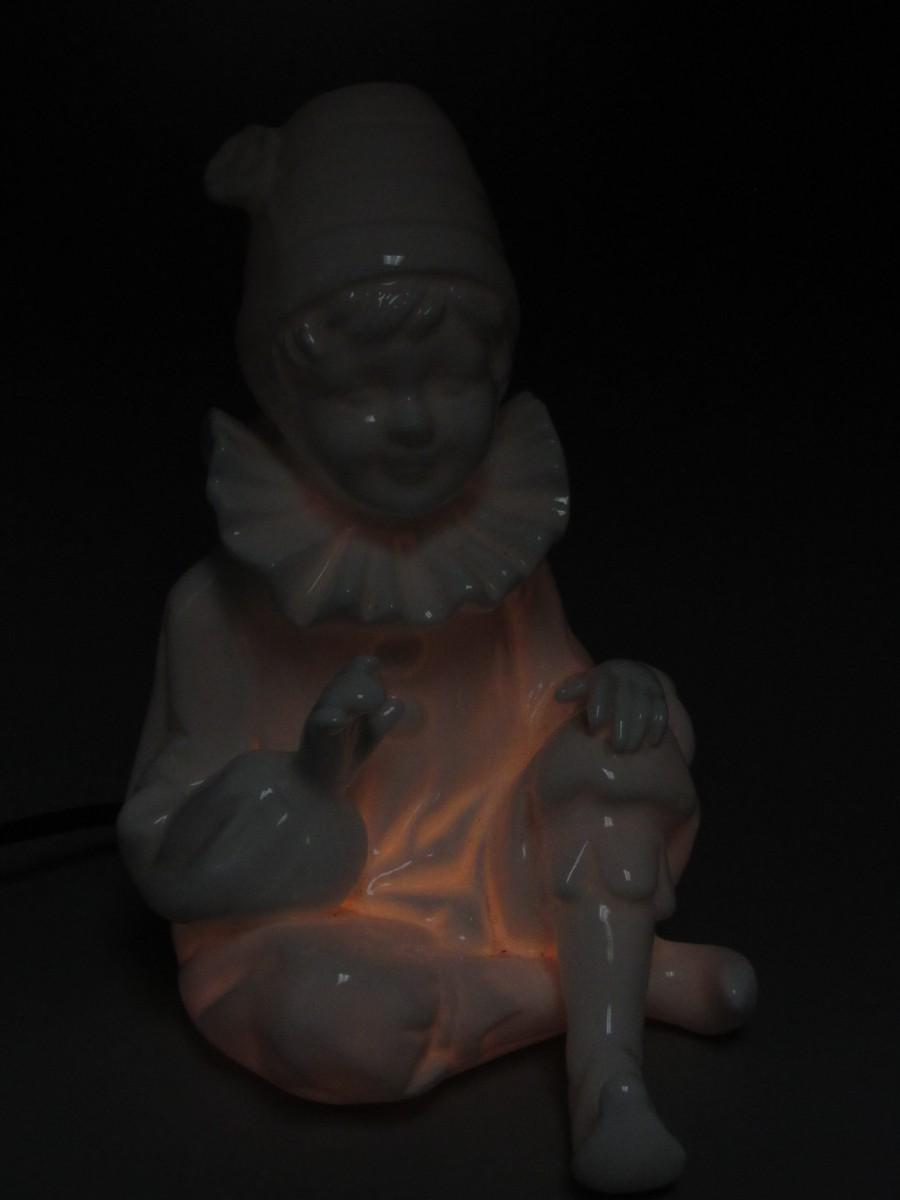 Vintage Underwriters Laboratories MCM Pierrot Child Glowing Ceramic Lamp