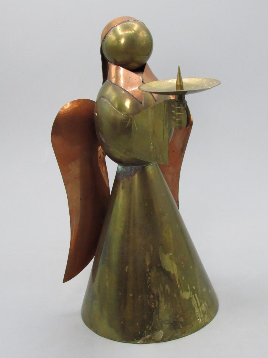 Vintage Brass Metal Made in Hong Kong Angel Religious Holiday Decor Candleholder