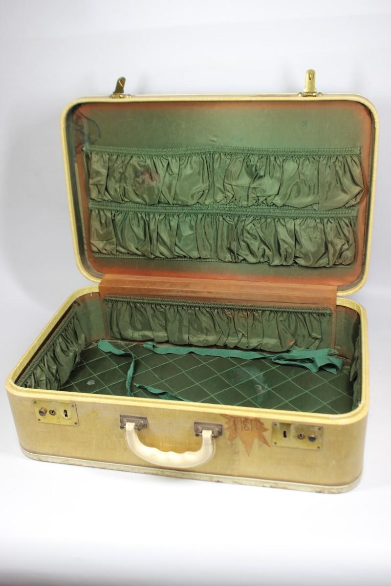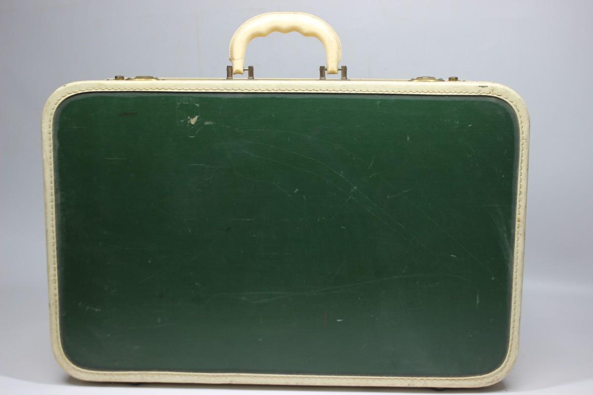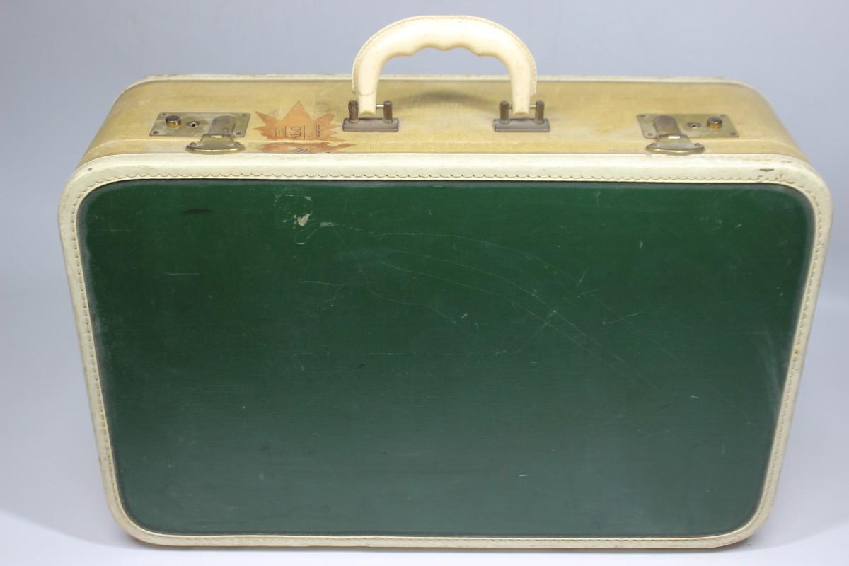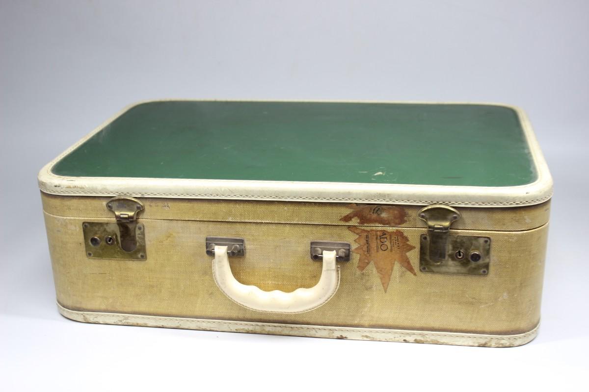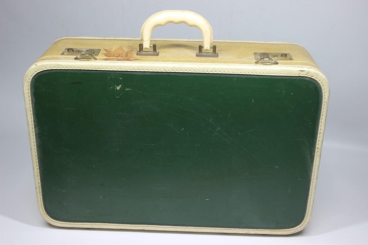 Vintage Mid Century Suitcase Handled Travel Luggage