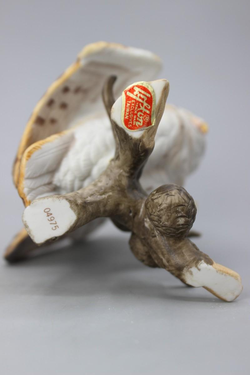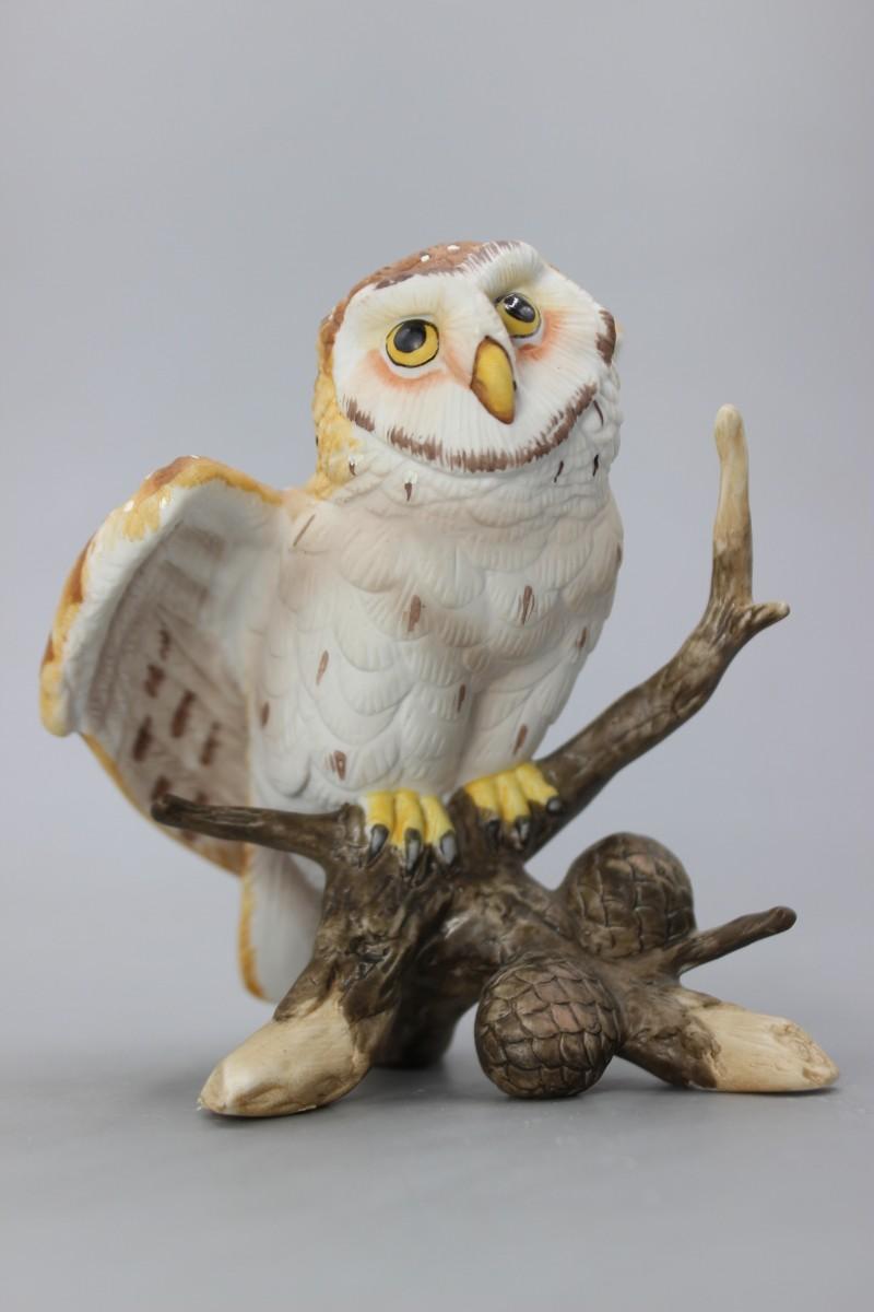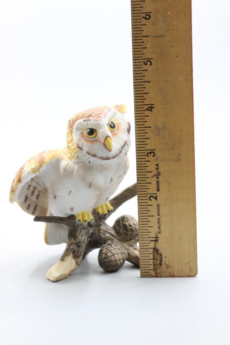 Vintage Lefton #04975 Porcelain Barn Owl Perched branch acorns Figurine Statuette Figurine