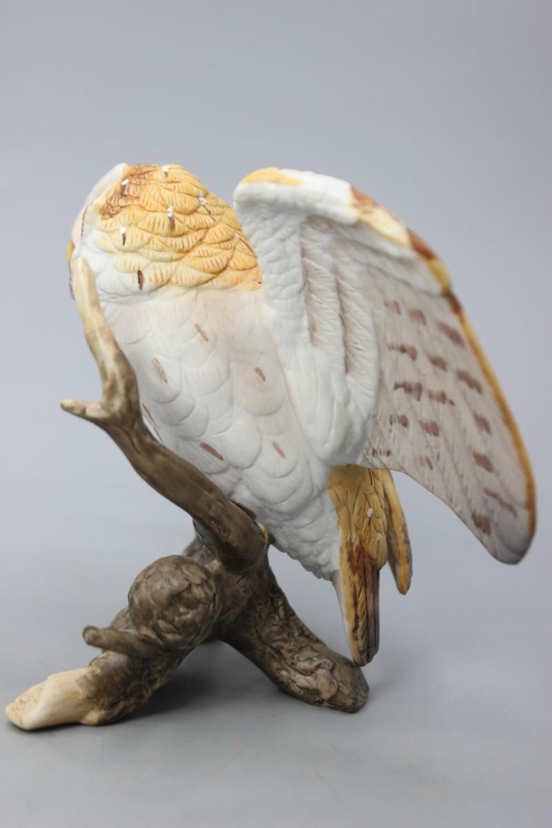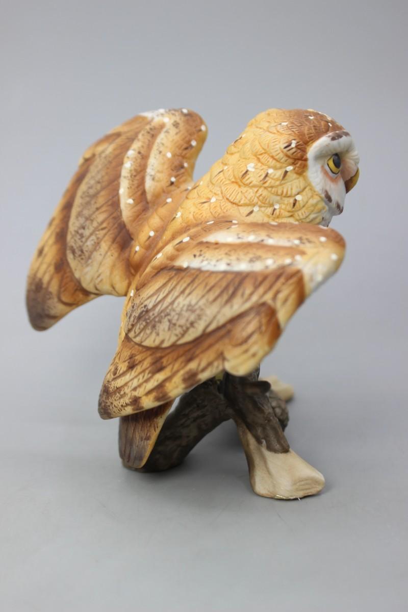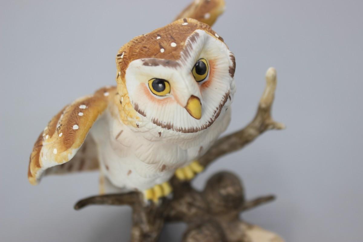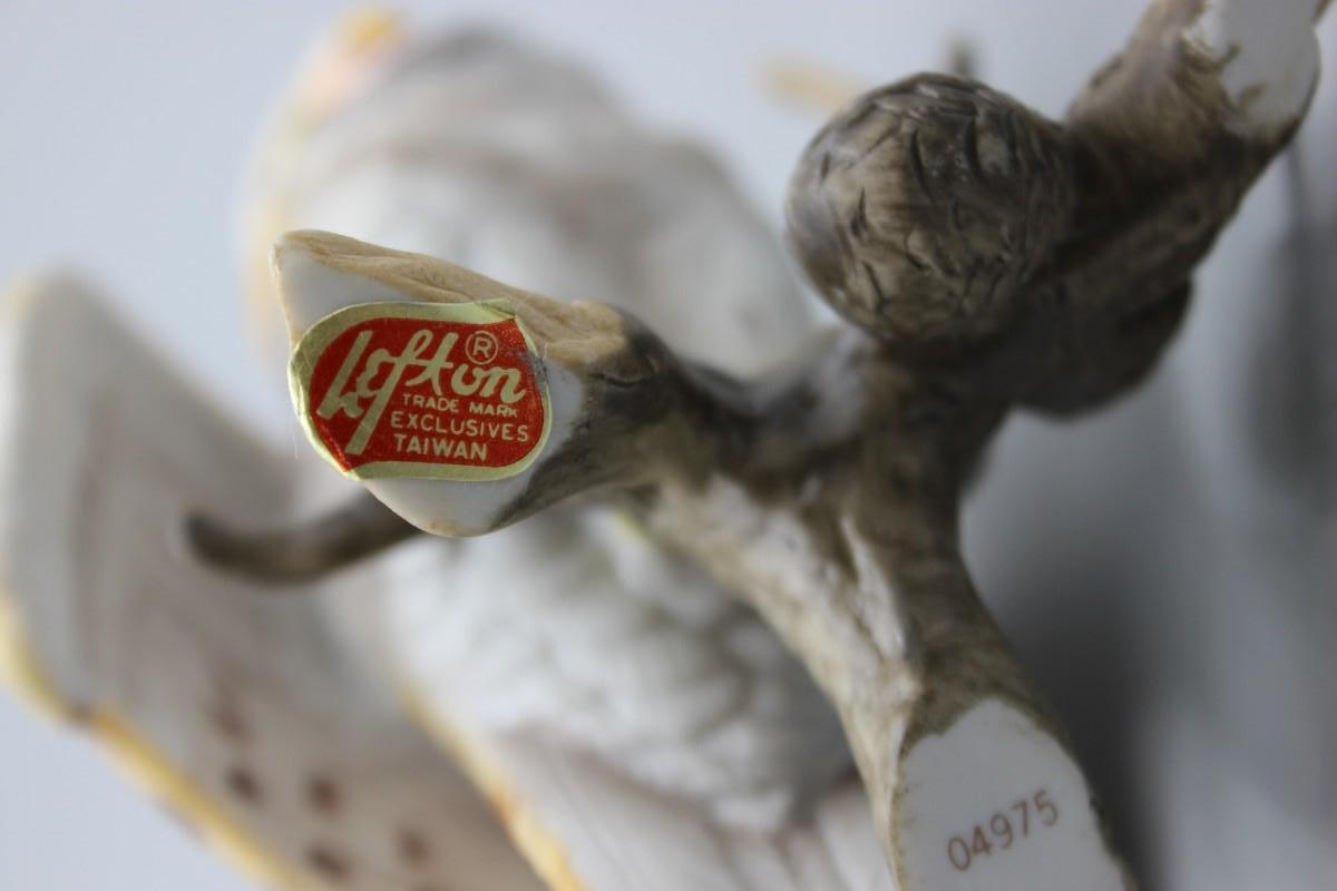 Vintage Lefton #04975 Porcelain Barn Owl Perched branch acorns Figurine Statuette Figurine