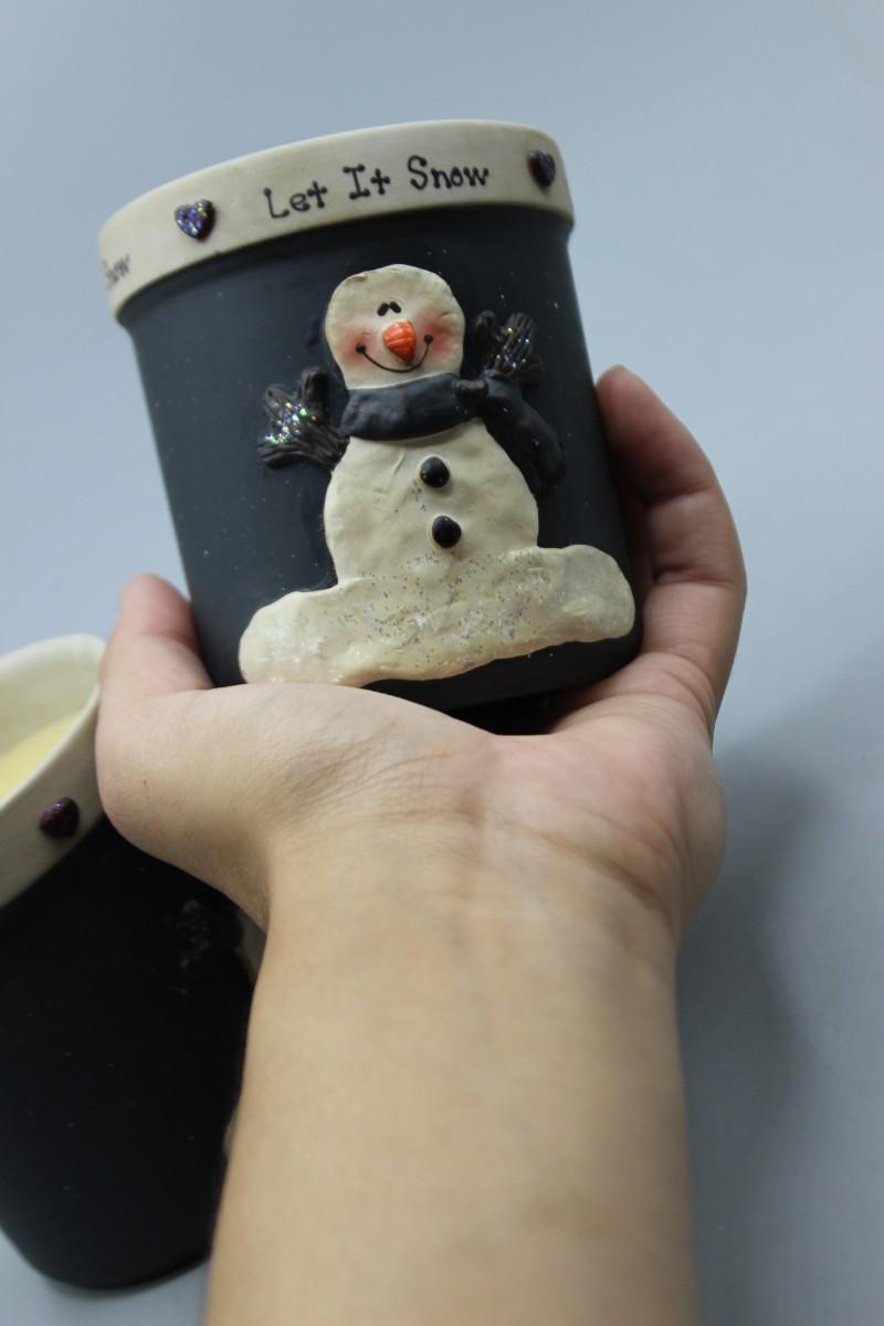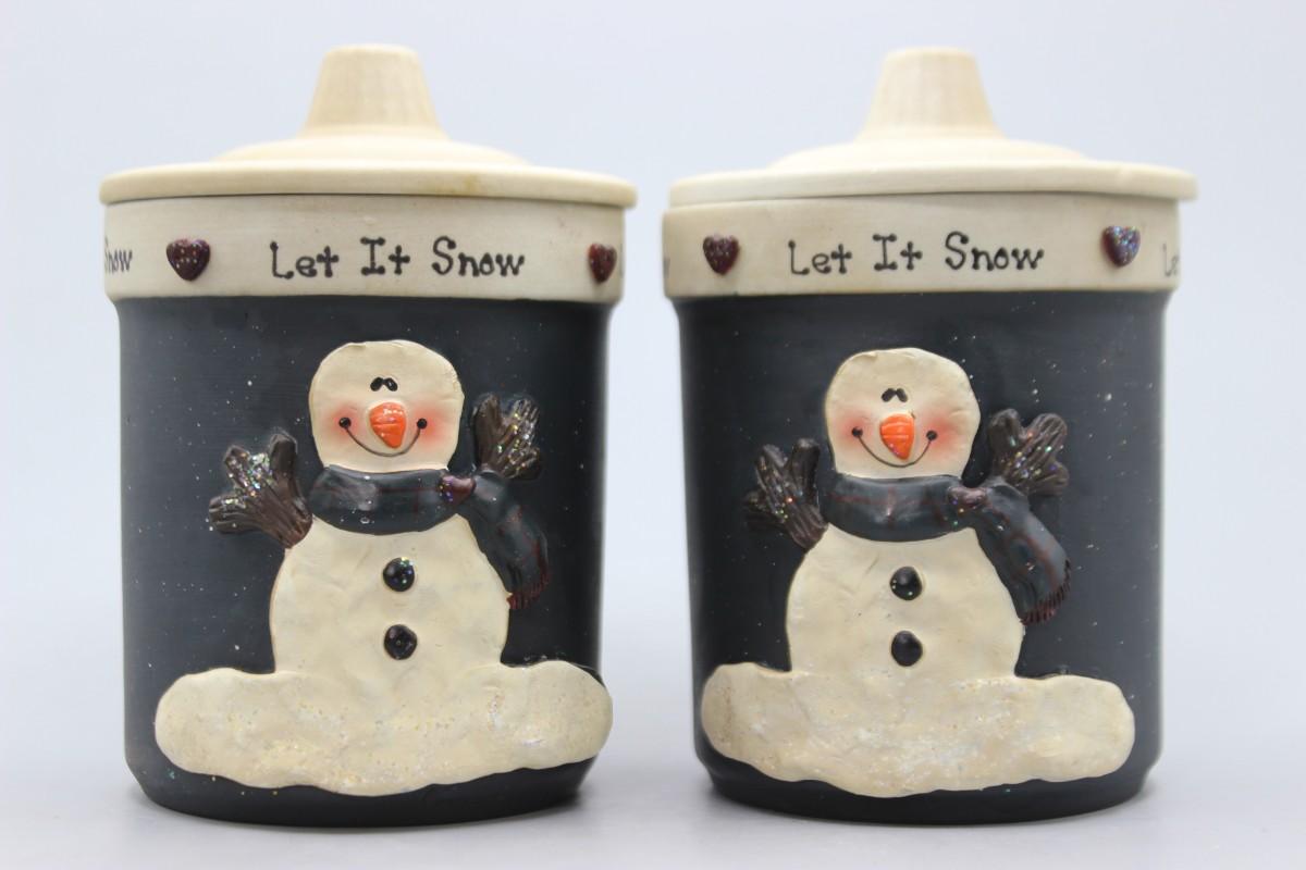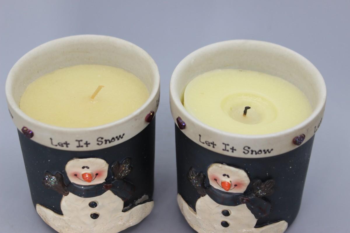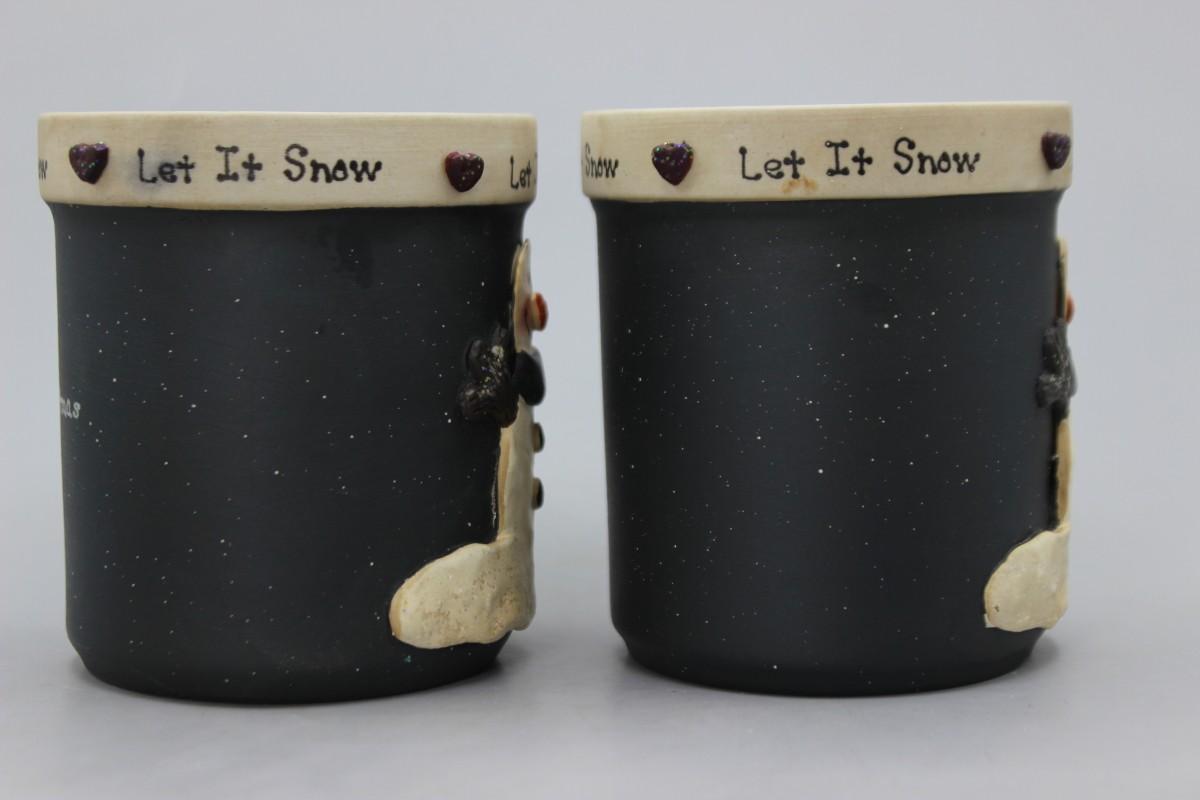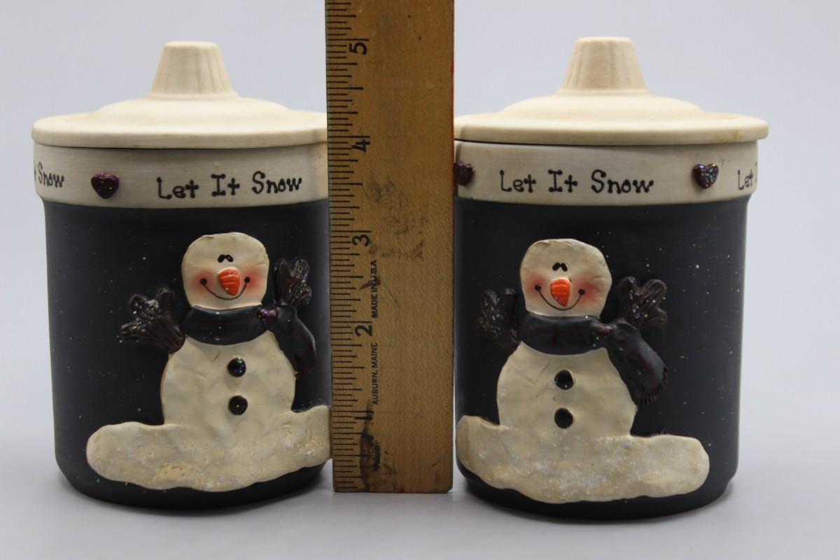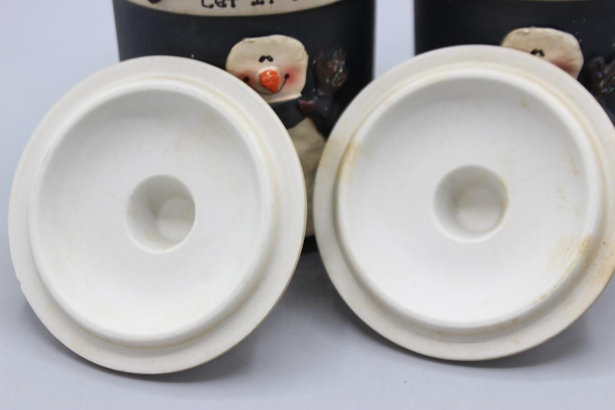 Pair of Happy Snowman Christmas Decor Crazy Mountain Henton Let It Snow Candles