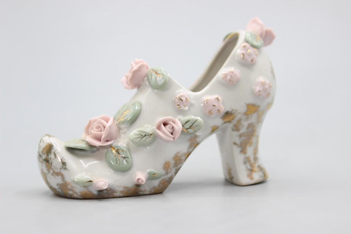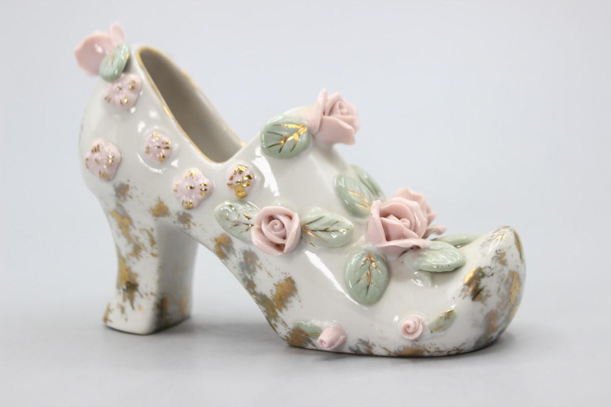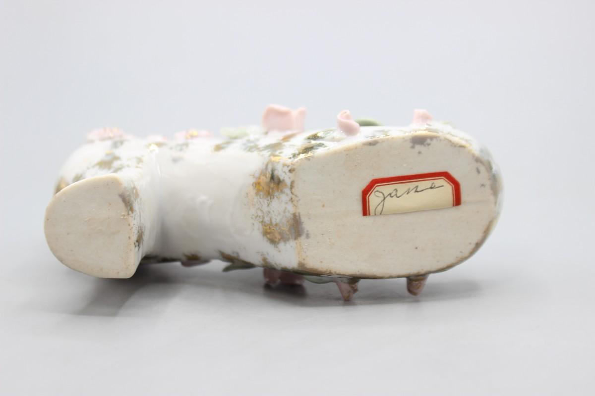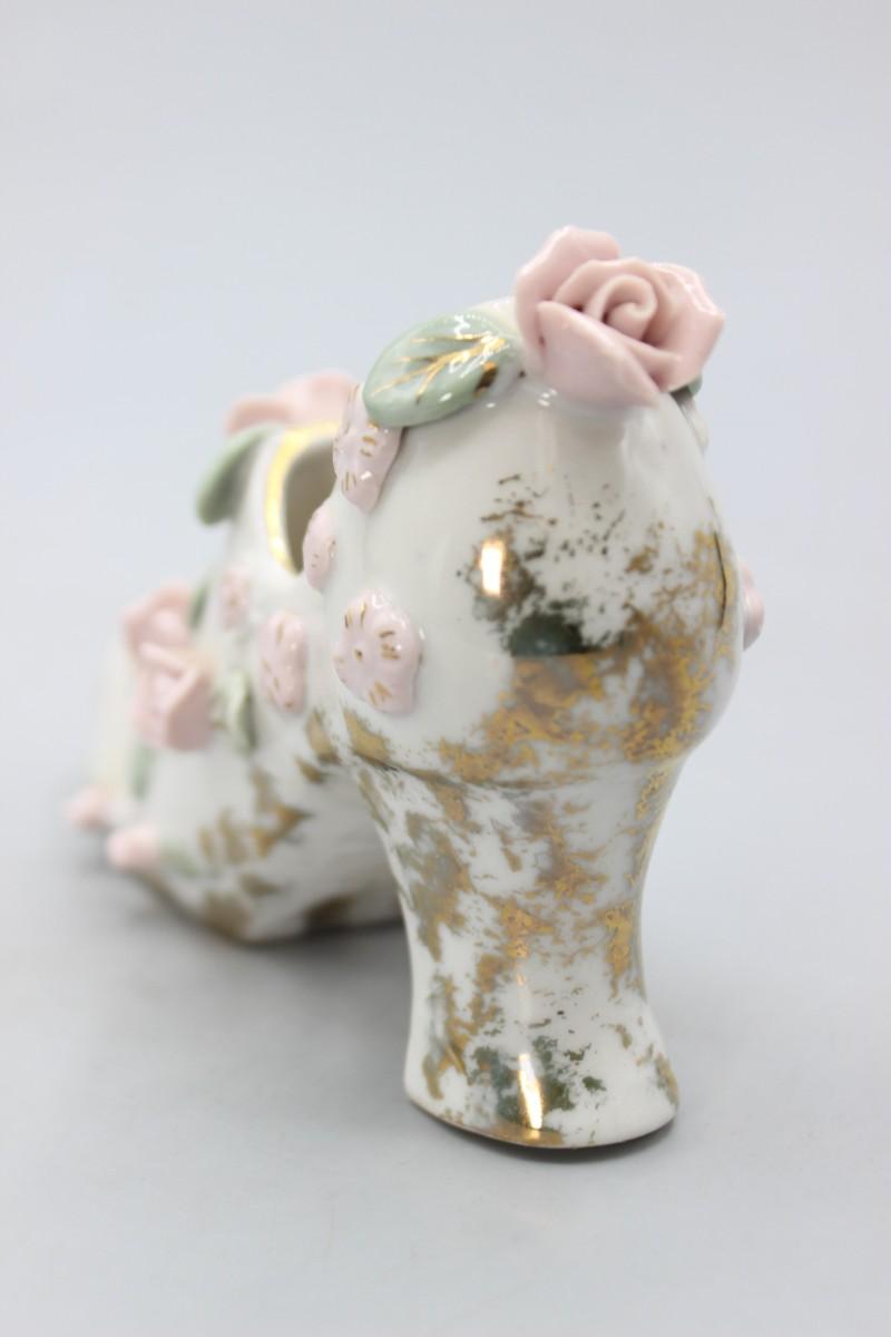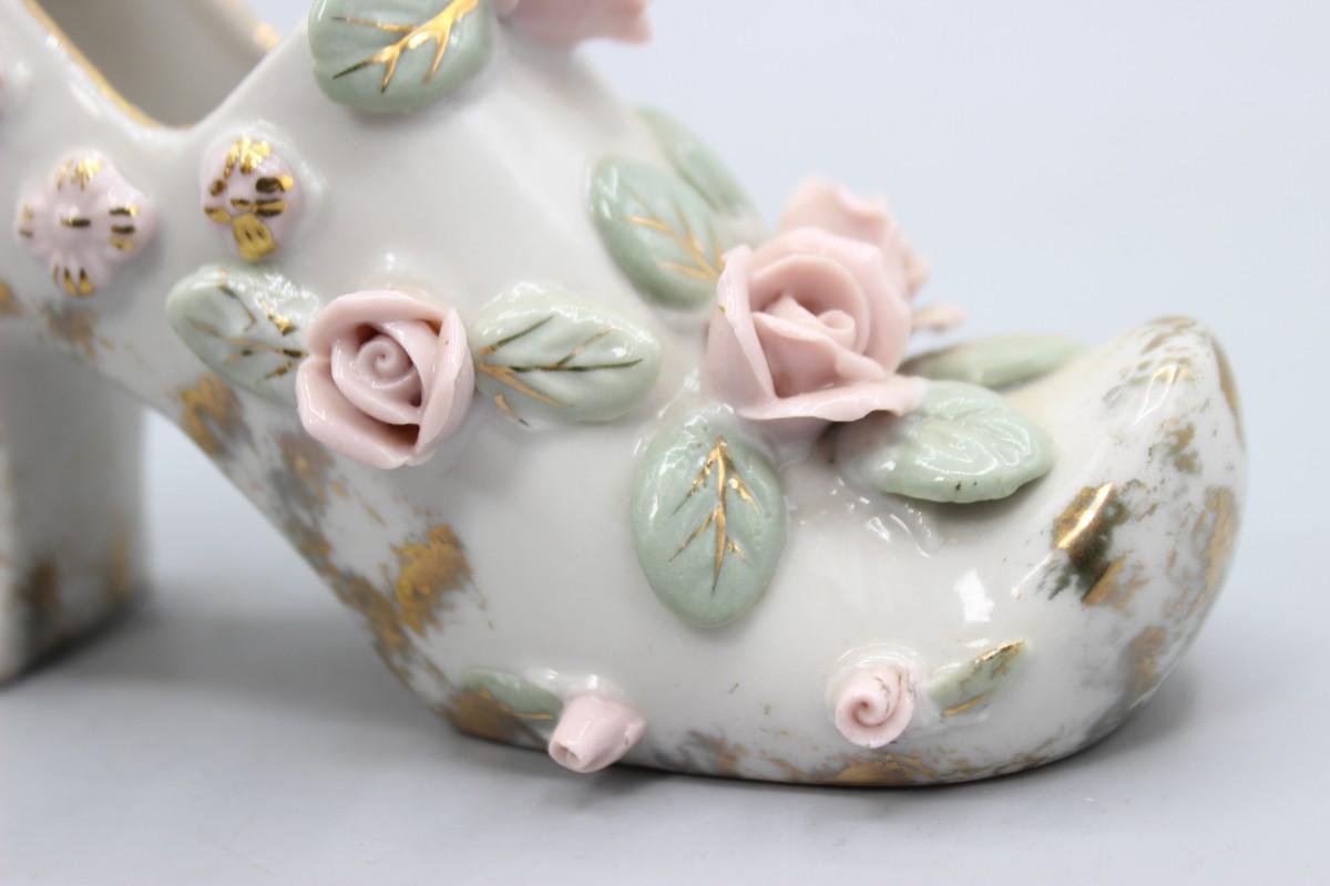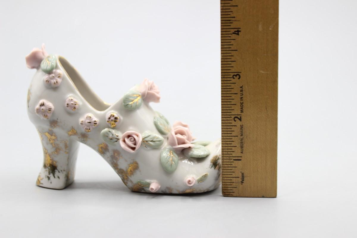 Vintage Mid Century Rose Flower Heeled Women's Shoe Victorian Styled Figurine