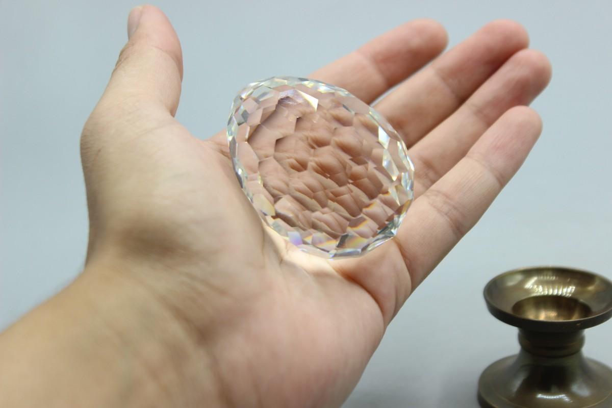 Retro Glass Art Prism Hexagon Pattern Egg with Pedestal Stand