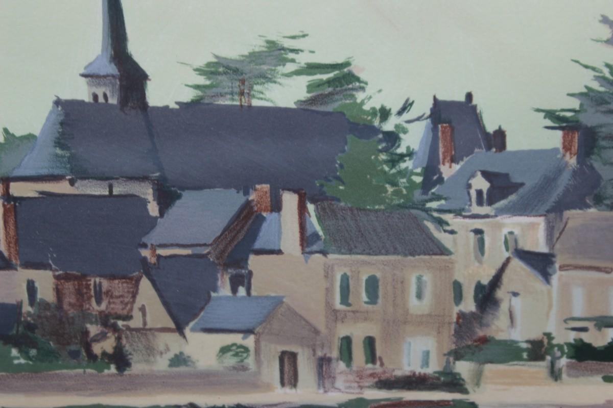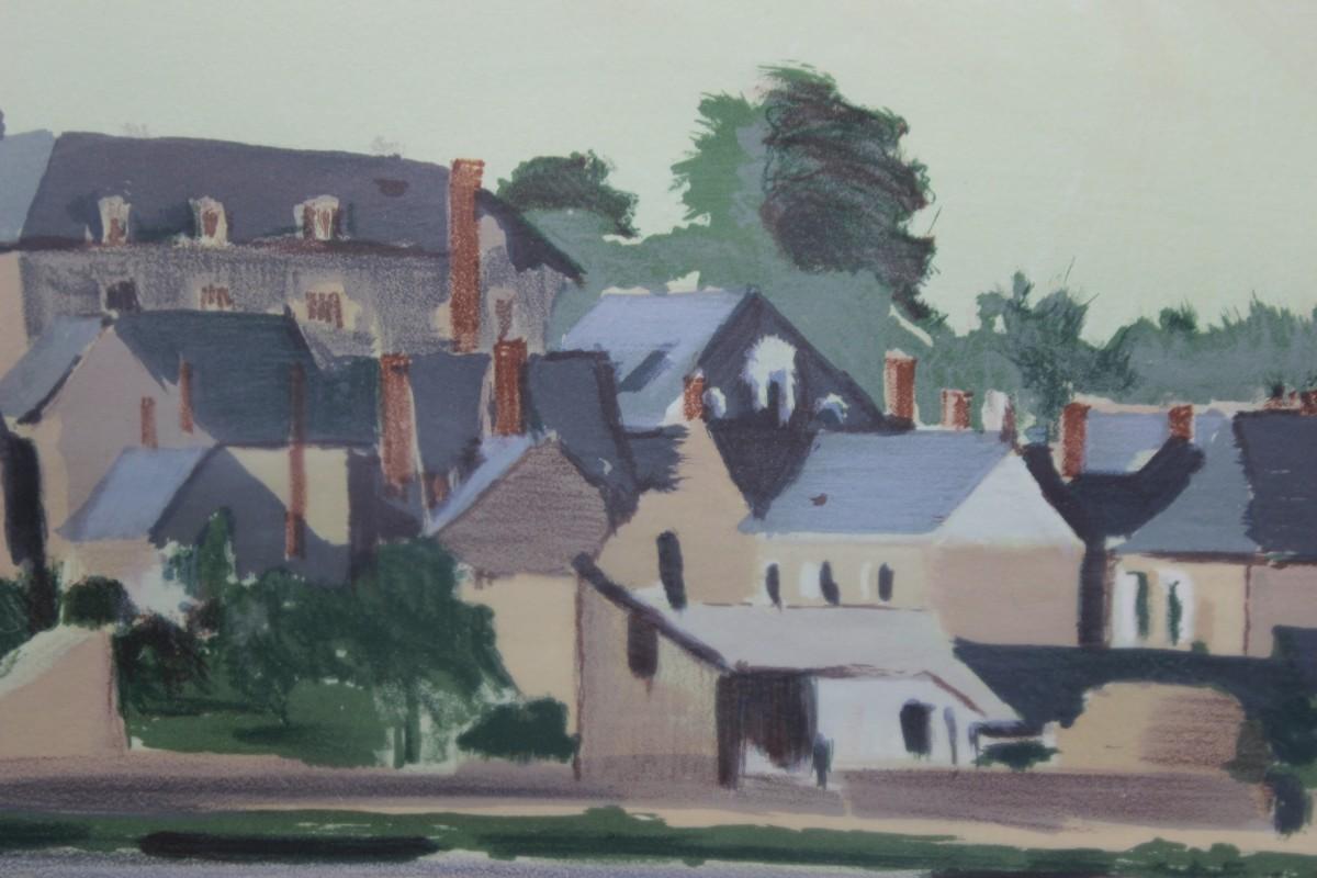 Constant le Breton Signed & Numbered Lithograph Colonial Small Town Landscape with Artist Institution Certificate of Authenticity