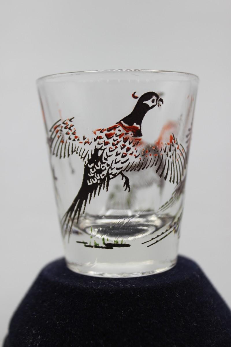 Vintage Retro Pheasant Bird Game Hunting Shot Glass. Light wear from age.