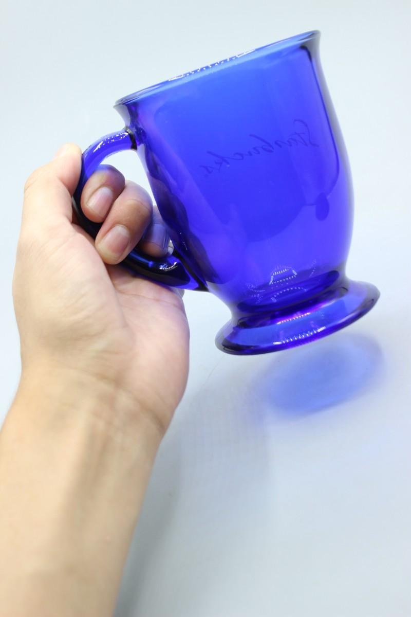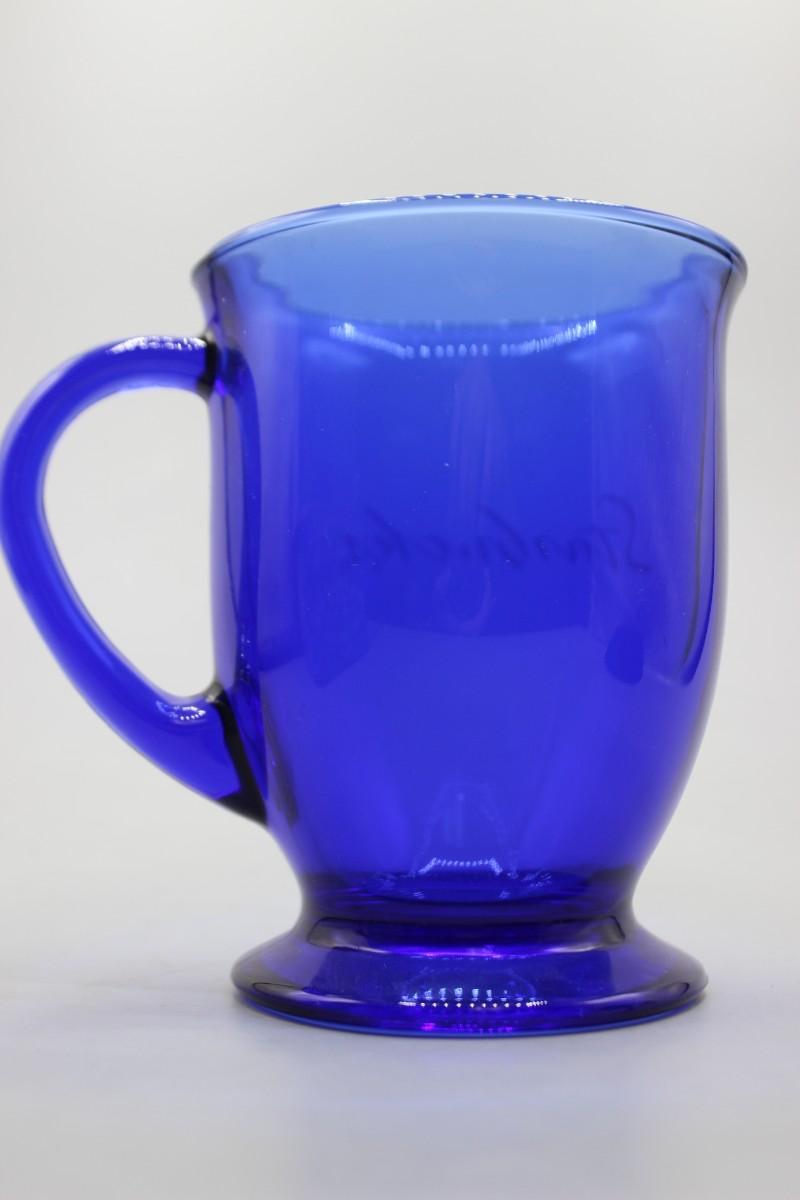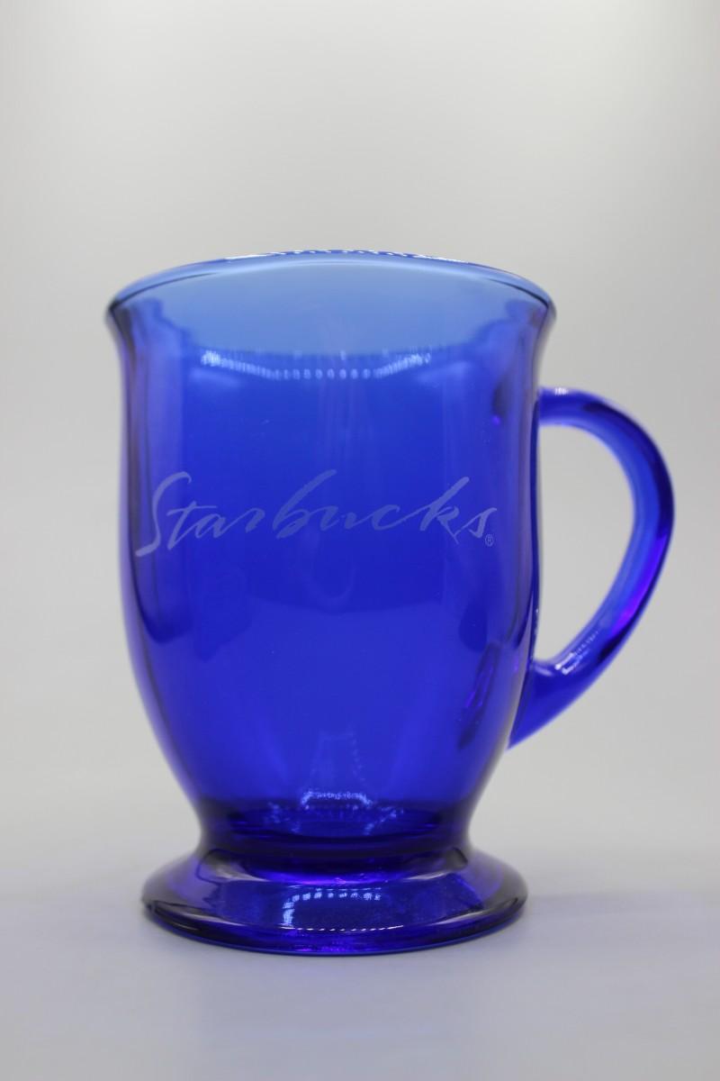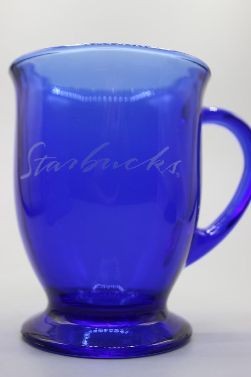 Blue Glass Starbucks Etched Coffee Cup Mug