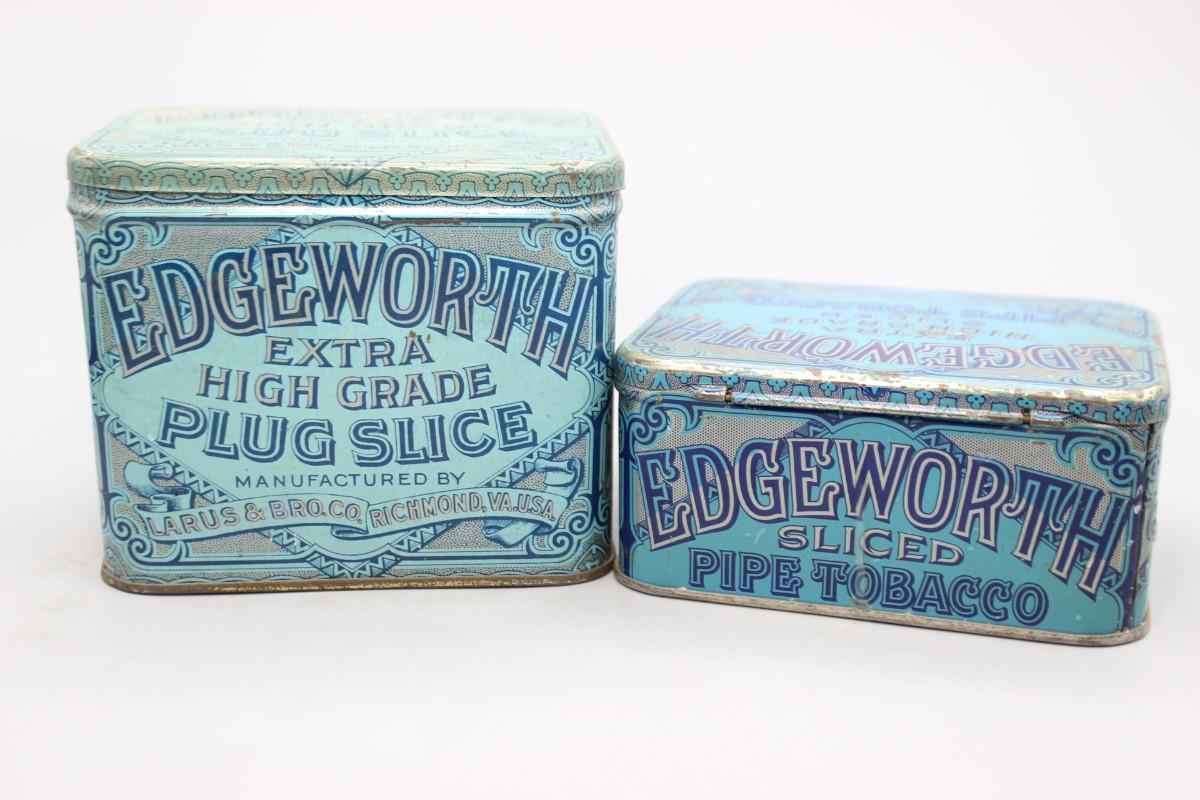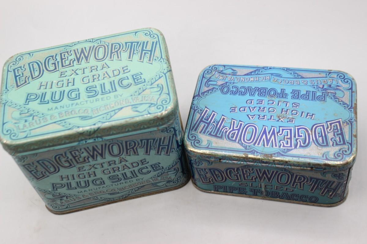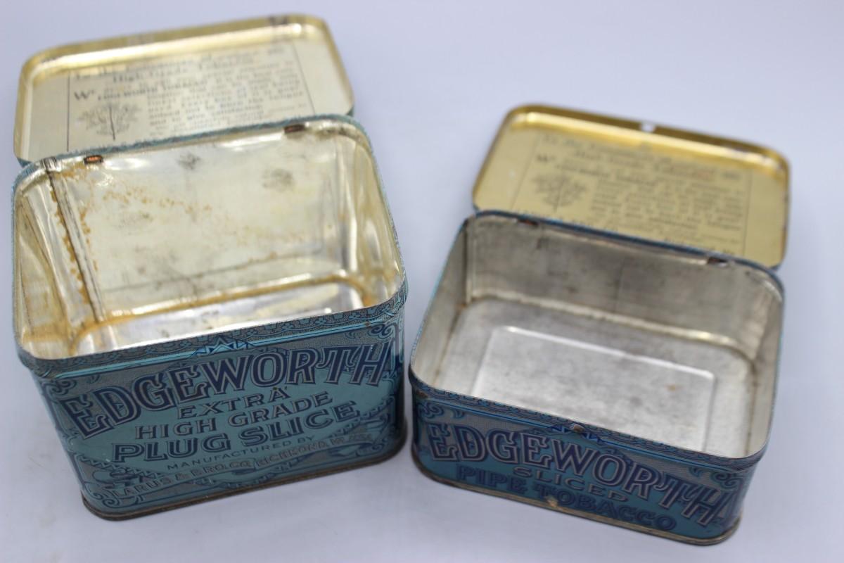 Pair of Vintage Blue Edgeworth Plug Slice and Pipe Tabacco Storage Tins Canisters