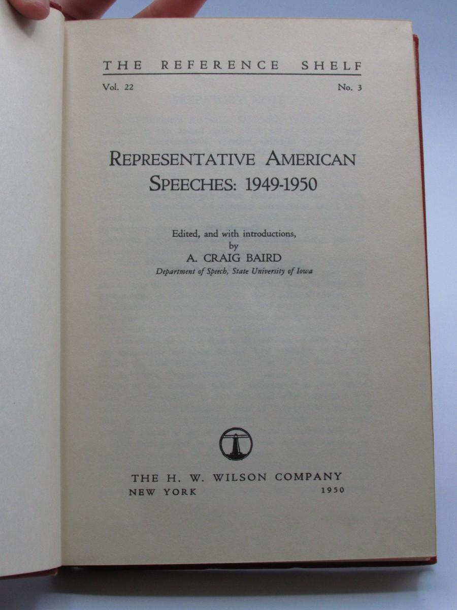 Vintage Hardcover Reference Book Representative American Speeches: 1949-1950. Copyright 1950 by HW Wilson Company. In vintage condition, some wear to cover.
