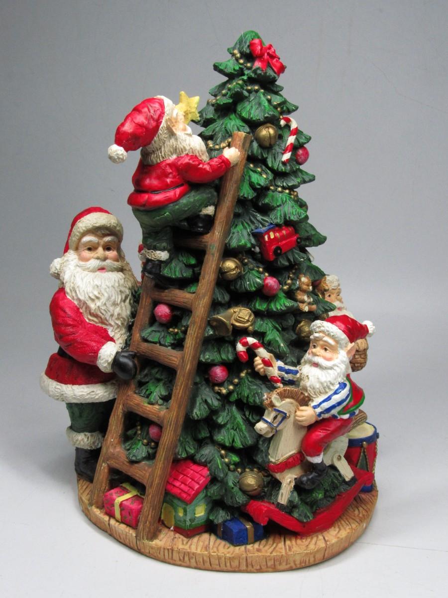 Santa Claus and Elves Decorating Holiday Tree Christmas Figurine with Original Box