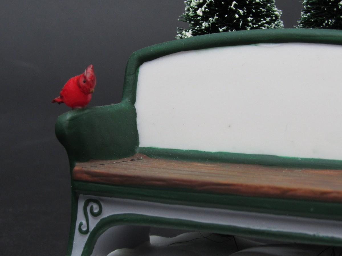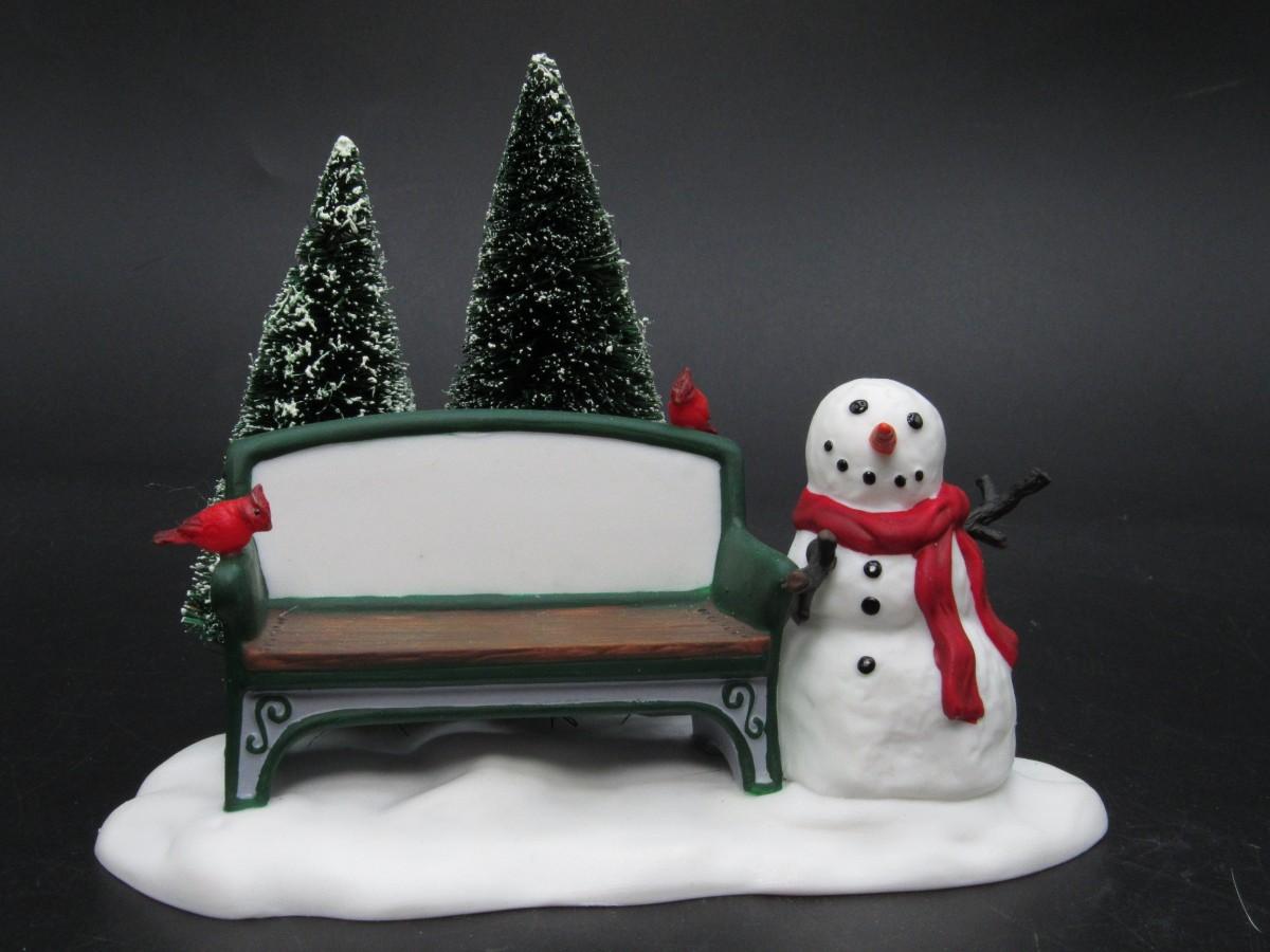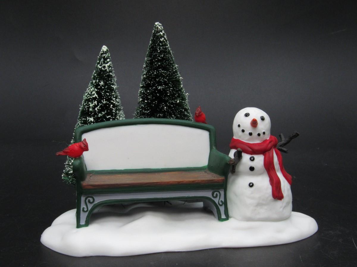Department 56 Our Own Village Park Bench Christmas Holiday Town Figurine Snowman & Cardinal Birds. In good condition. Comes with original box.