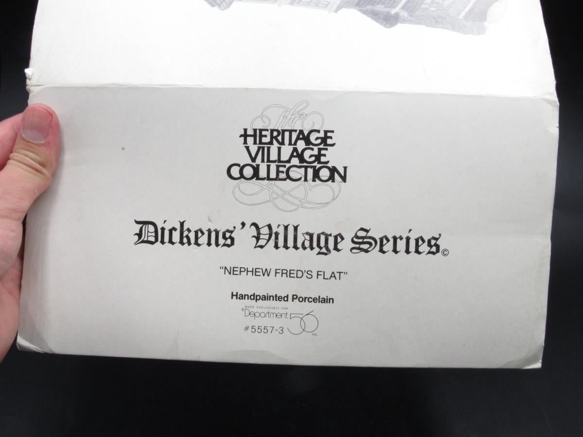 Department 56 Dickens' Series Heritage Village Collection Nephew Fred's Flat Christmas Town Building. In good condition. Comes in the original box.