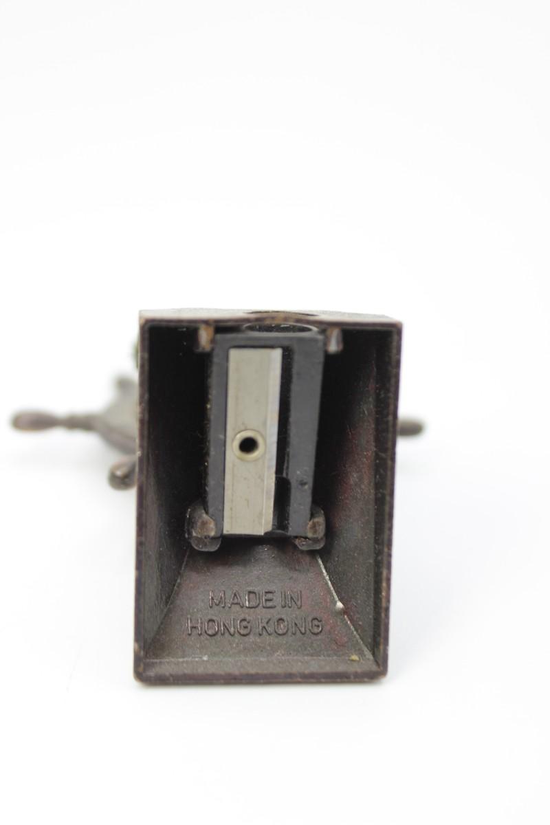 There is no damage to the metal sharpener and is in overall good collectible or useable condition. Check pictures for more details.
