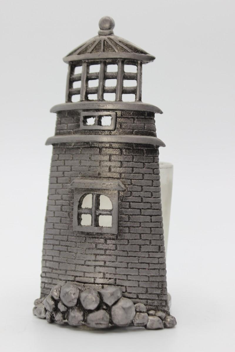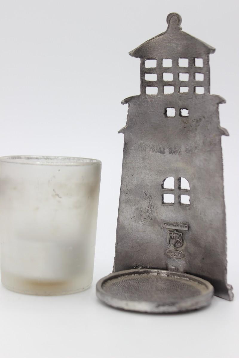 Retro Metzke Pewter Nautical Lighthouse Tea Light Candle Holder