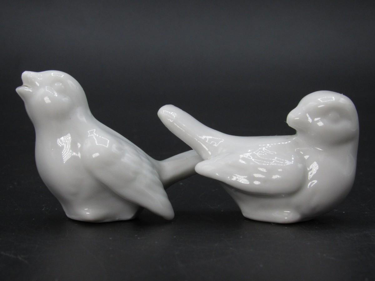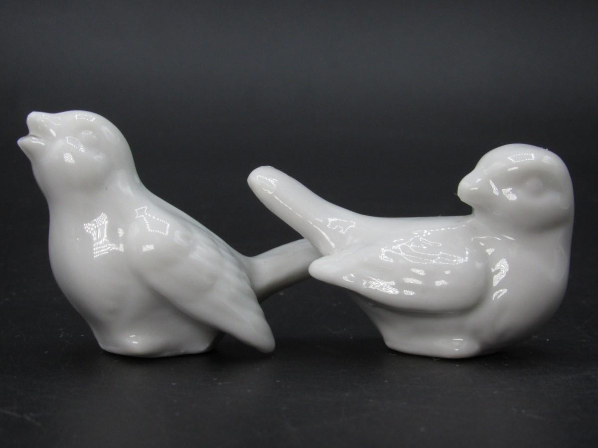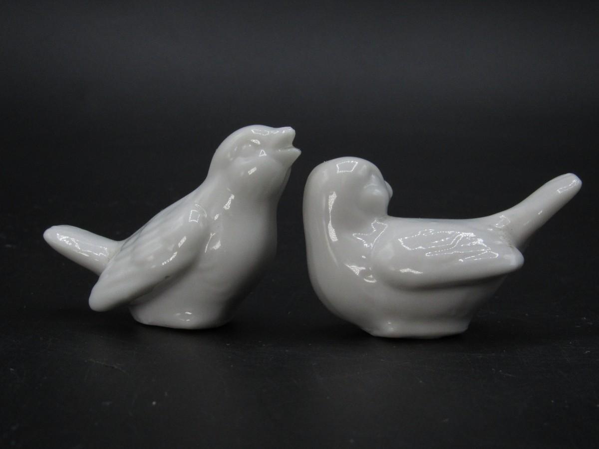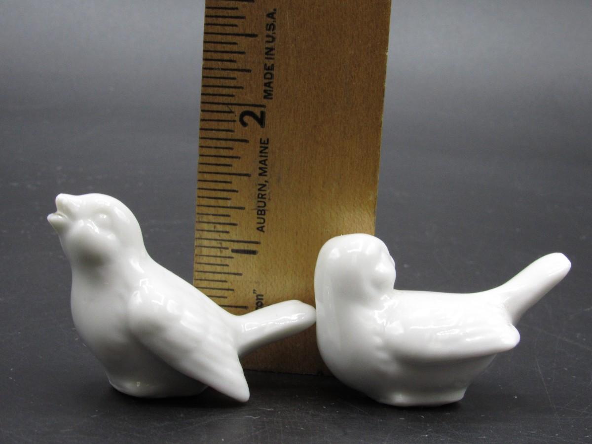 Pair of Small White Ceramic Trinket Bird Cottagecore Figurines