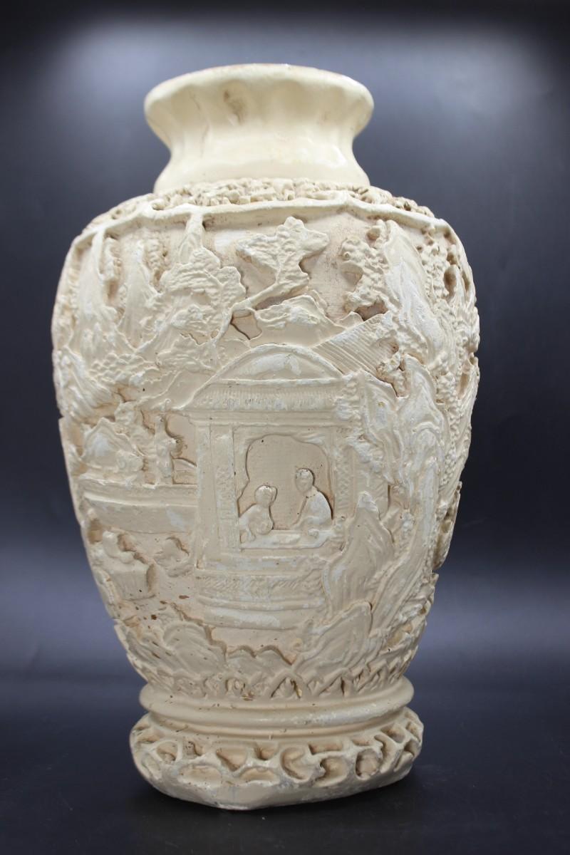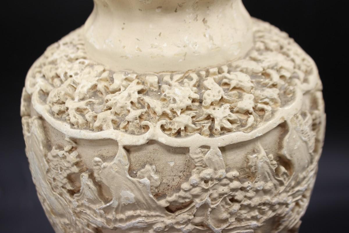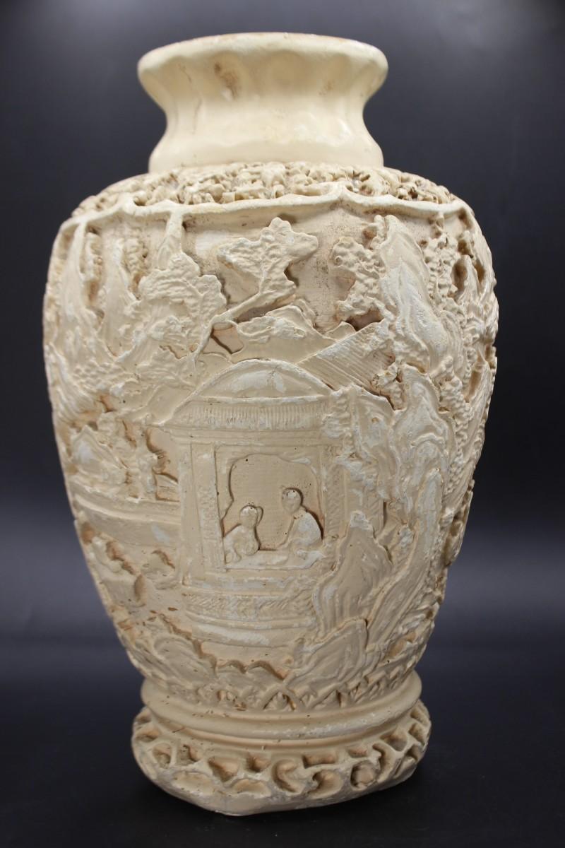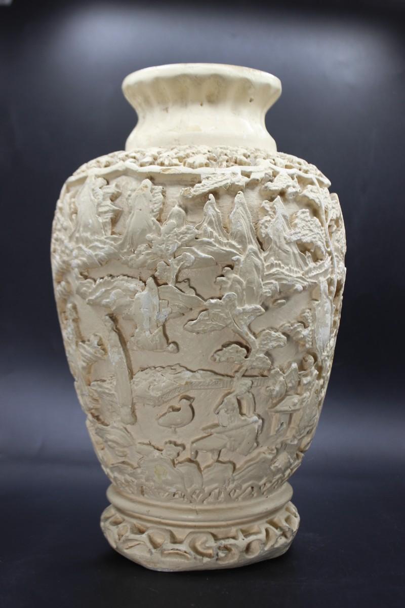 Large Retro Etched Carved Plaster Oriental Design Detailed Vase Decor
