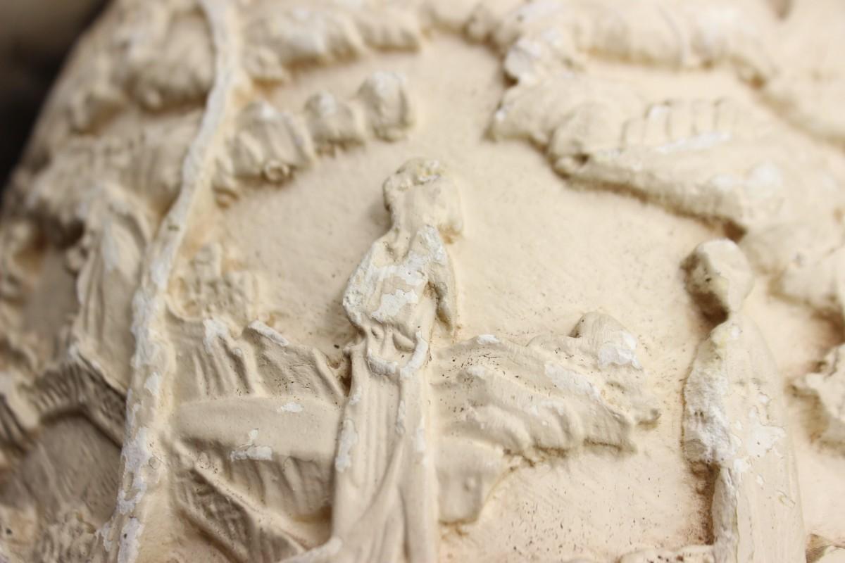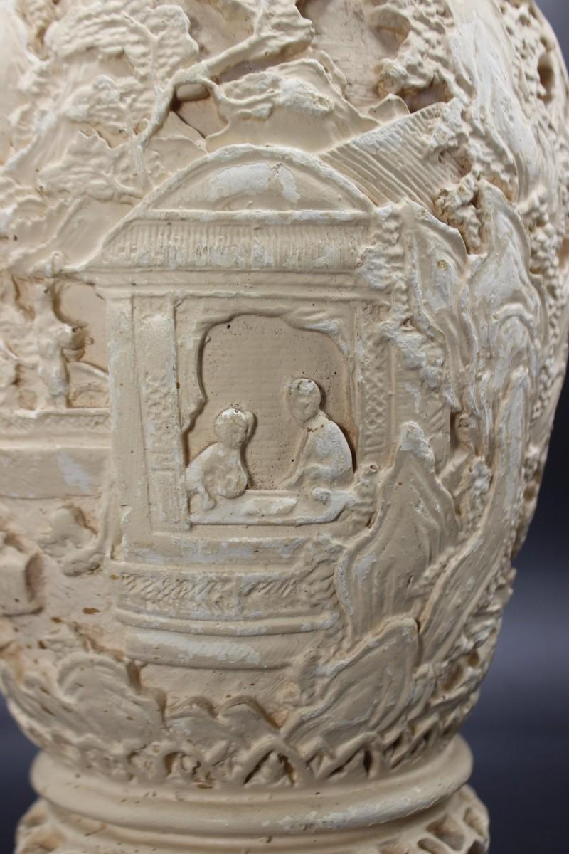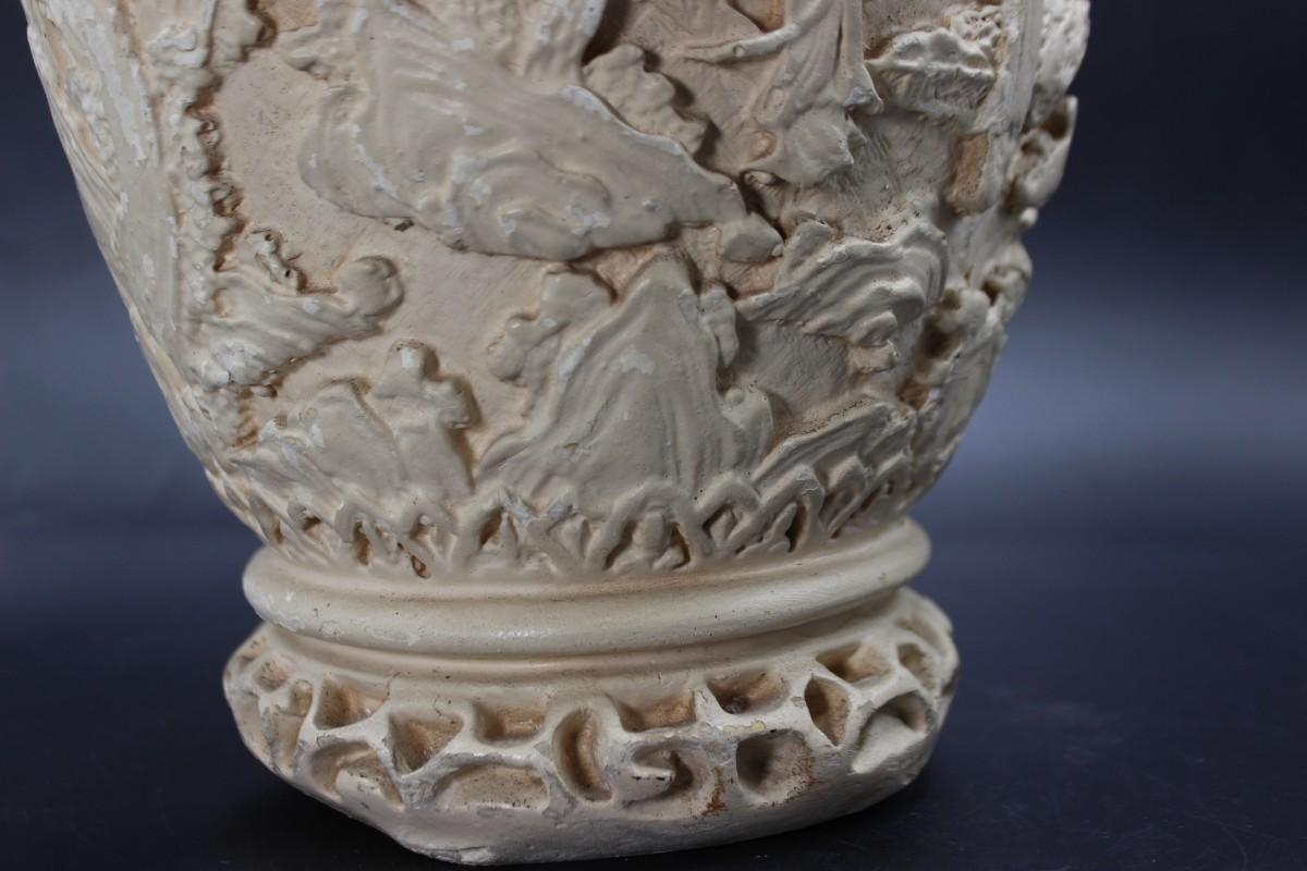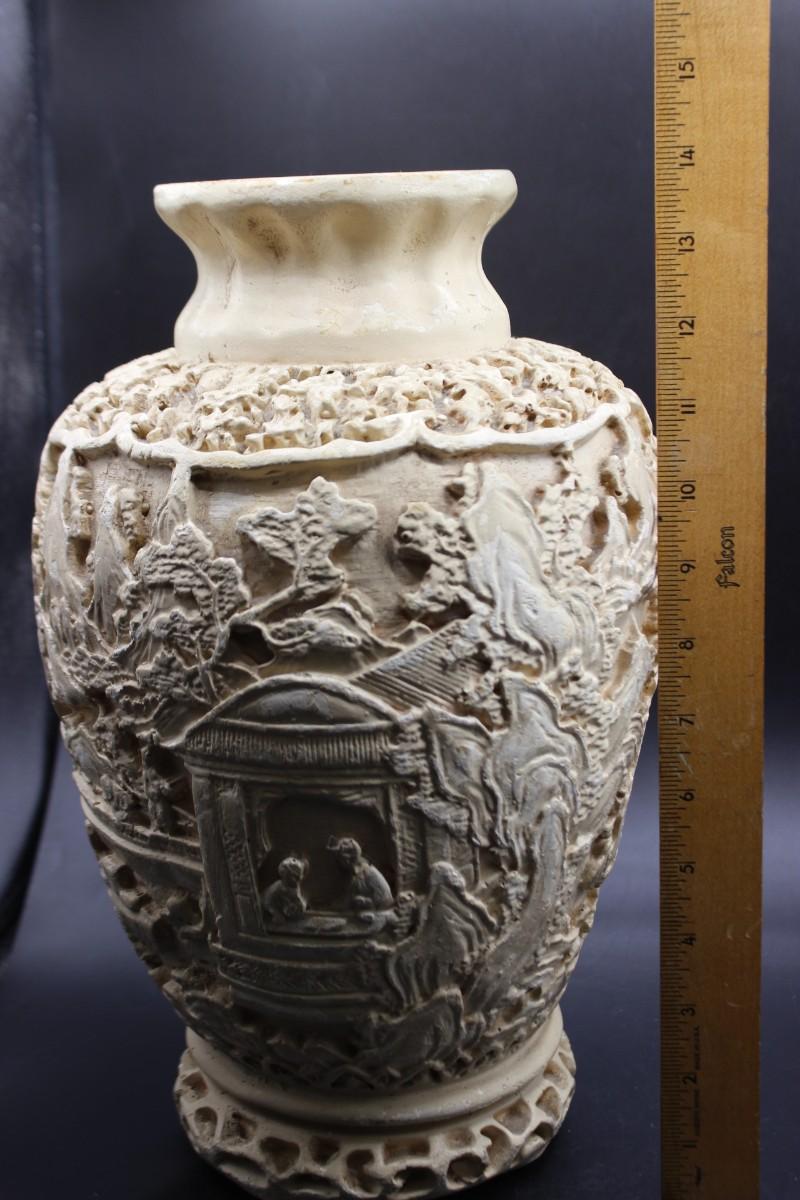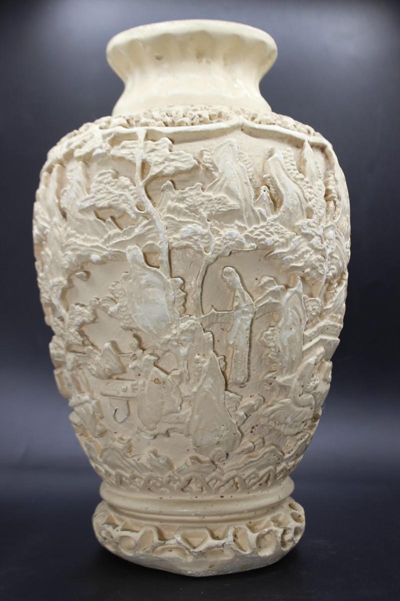Large Retro Etched Carved Plaster Oriental Design Detailed Vase Decor
