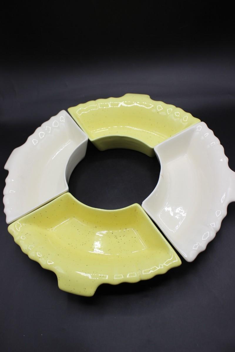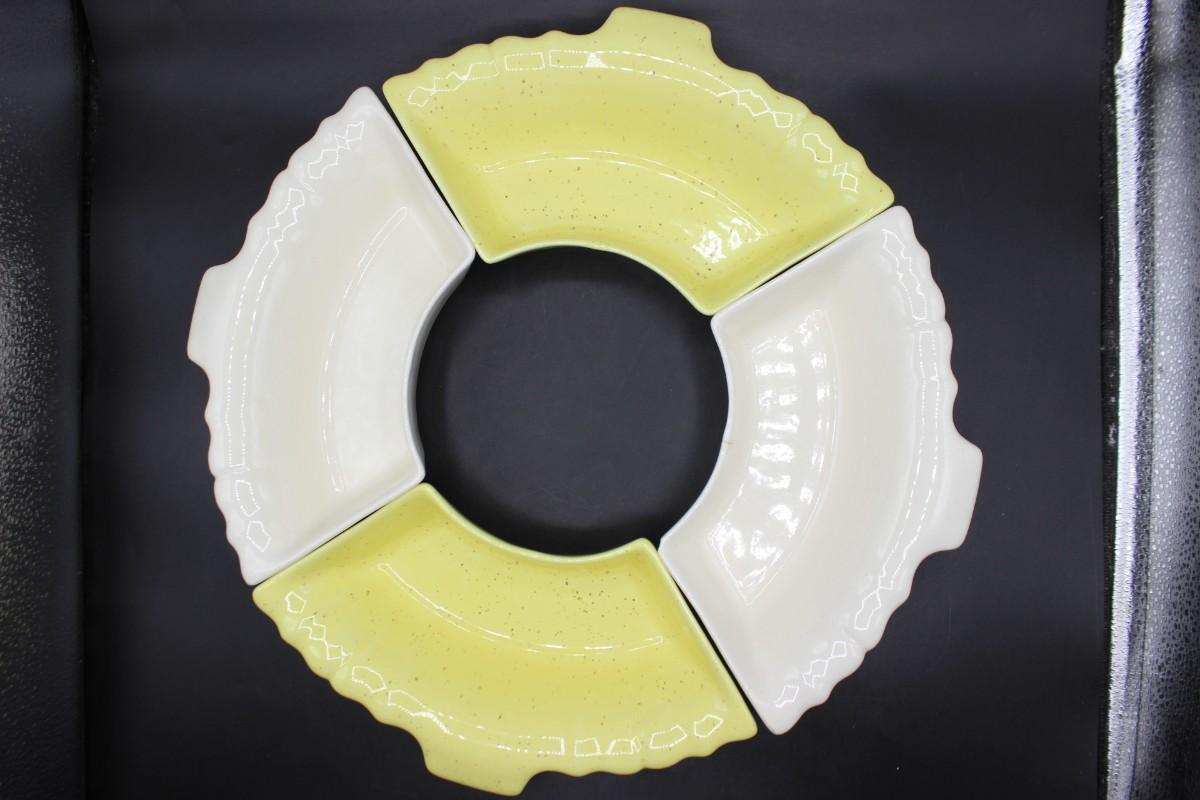 Vintage Hoenig of California Pottery Ceramic Round Yellow & White Nut Dishes