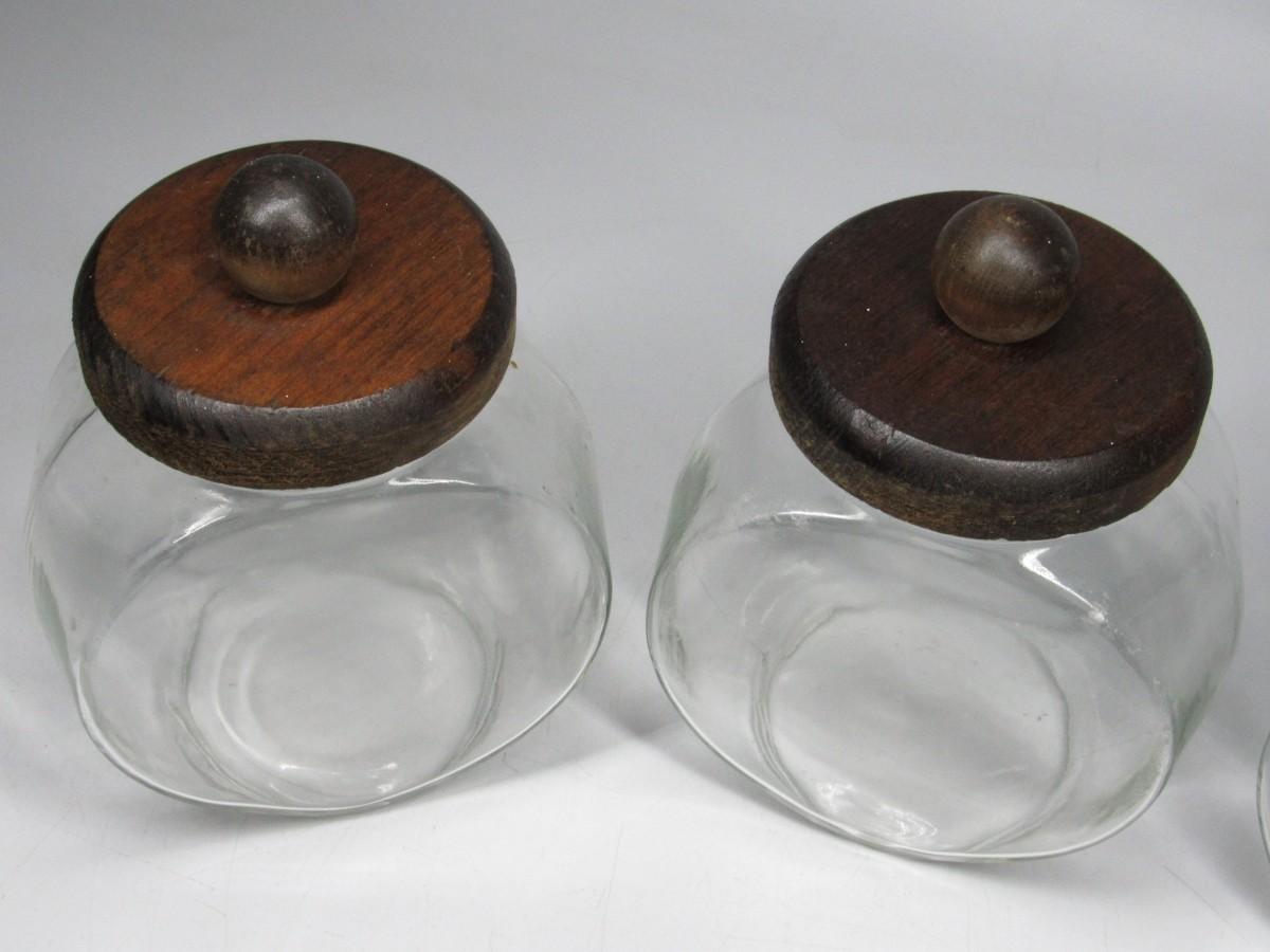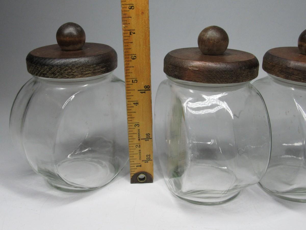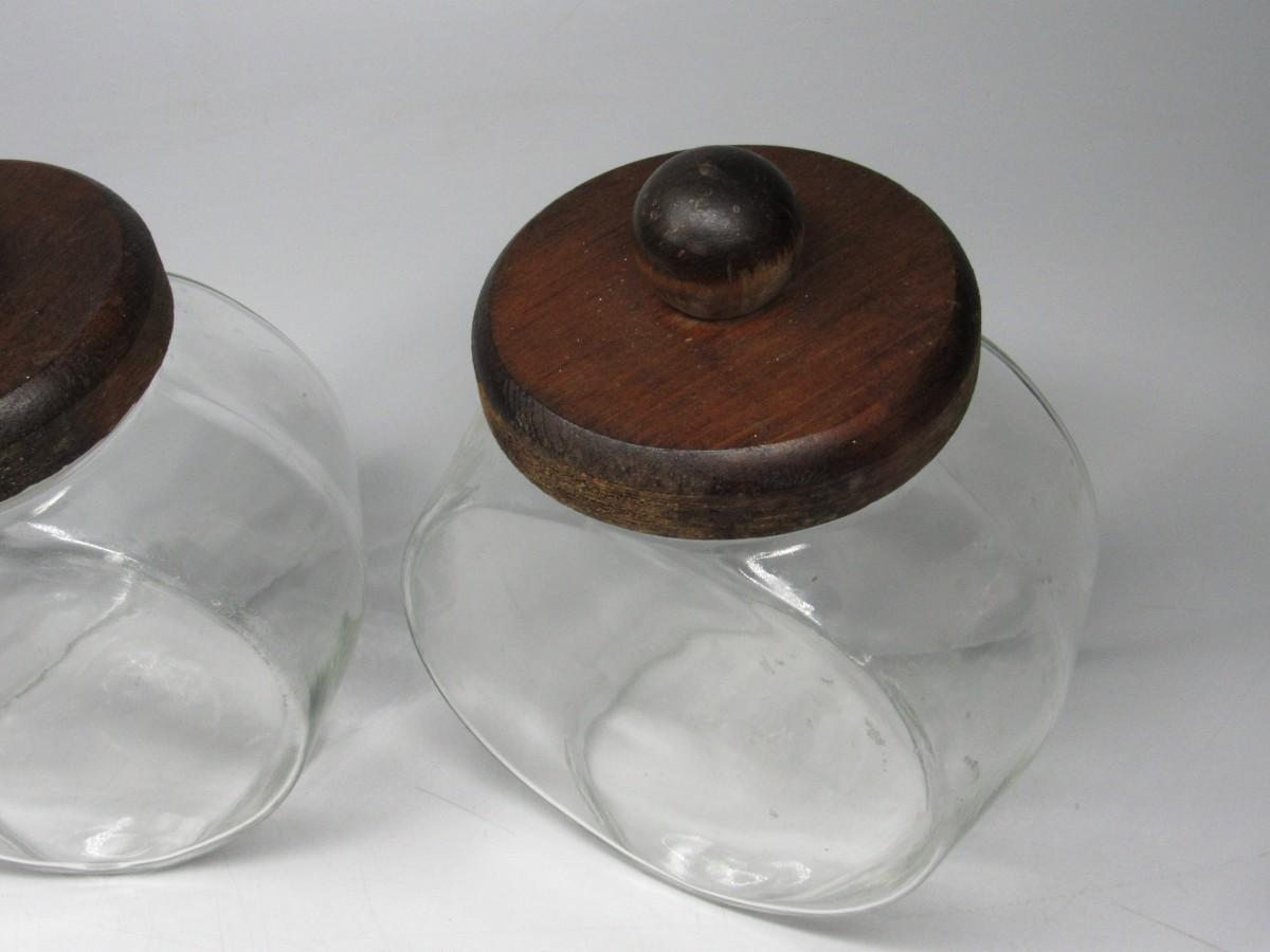 Vintage General Store Wood Lid Clear Glass Candy Jar Containers
