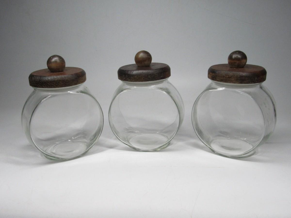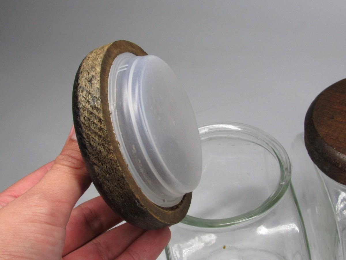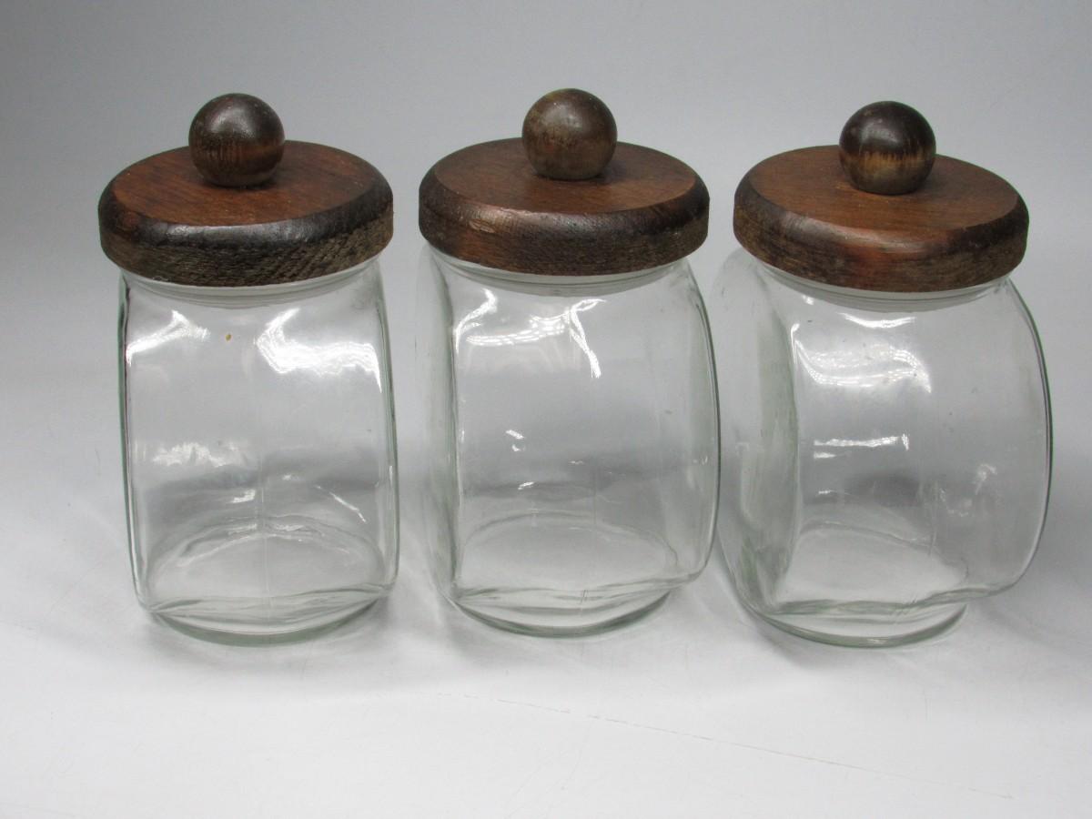 Vintage General Store Wood Lid Clear Glass Candy Jar Containers