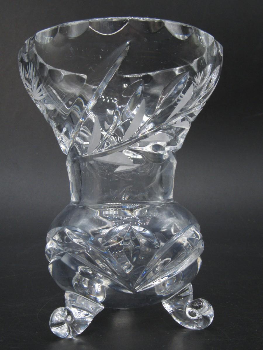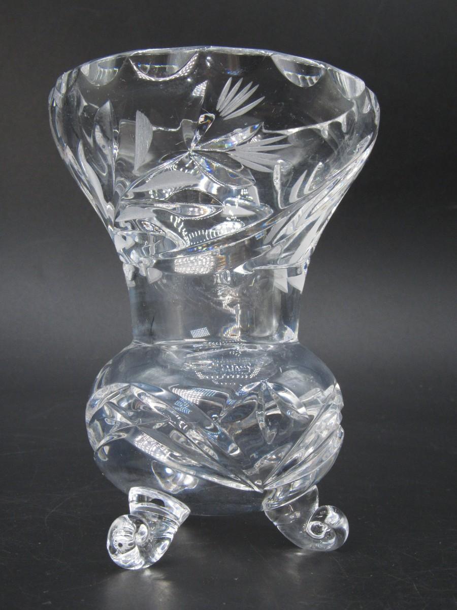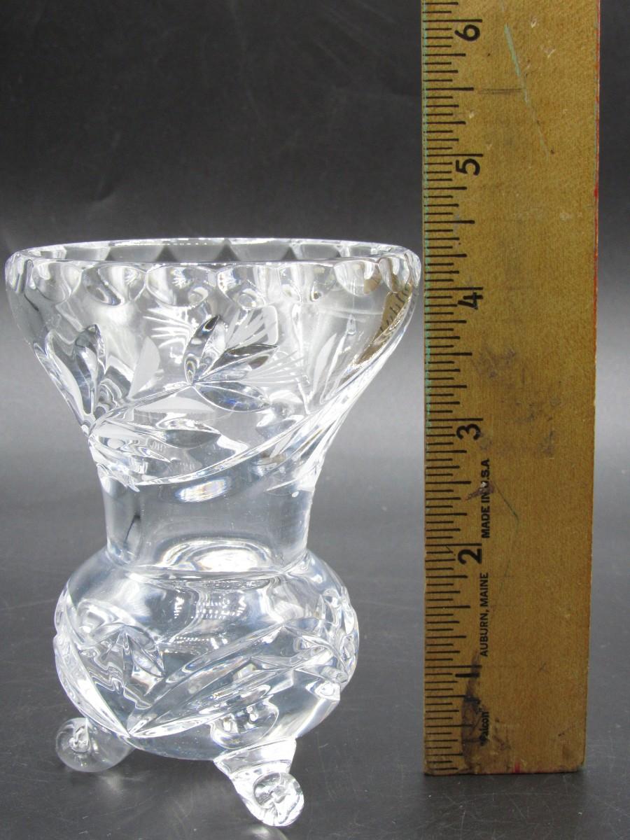Vintage Small Cut Crystal Glass MCM Three Footed Bud Flower Vase