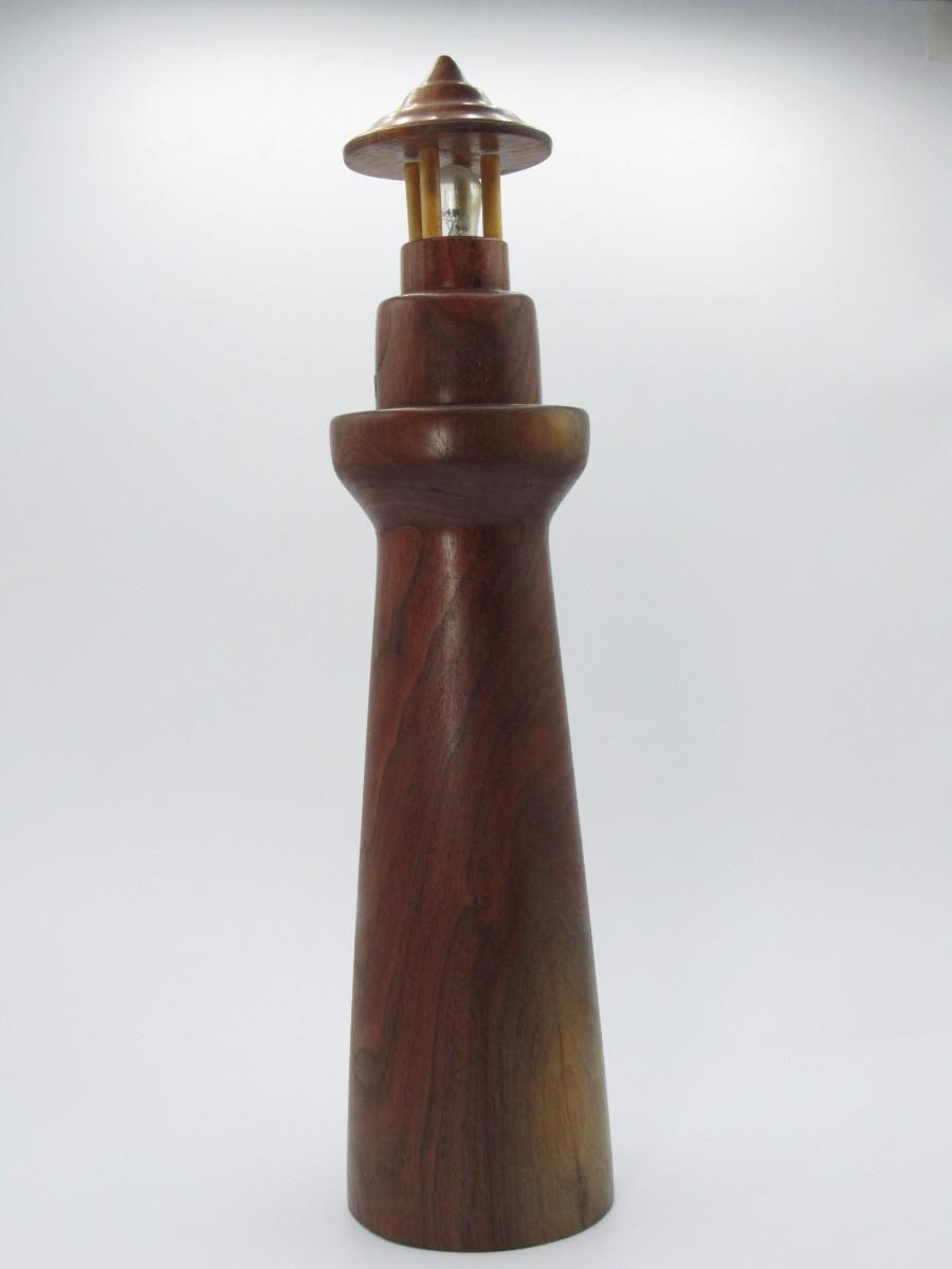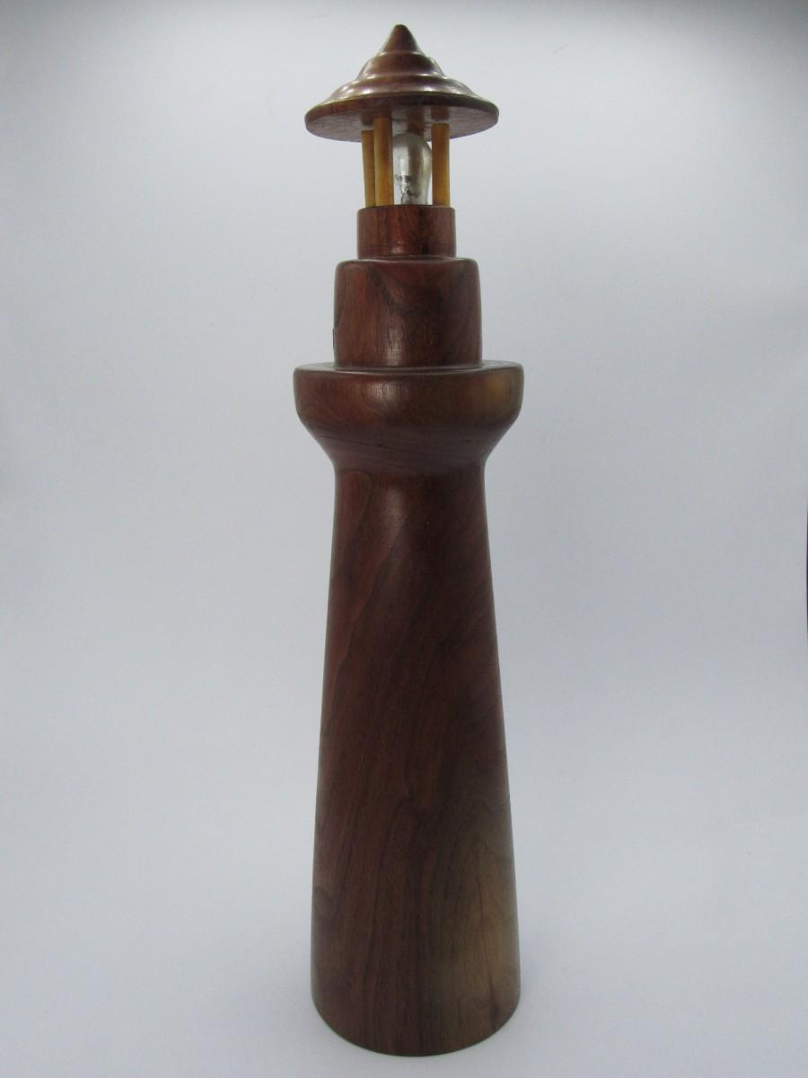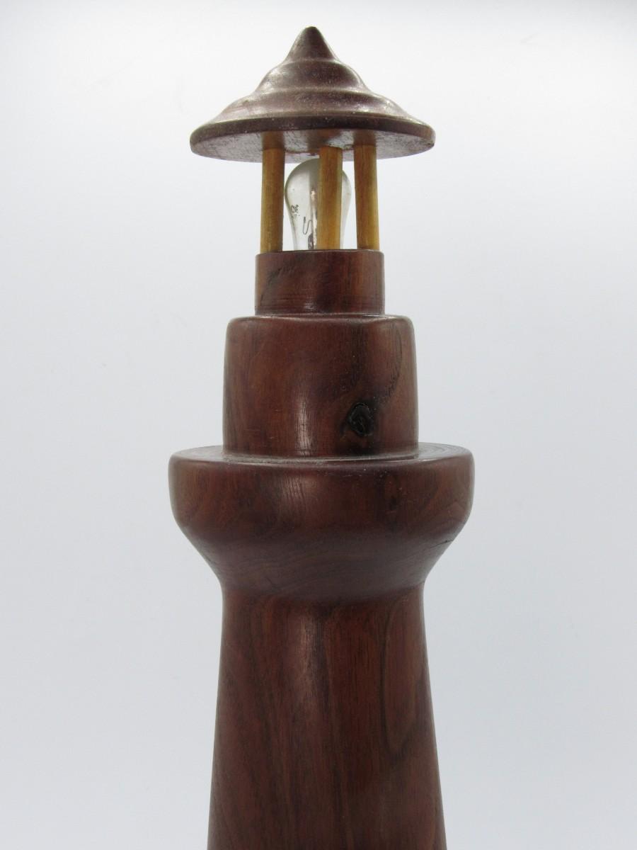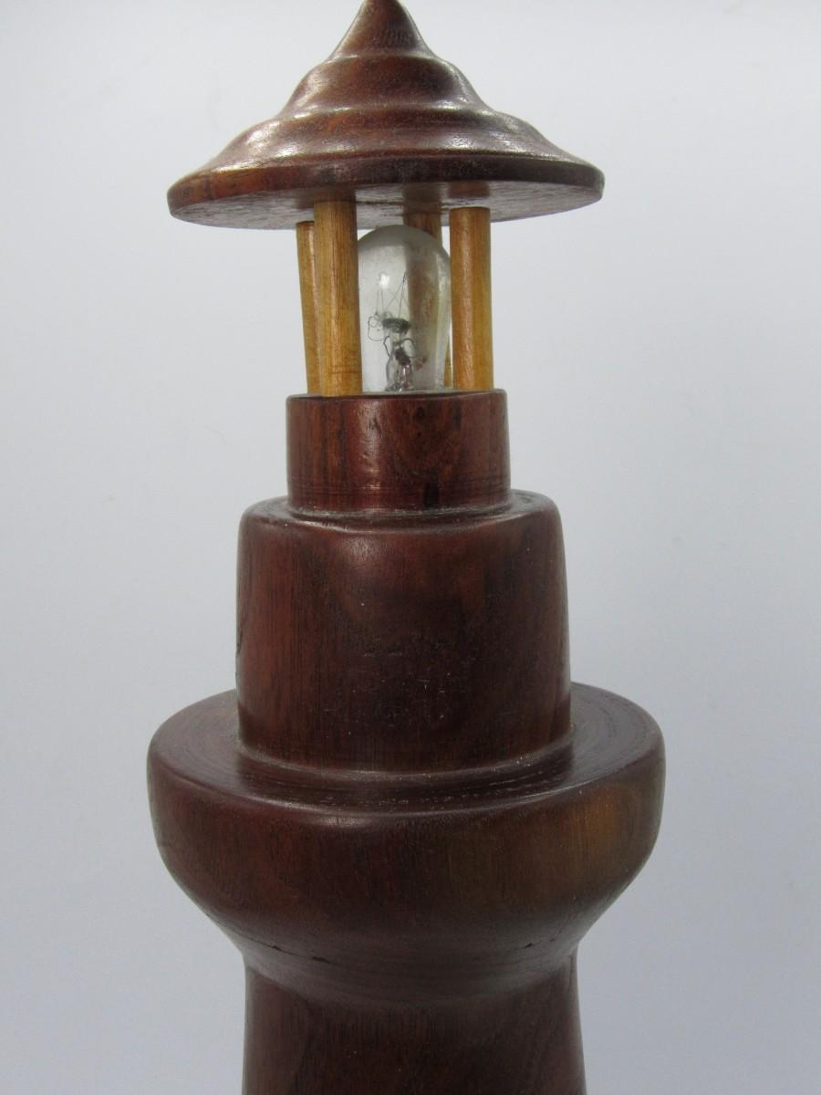 Retro Wooden Smooth Carved Nautical Lighthouse Music Box Figutrine