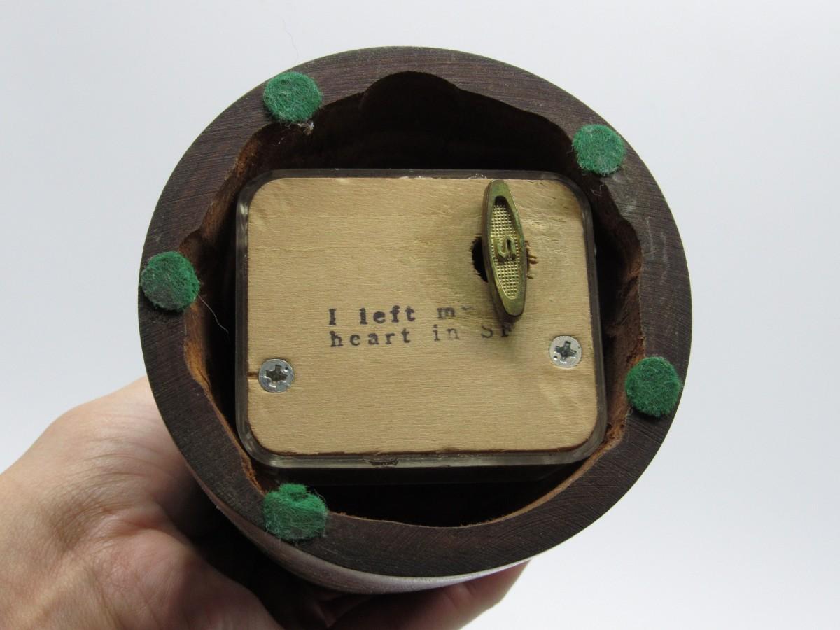The light bulb is not a functioning light and is for display purposes, there is no significant damage and in overall good collectible condition. The music box works perfectly, plays I Left My Heart in San Francisco.