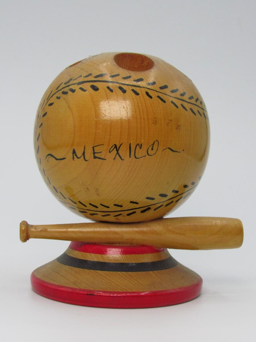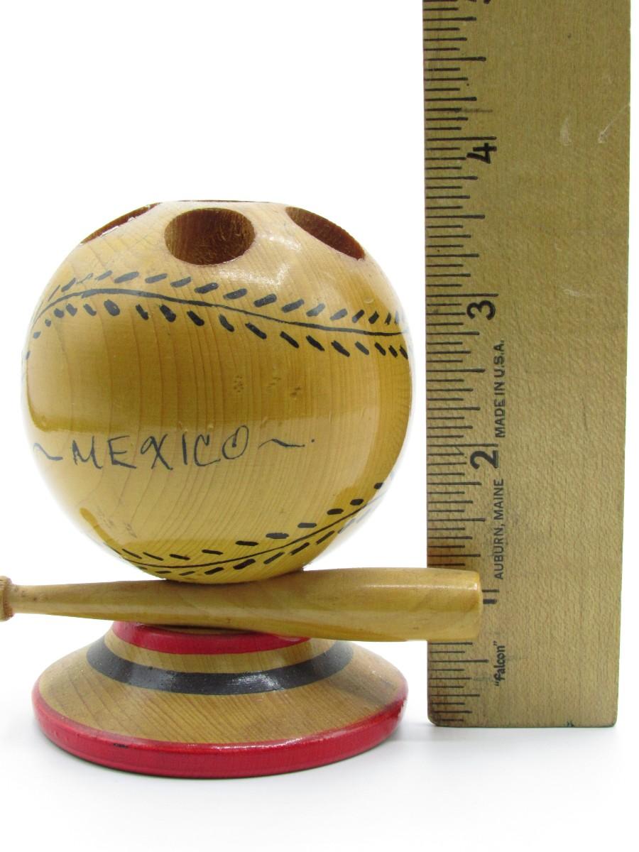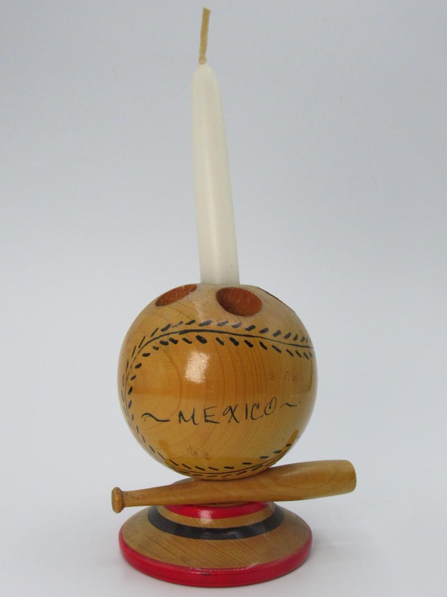 Retro Mexico Wooden Baseball & Bat Souvenir Candle Holder Figurine