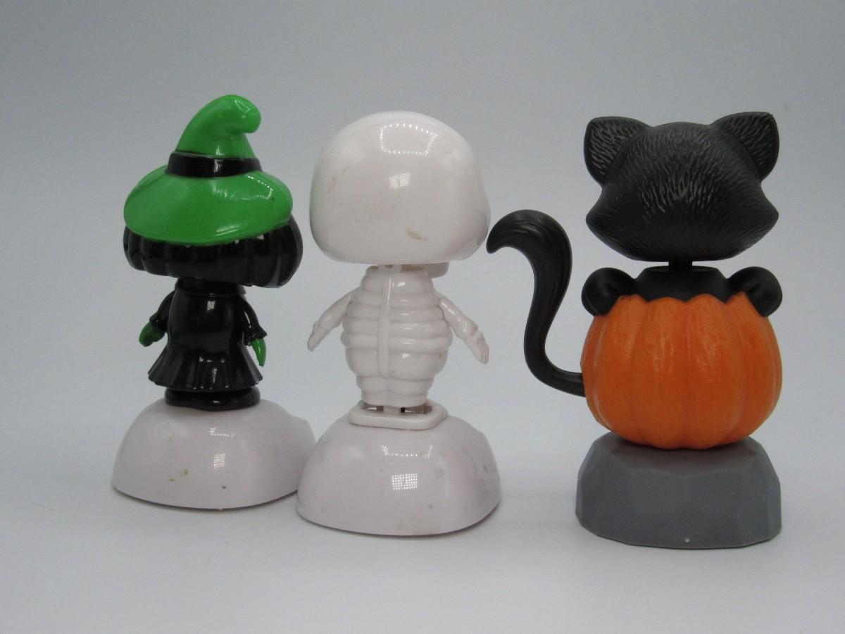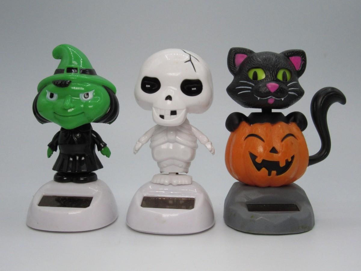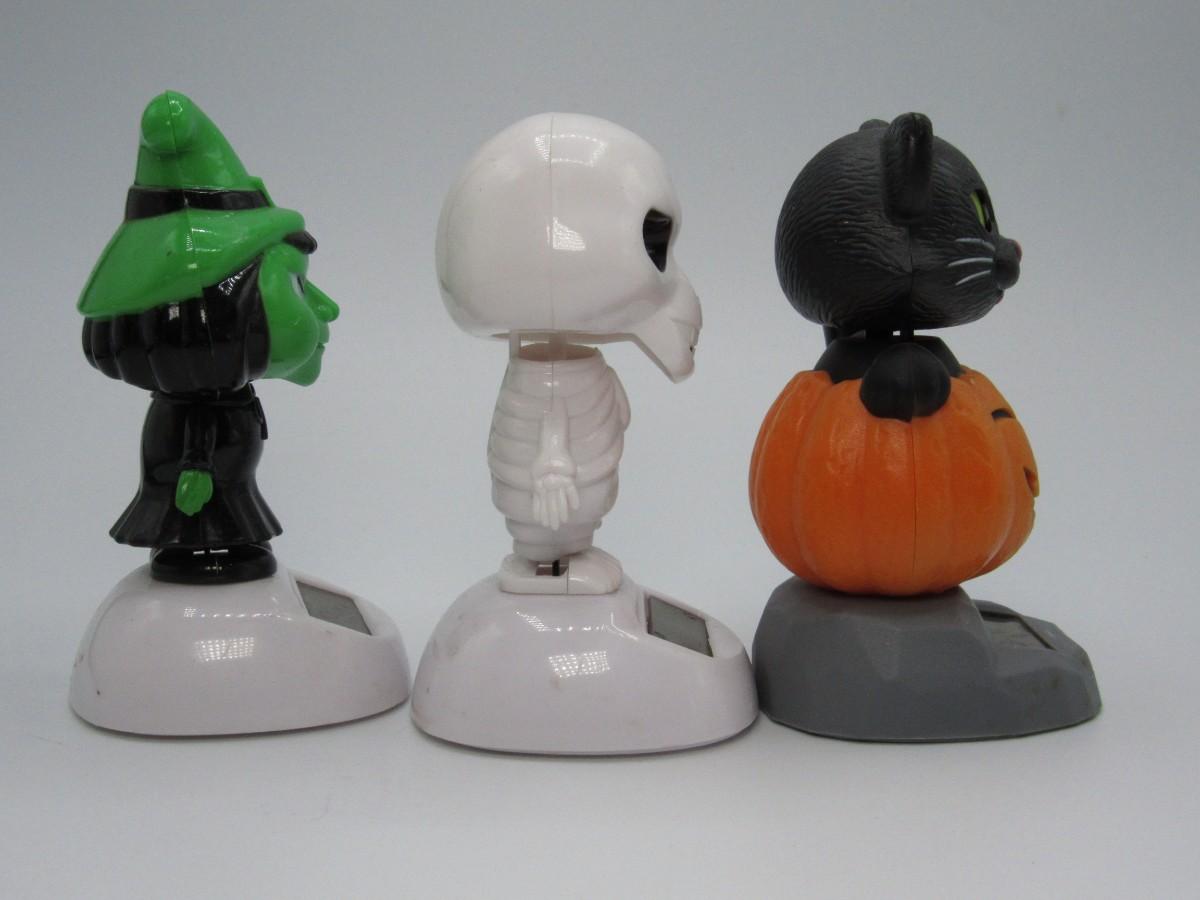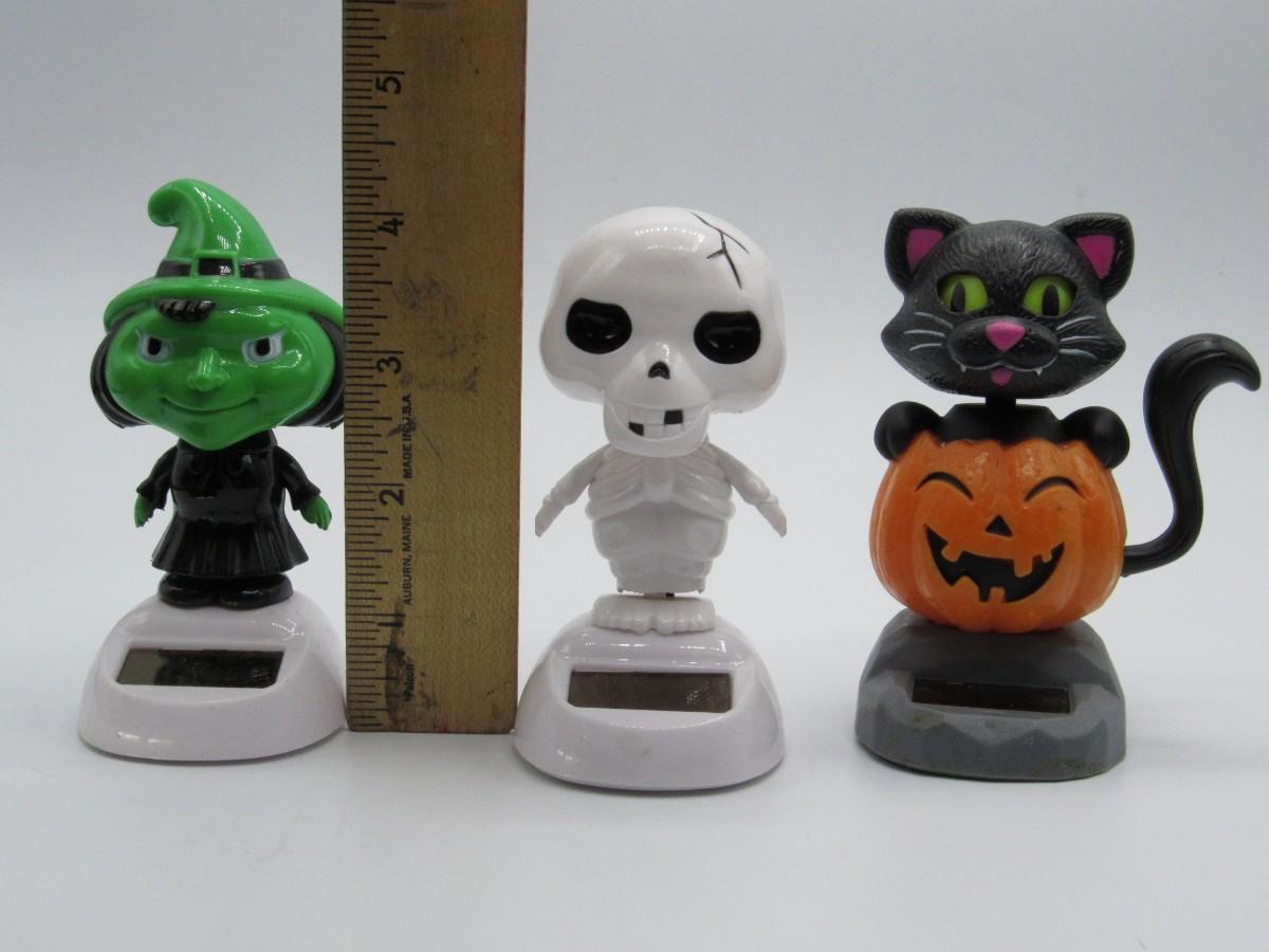 Lot of Spooky Halloween Solar Powered Green Witch, Skull, & Black Cat Dancing Figurines