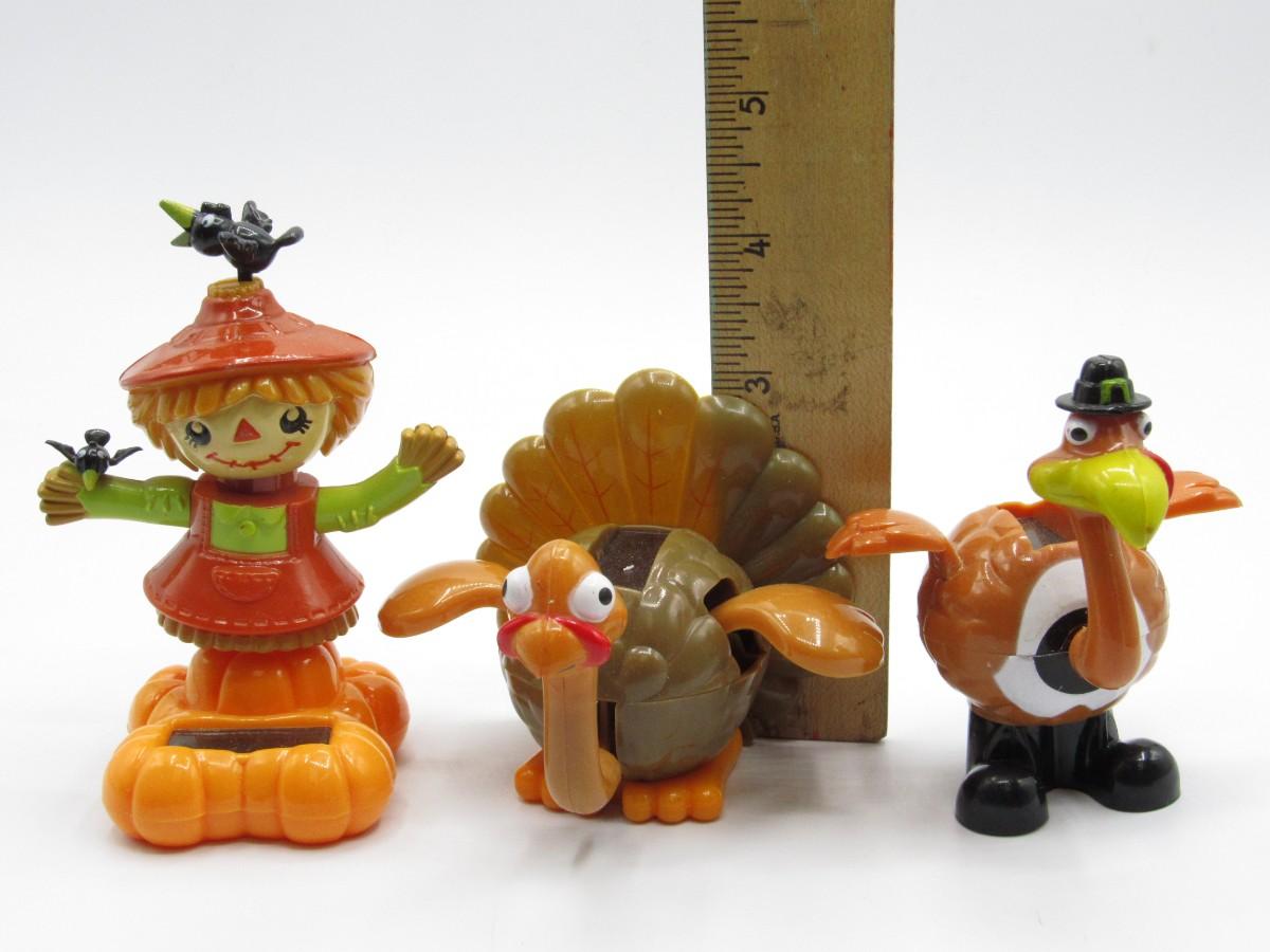 Lot of Fall Thanksgiving Solar Powered Scarecrow & Turkeys Dancing Figurines