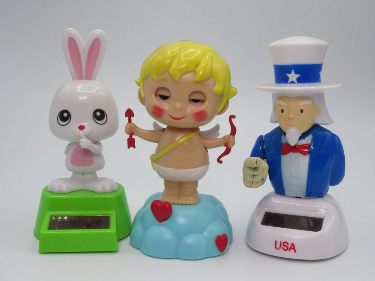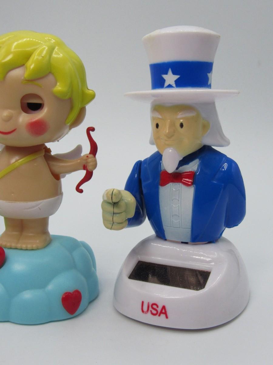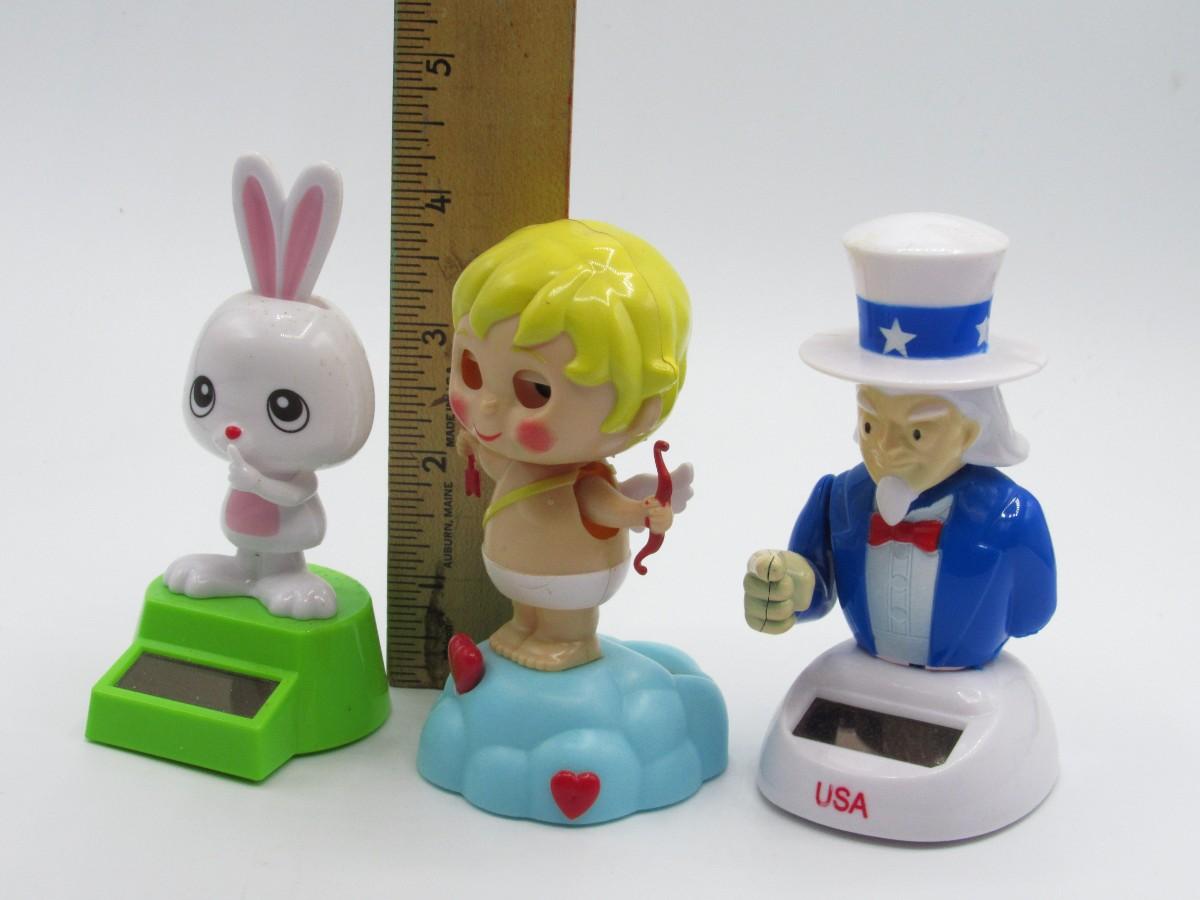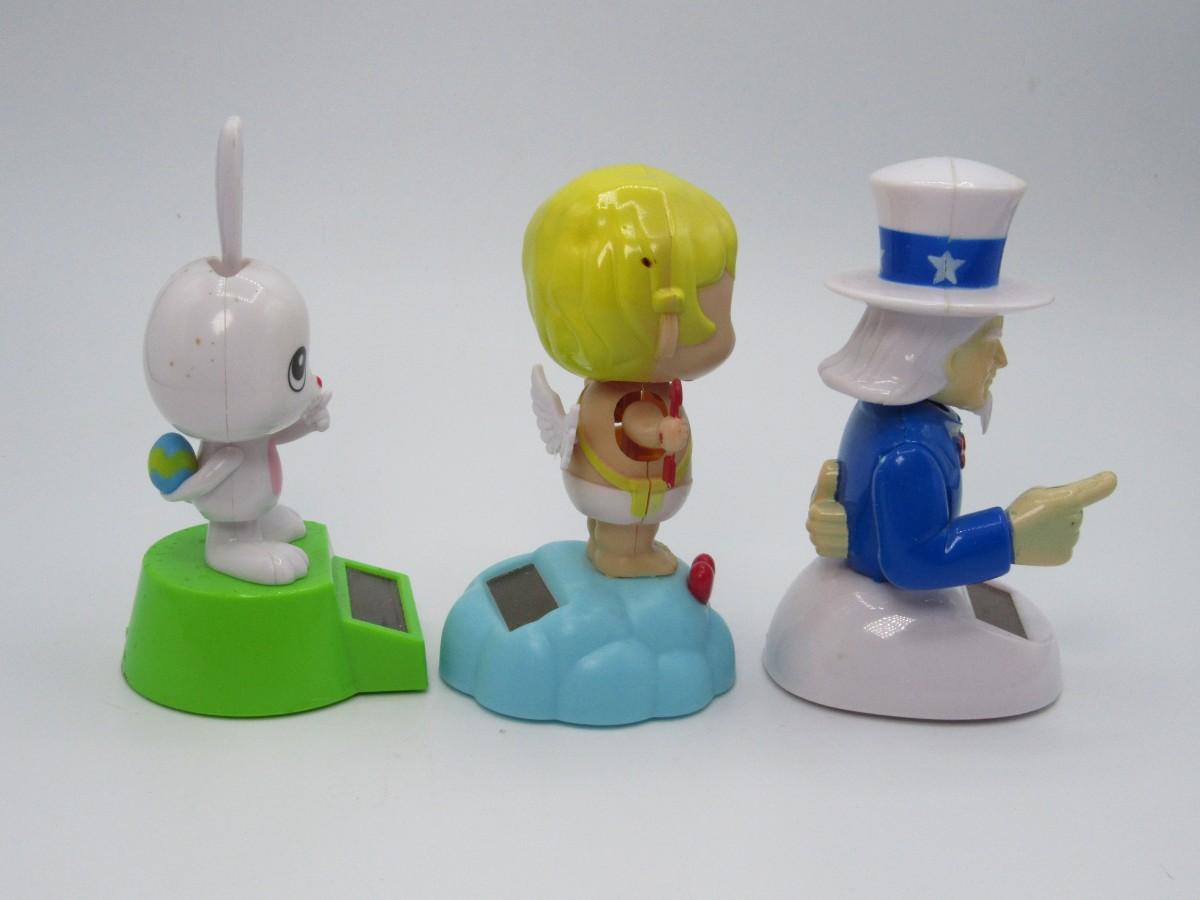 Lot of Solar Powered Dancing Figurines Easter Bunny, Cupid, & Uncle Sam