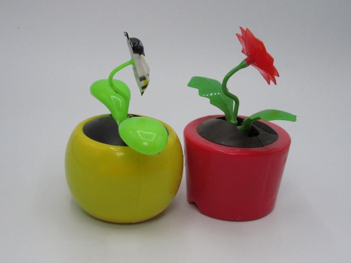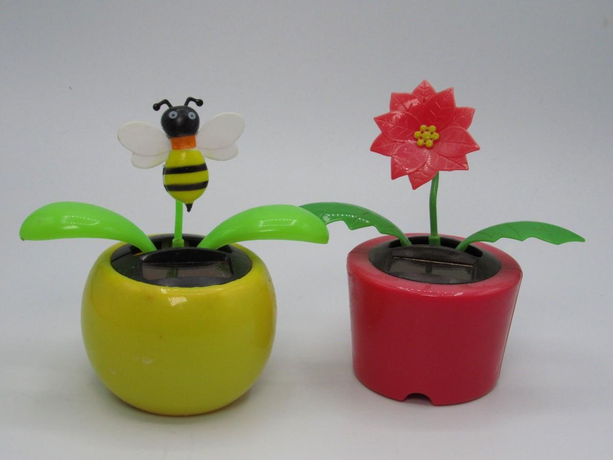 Pair of Dancing Solar Powered Bumble Bee & Red Flower Figurines