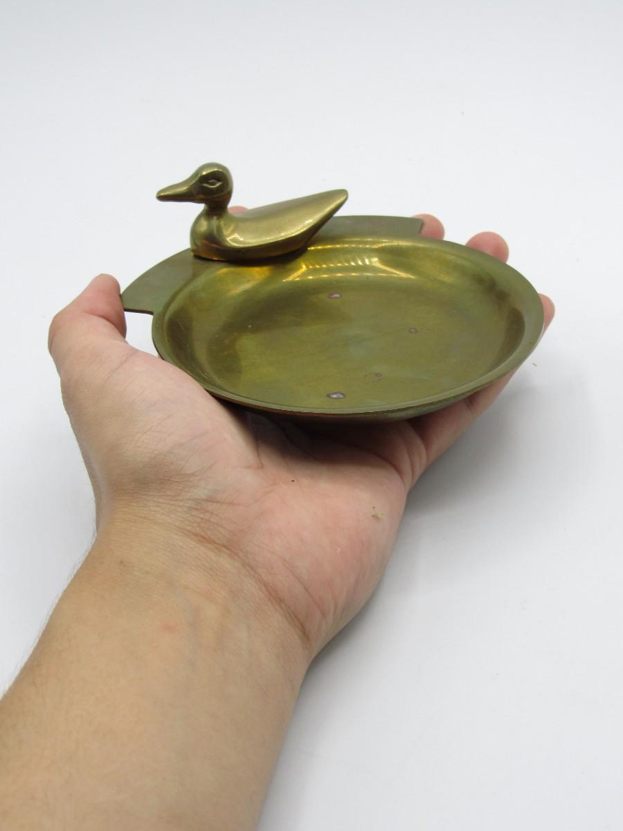 Retro Brass Made in Republic of China Sitting Duck Keys Trinket Dish