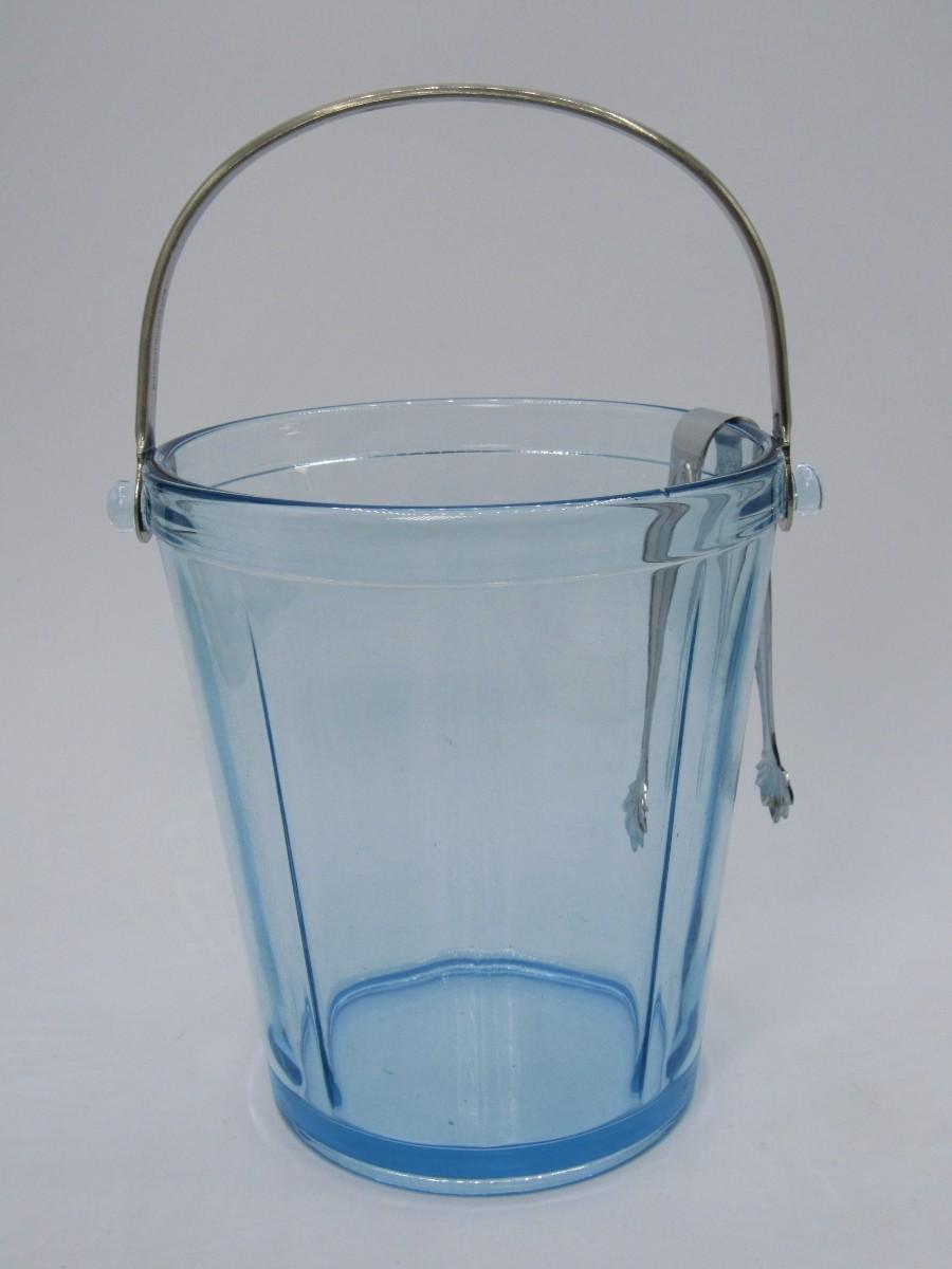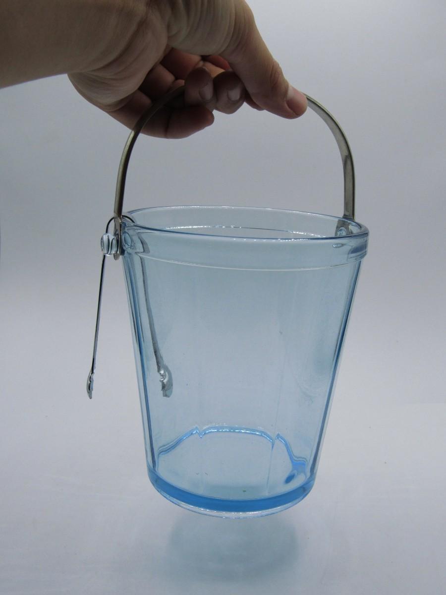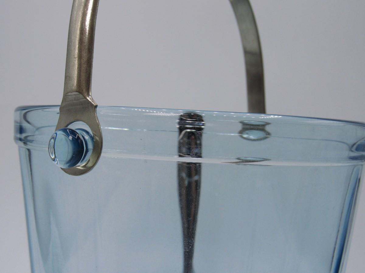 Vintage Fostoria Ice Bucket with Detachable Handle Pale Icy Blue Glass