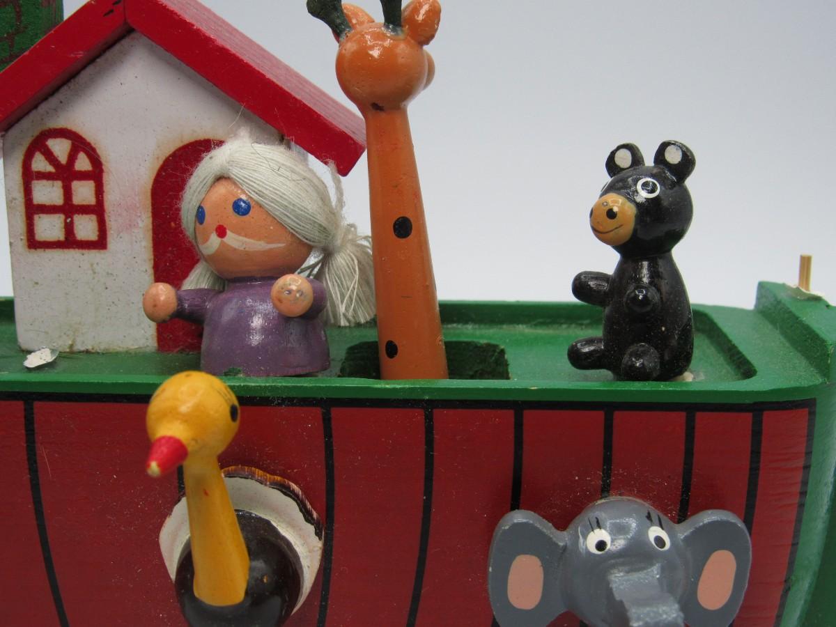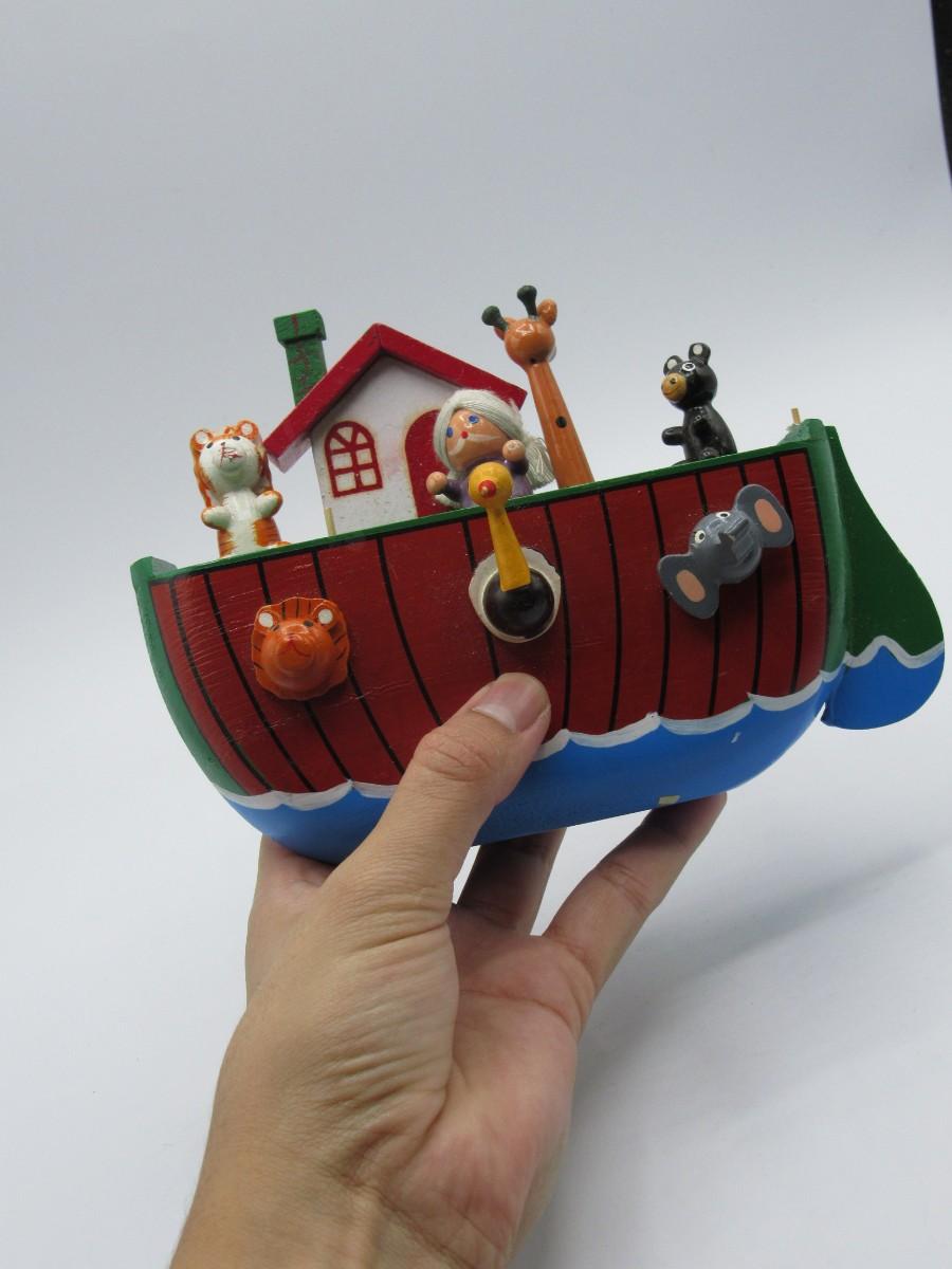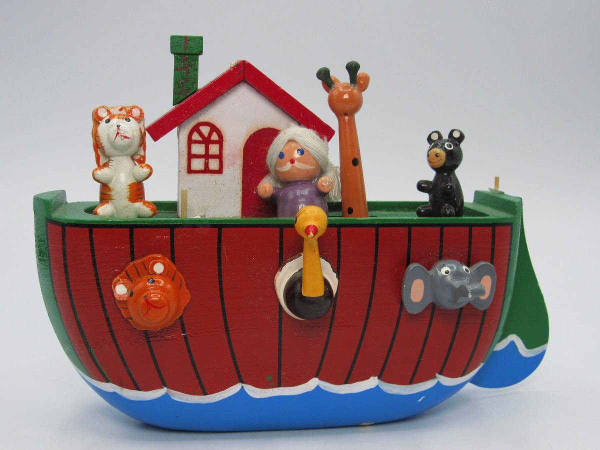 Wooden Noah's Ark Animals Musical Box