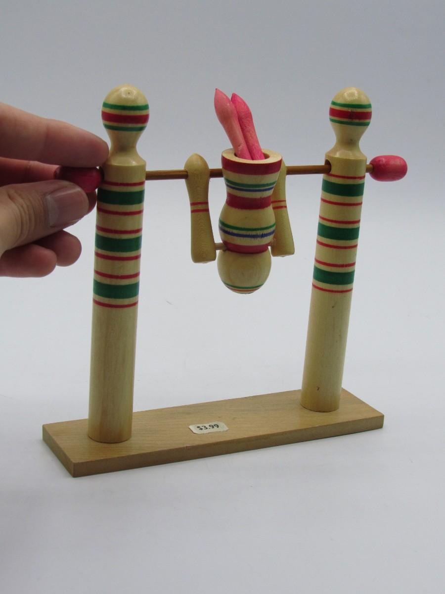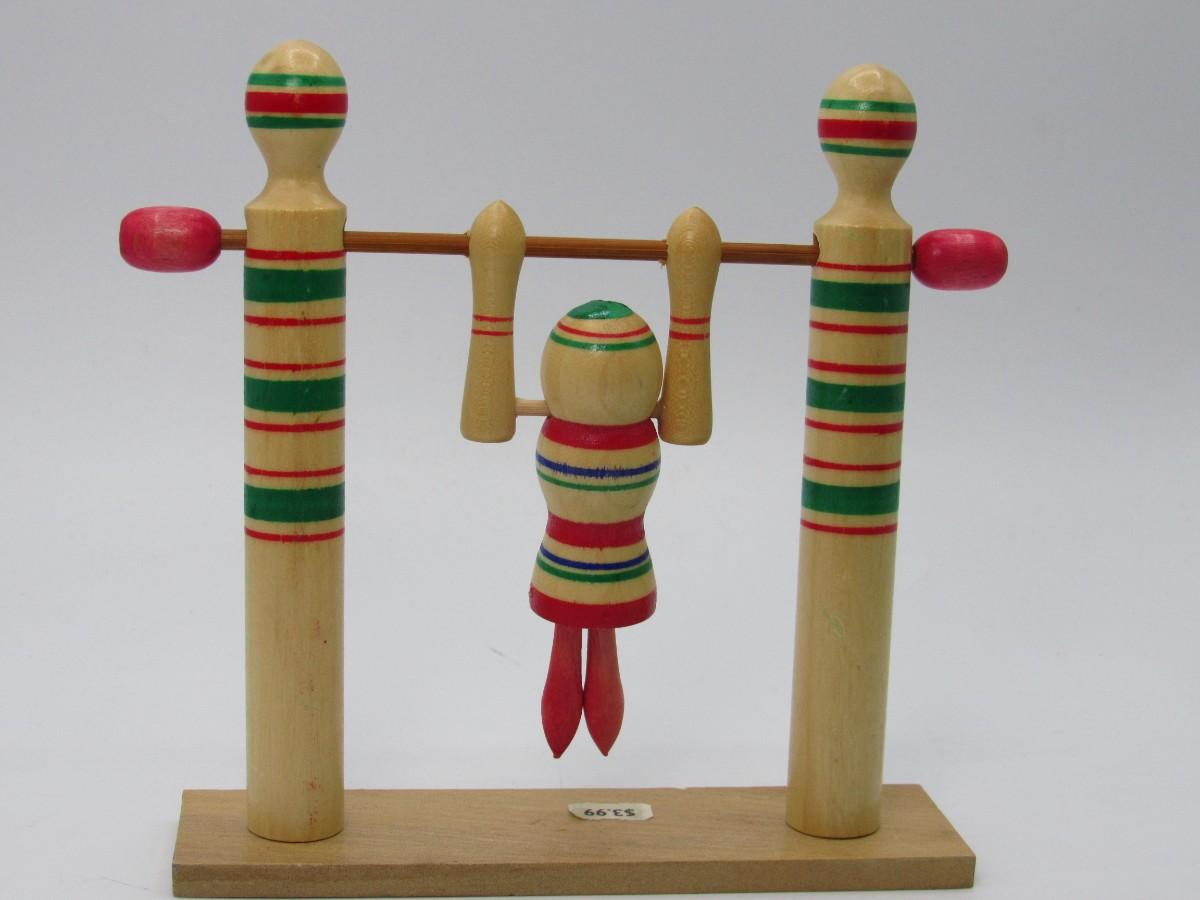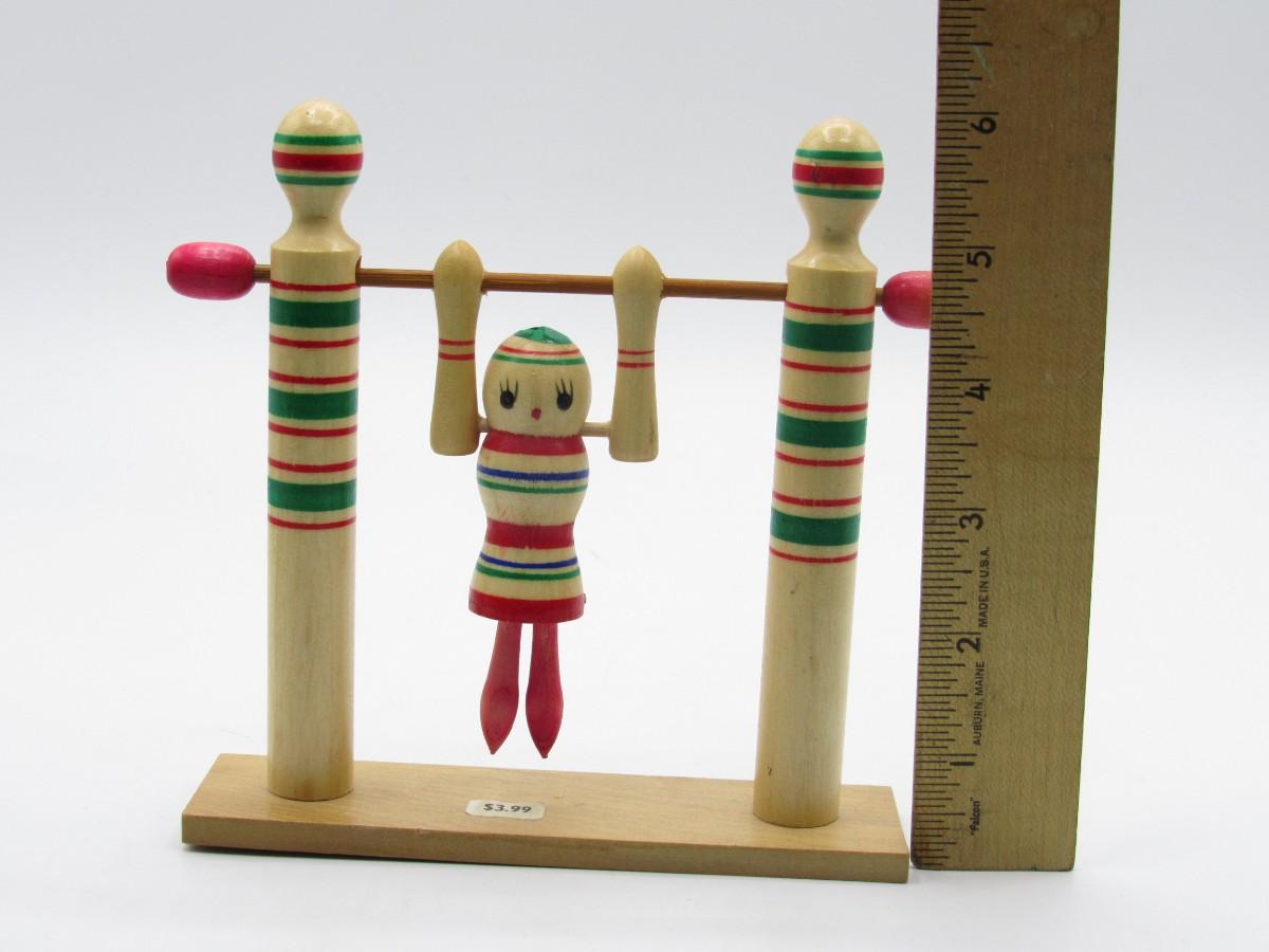 Japanese Wooden Yajirou Acrobat Toy Folk Art Twirling Toy