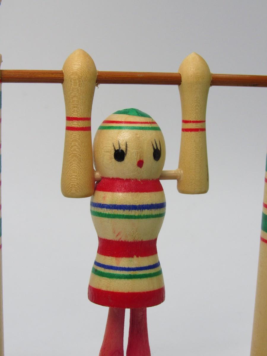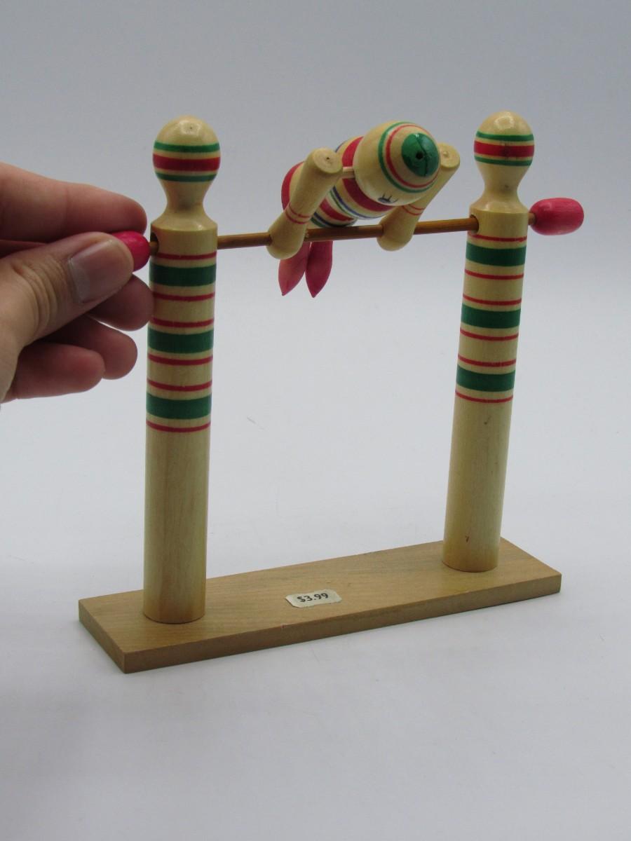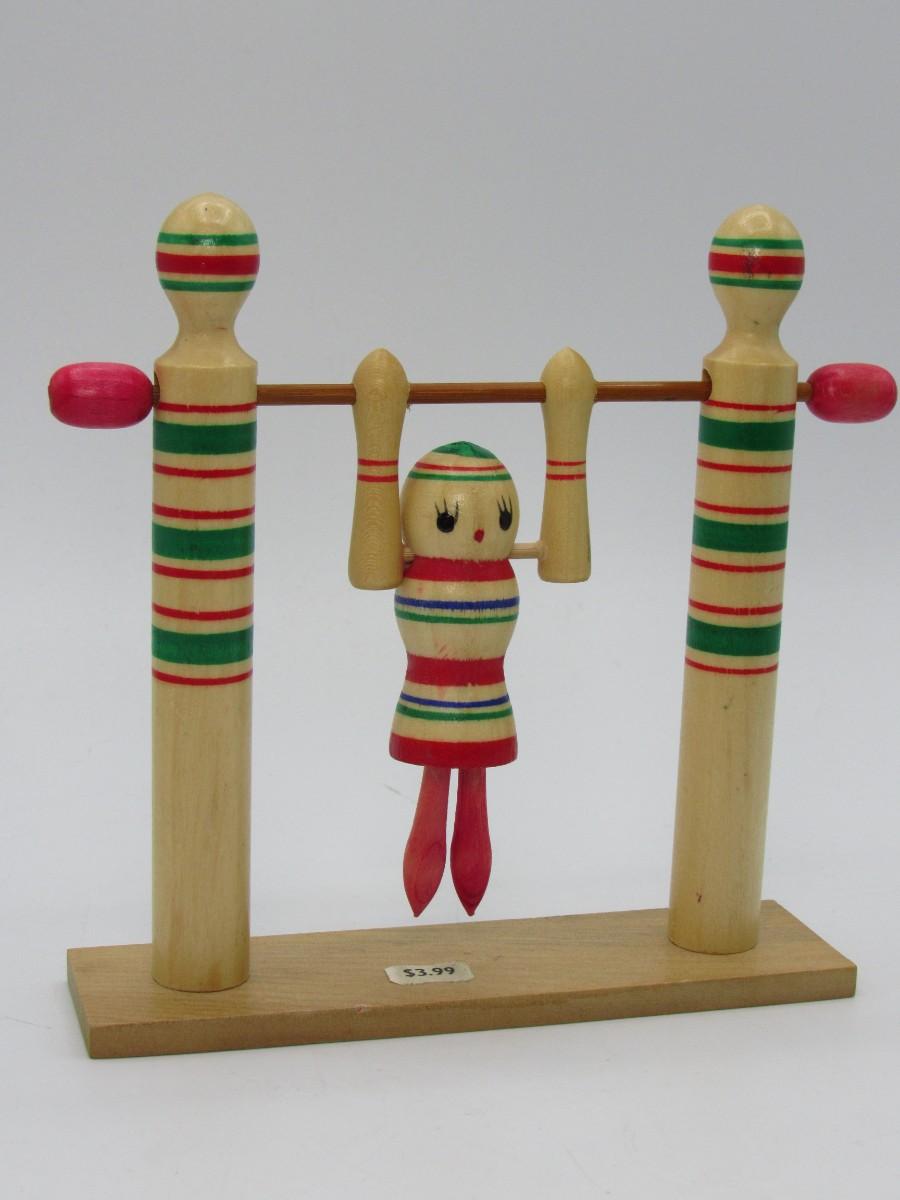 Japanese Wooden Yajirou Acrobat Toy Folk Art Twirling Toy
