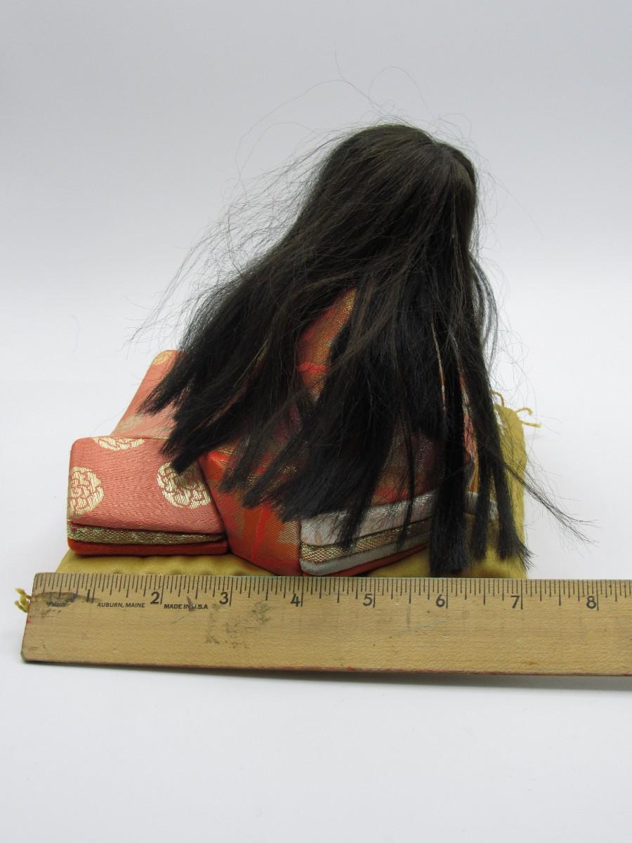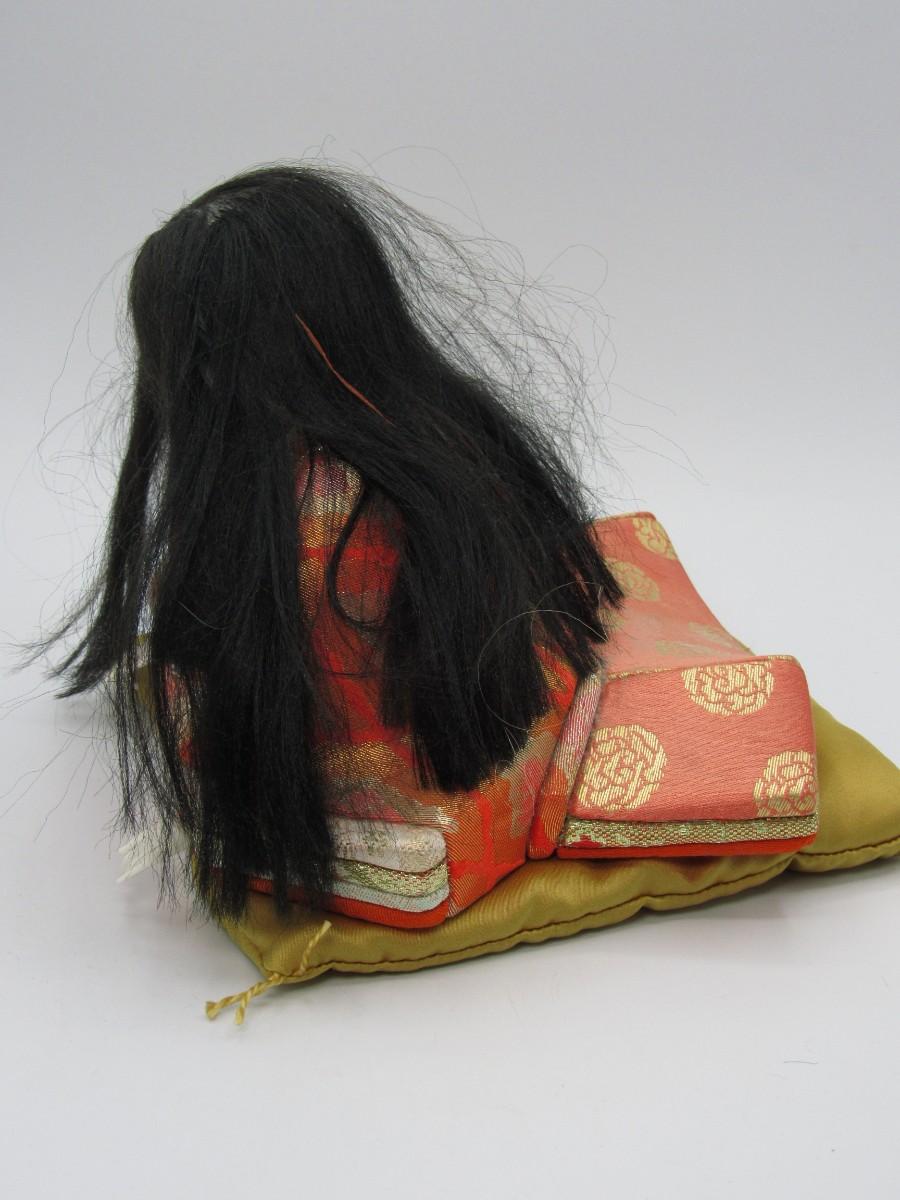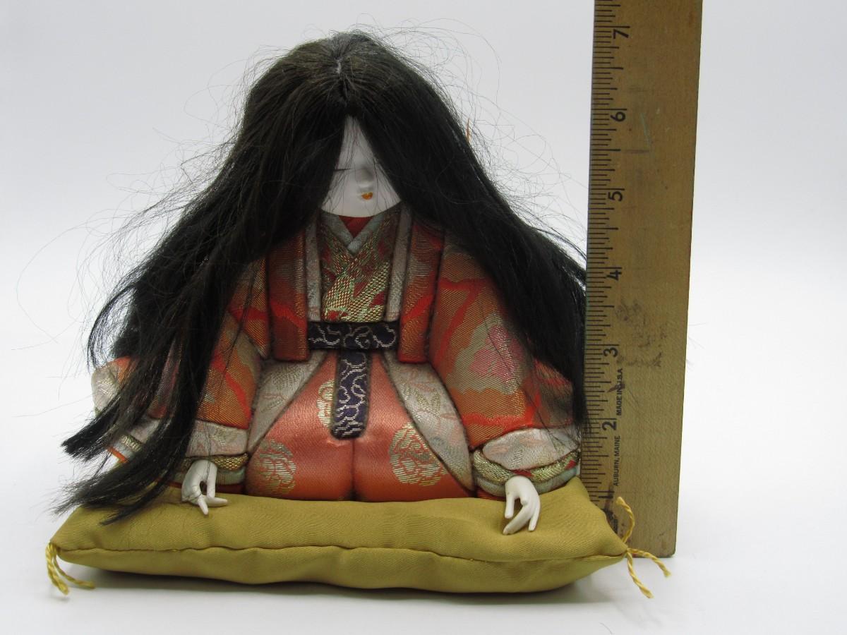 Vintage Sitting Kneeling Japanese Kimekomi Doll Figurine on Pillow