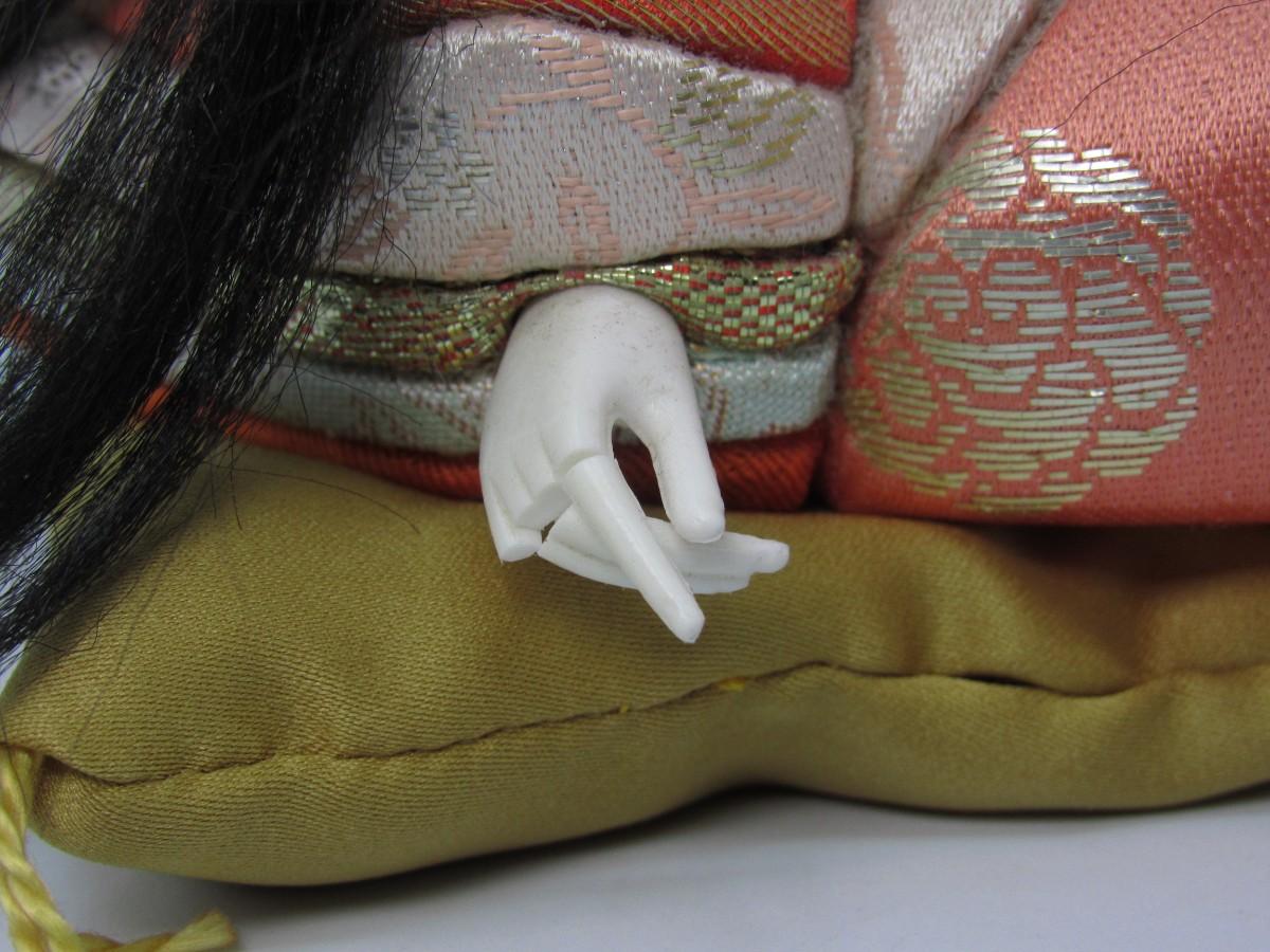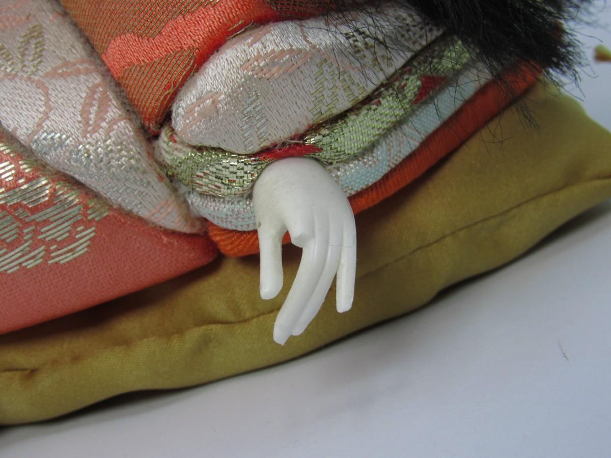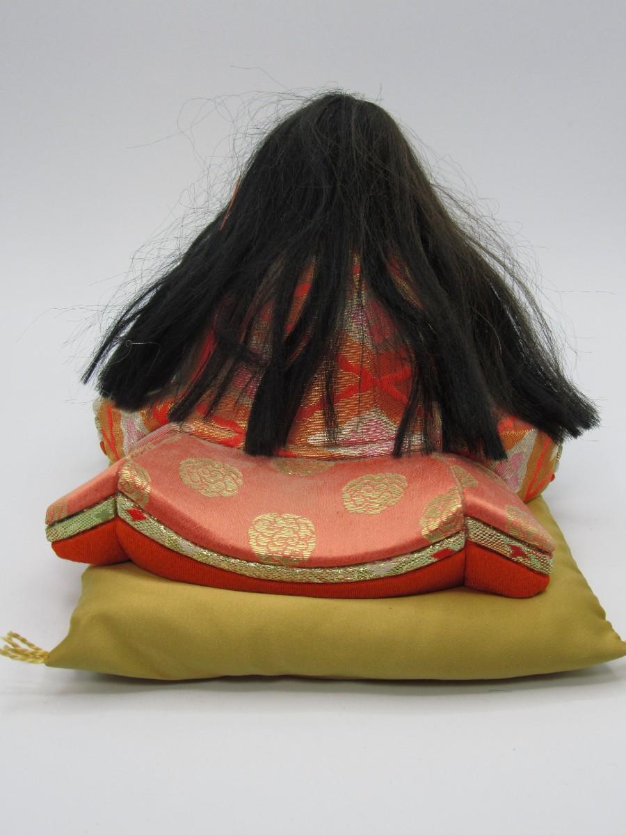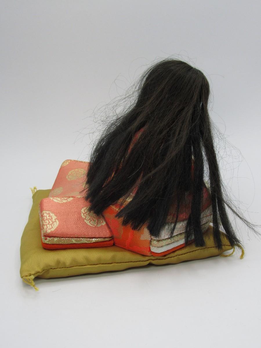 Vintage Sitting Kneeling Japanese Kimekomi Doll Figurine on Pillow