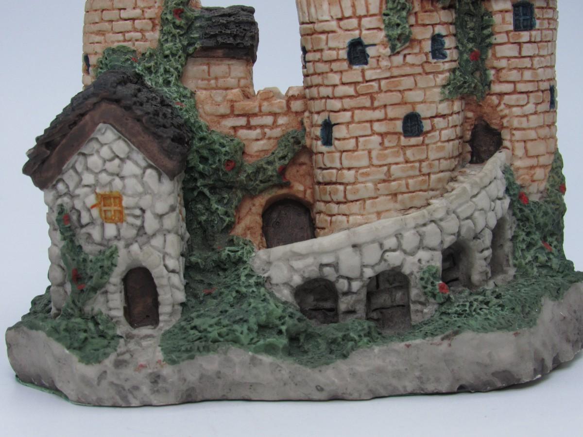 There is no significant damage to the castle and is in overall good collectible or displayable condition. Check pictures for more details and for sizing.