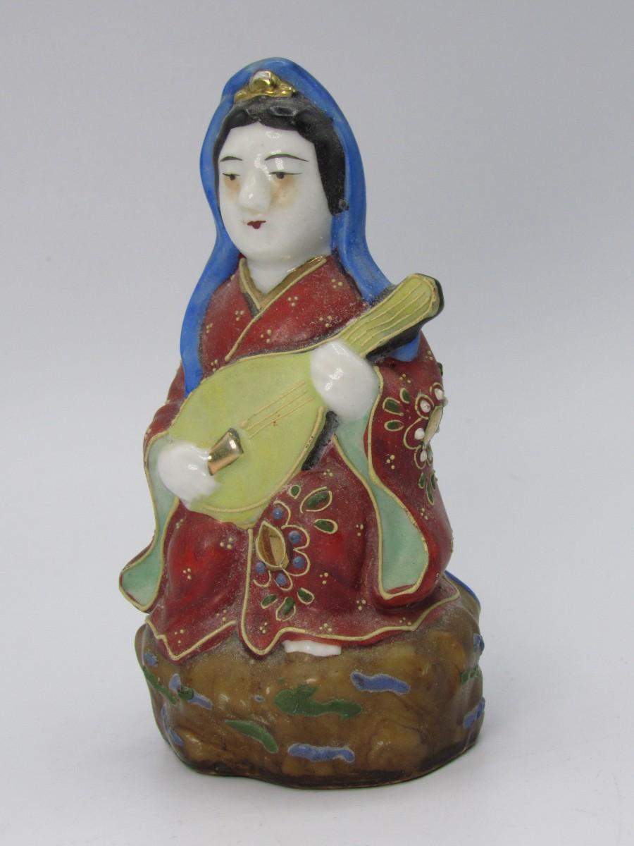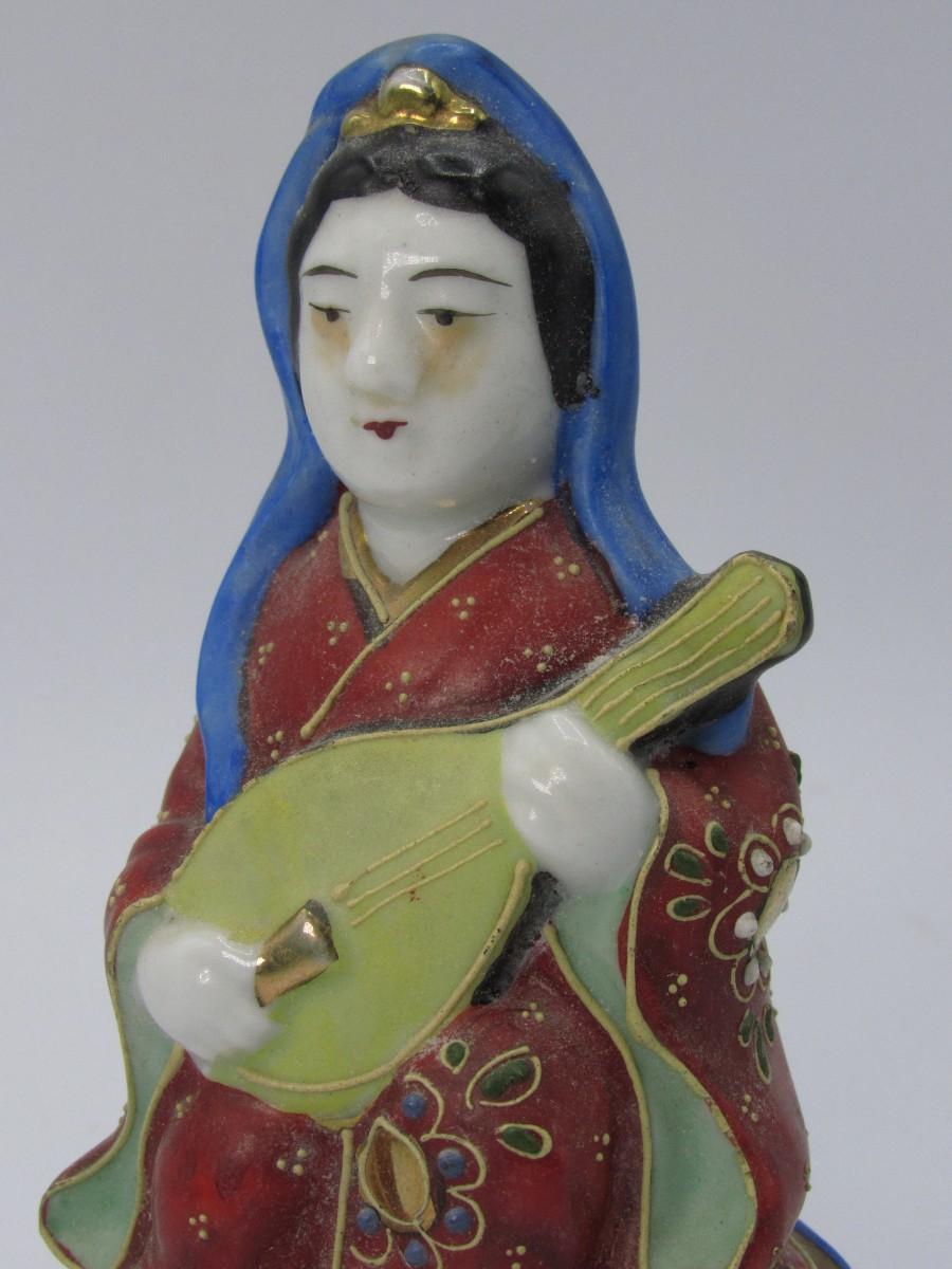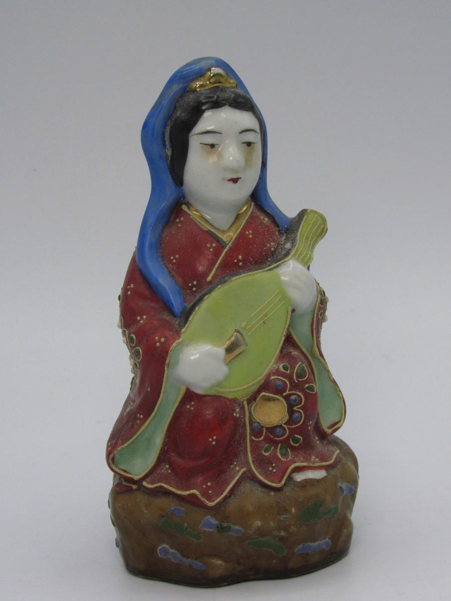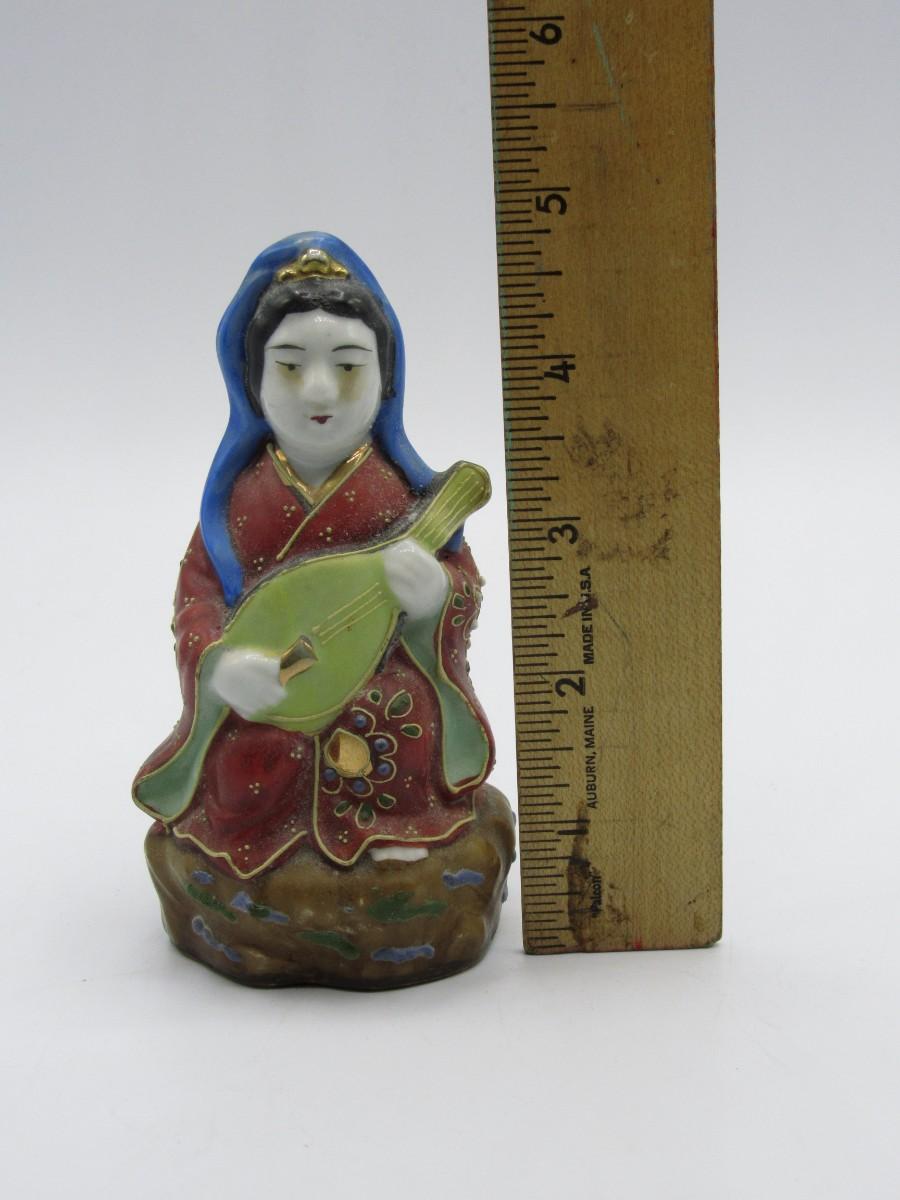 Vintage Japanese Porcelain Kutani Satsuma Moriage Lady Figurine with Instrument