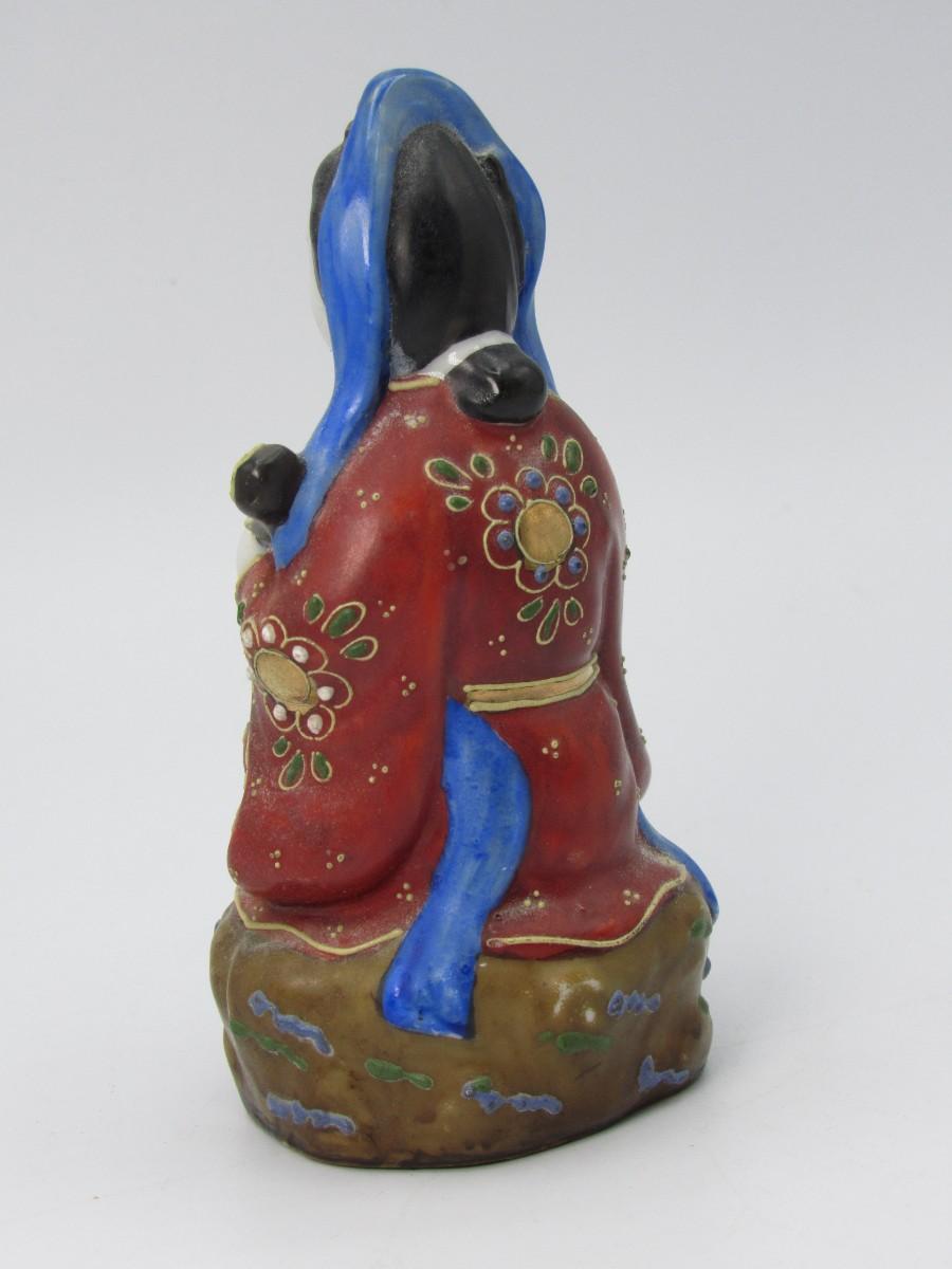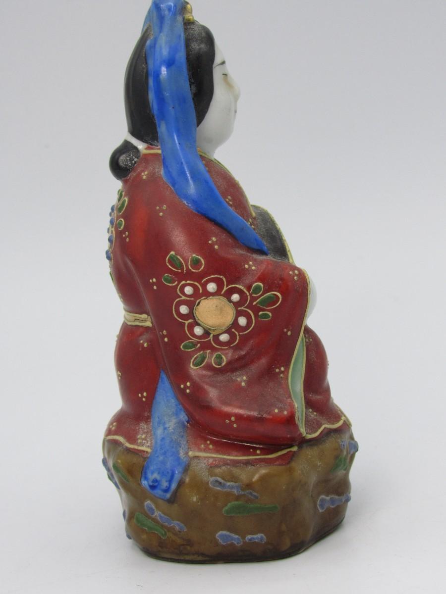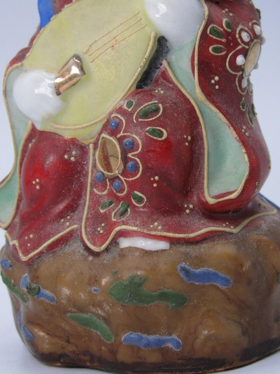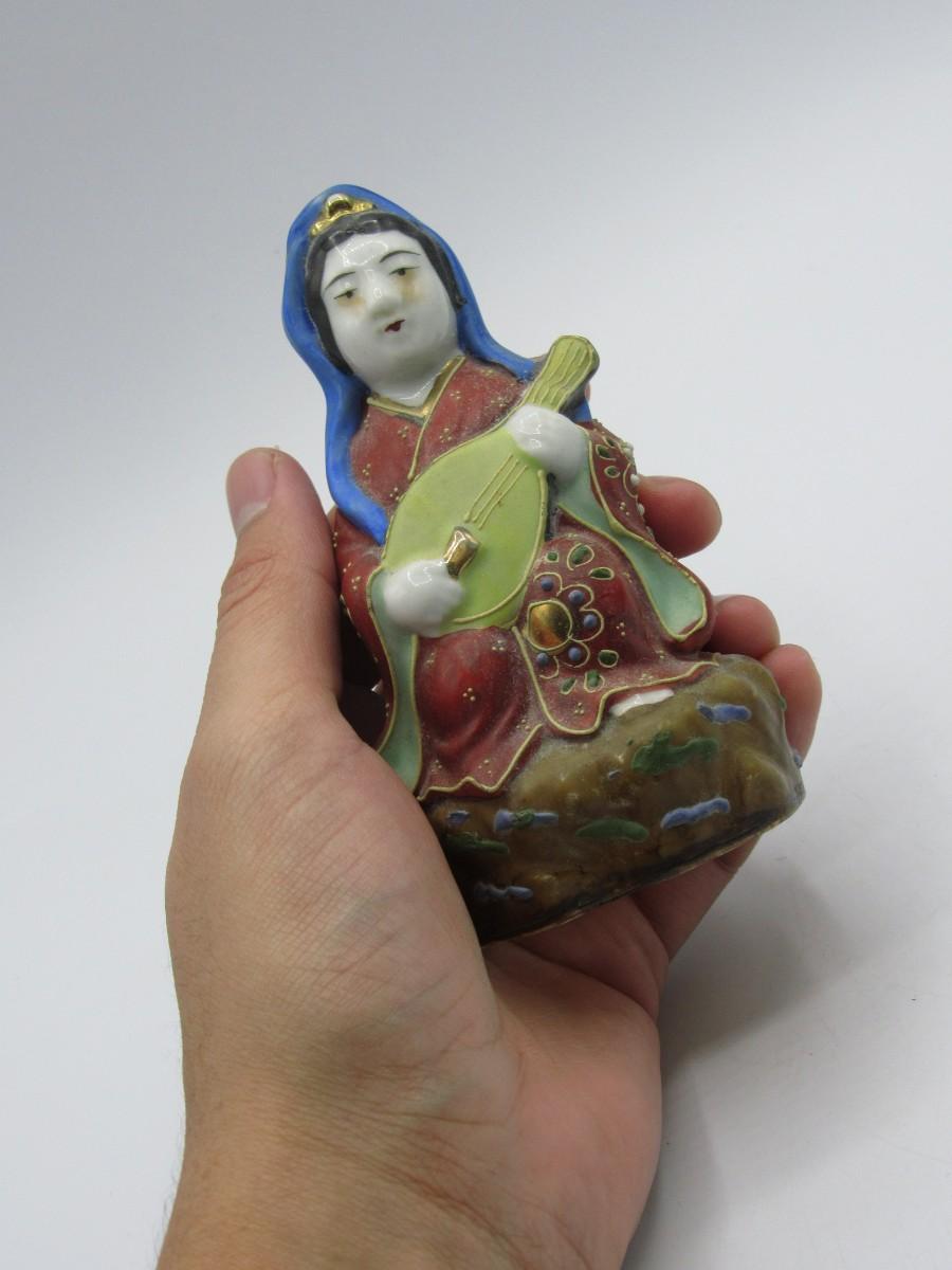 Vintage Japanese Porcelain Kutani Satsuma Moriage Lady Figurine with Instrument