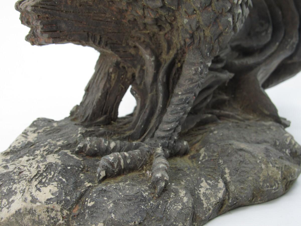 There are some chips around the figurine, and there is a significant chip to the beak. Check pictures for more details, very majestic pose!
