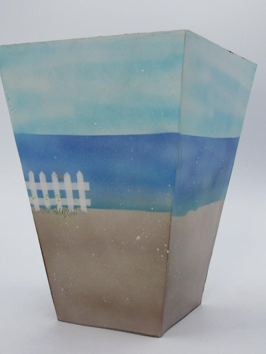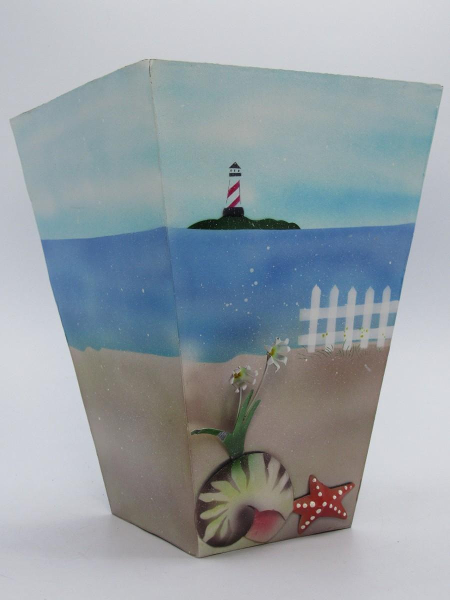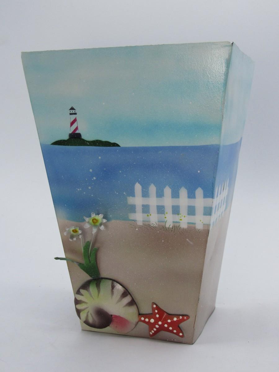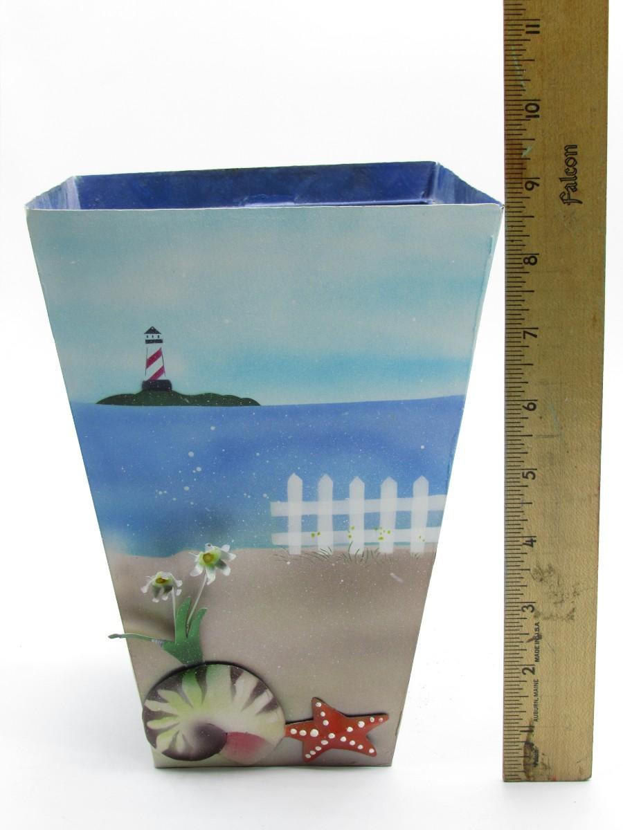 Small Retro 1999 Enesco Nautical Lighthouse Seascape Metal Tin Trash Can