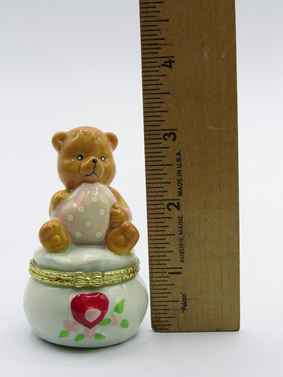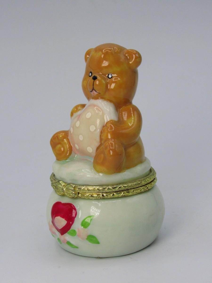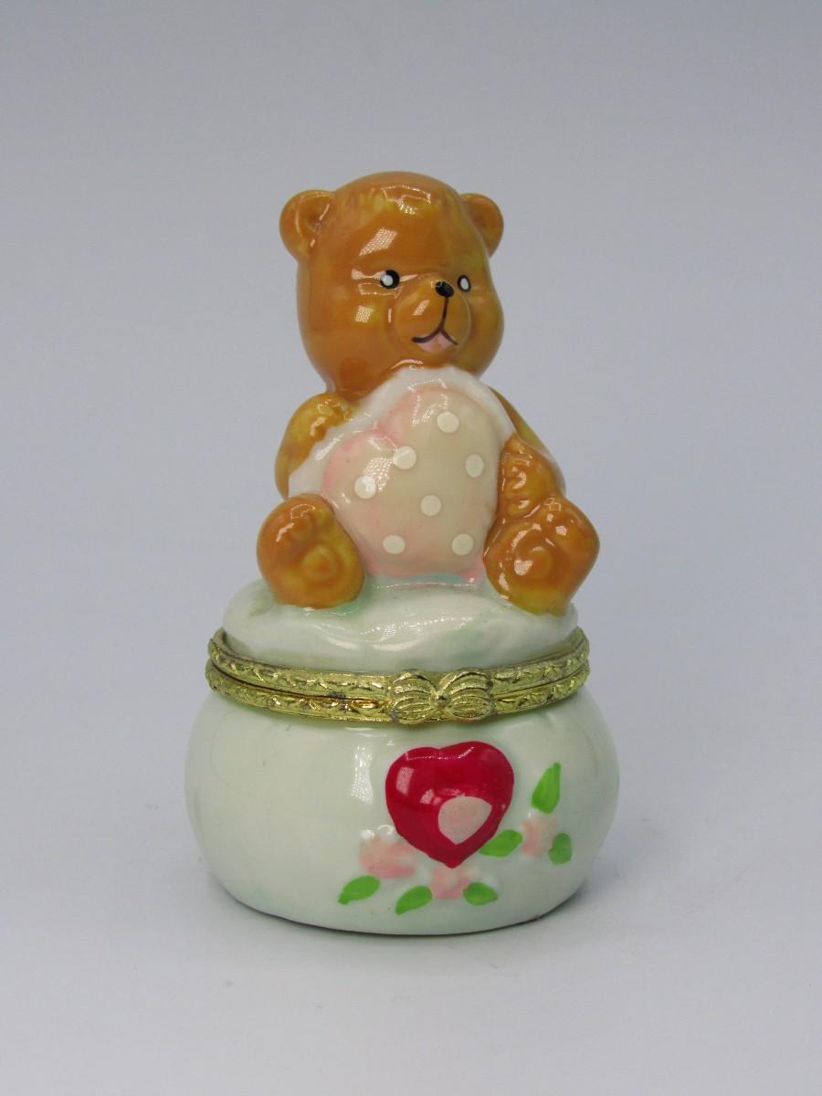 Ceramic Trinket Box with Bear and Hearts with Hinged Lid