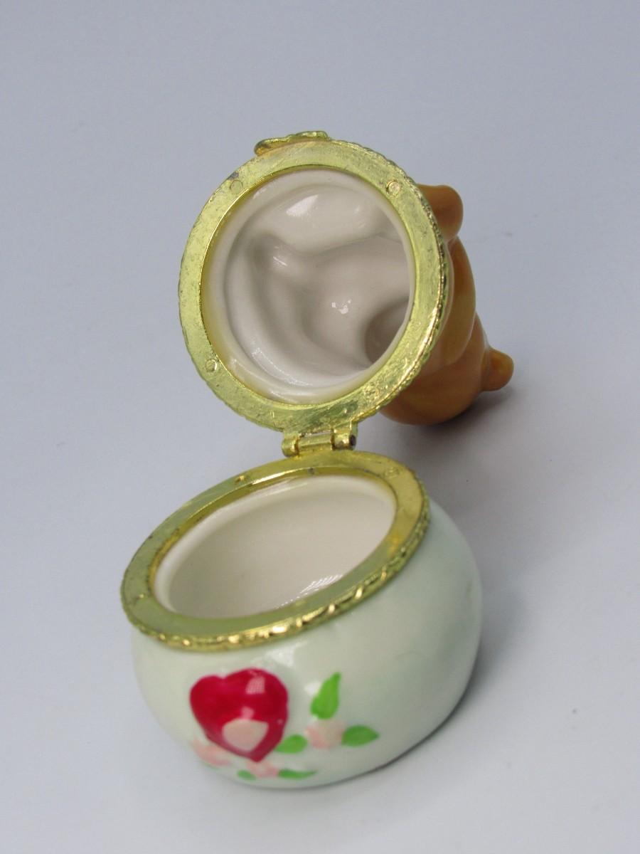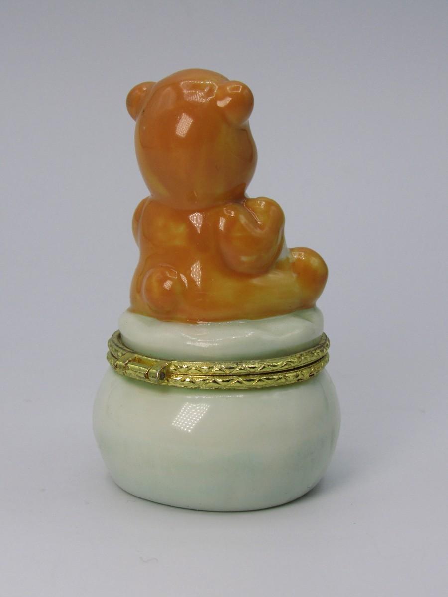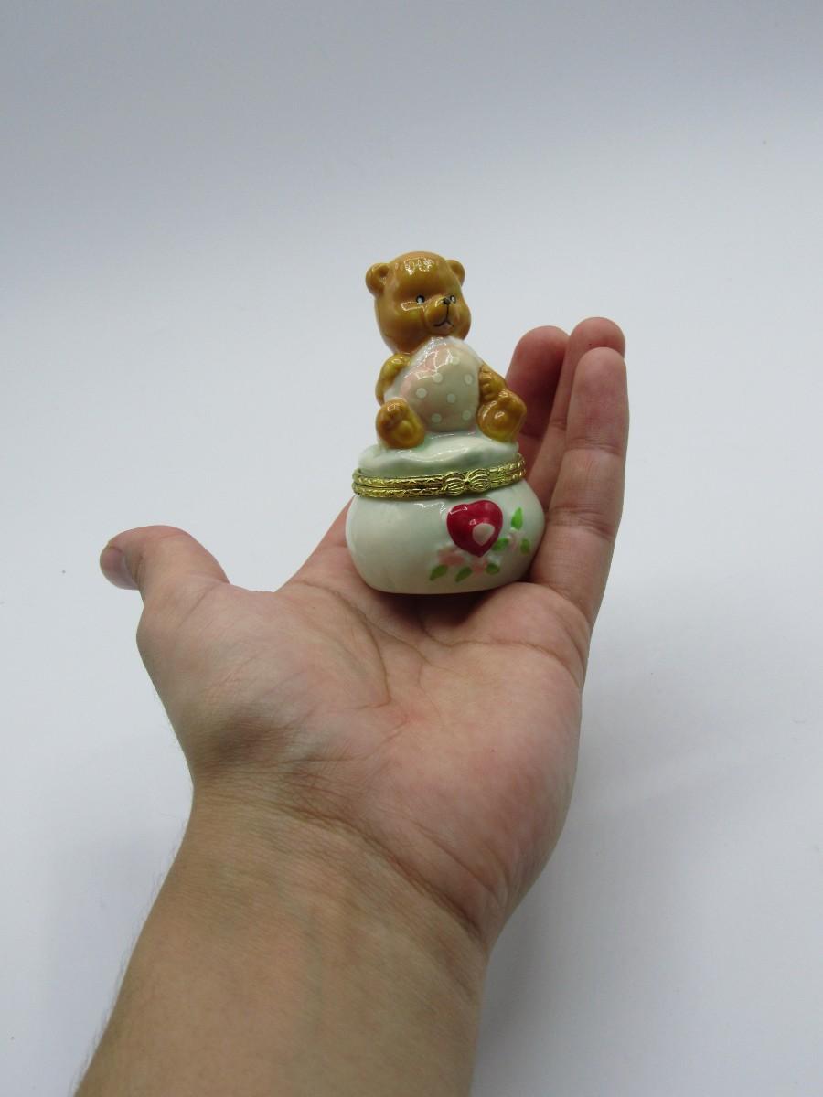 Ceramic Trinket Box with Bear and Hearts with Hinged Lid