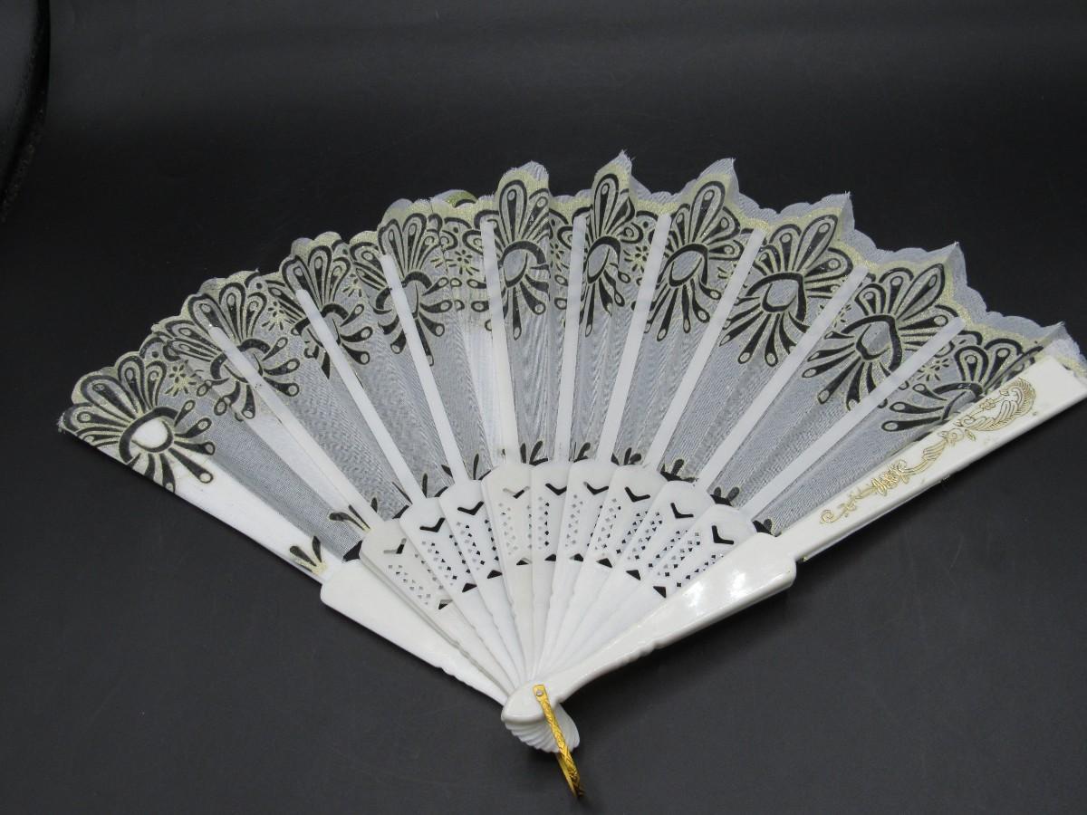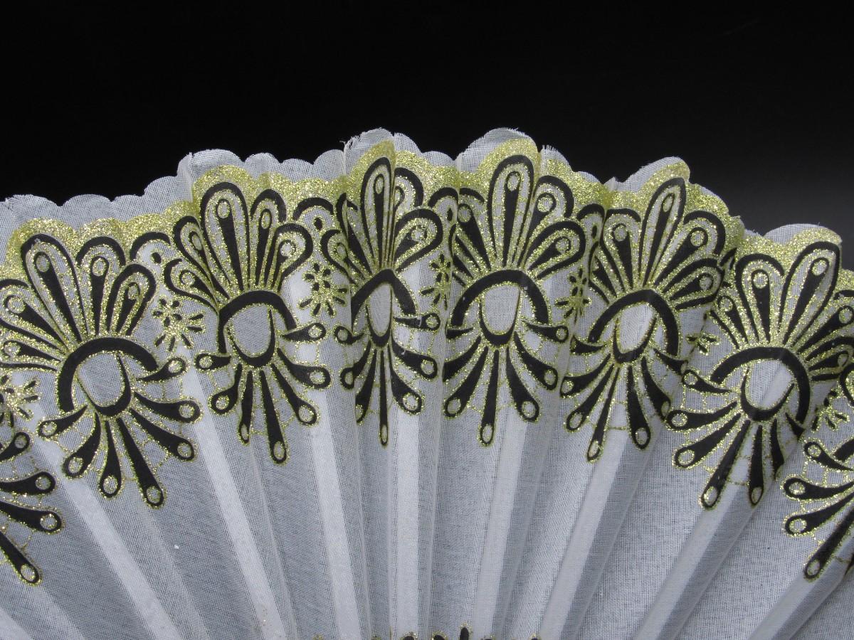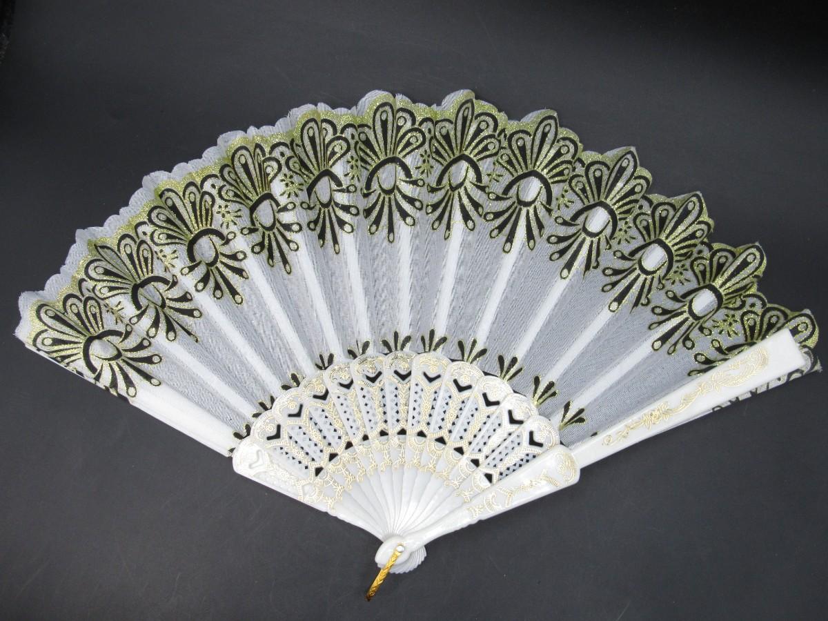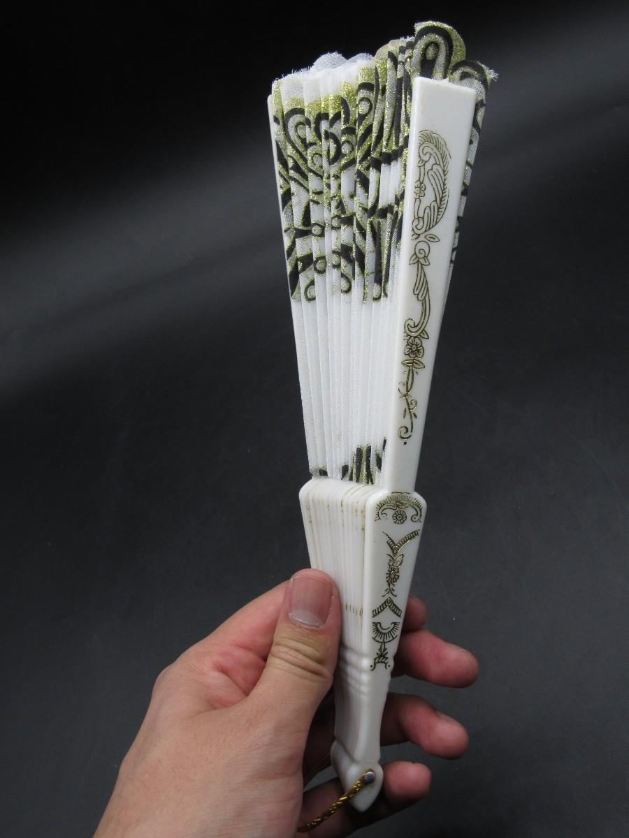 Vintage Green White Art Nouveau Style Gold Folding Fan