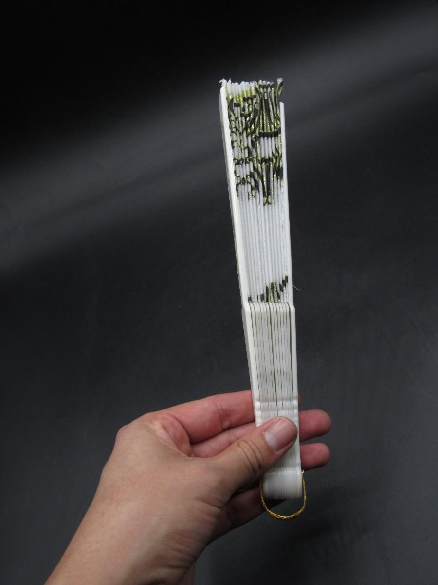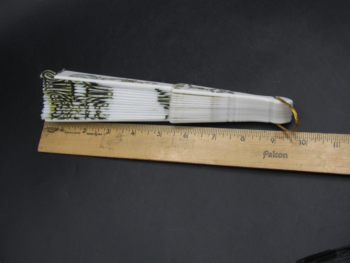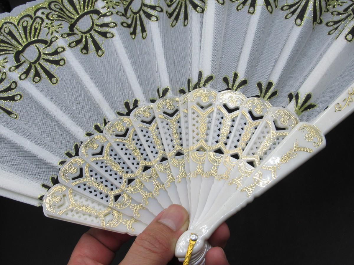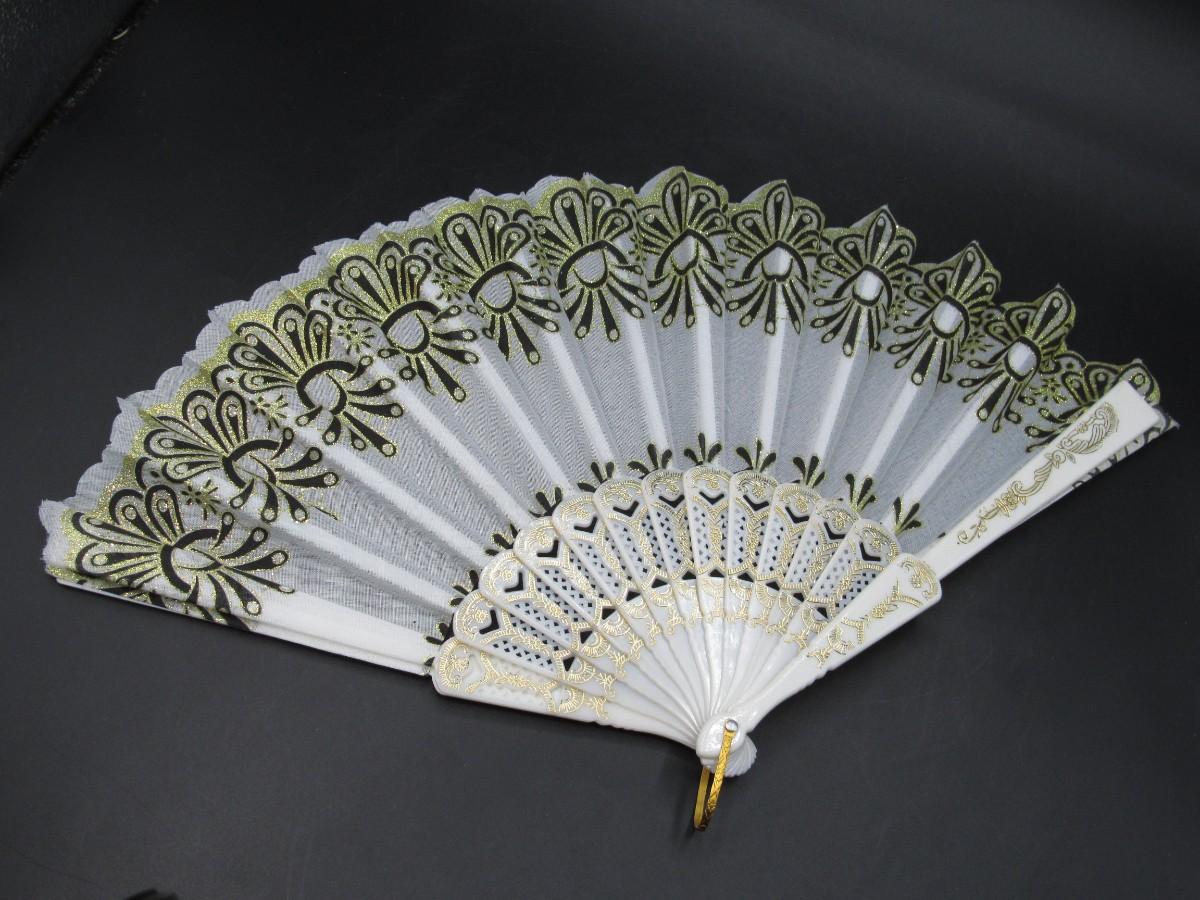 Vintage Green White Art Nouveau Style Gold Folding Fan