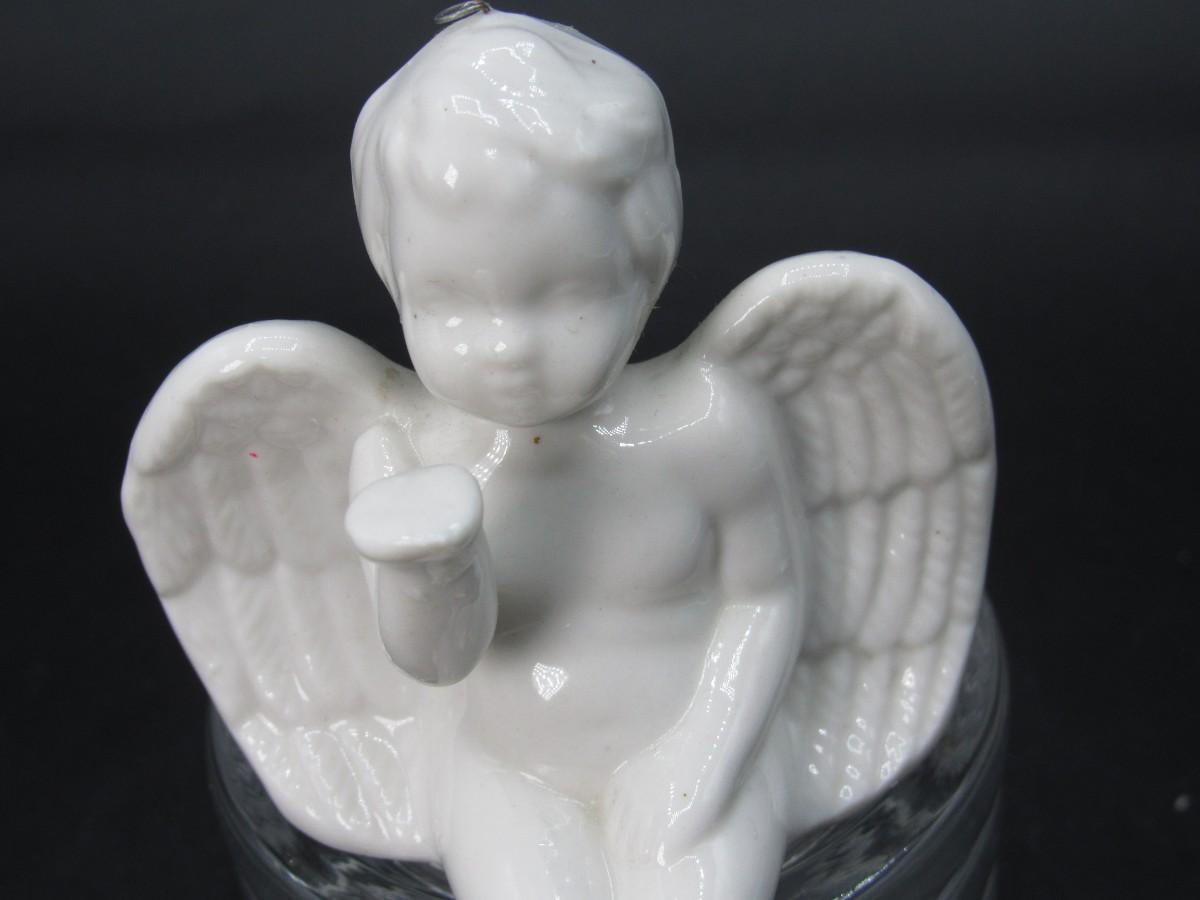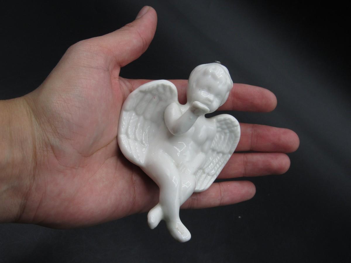 Retro White Porcelain Shelf Sitter Cherub Angel Ornament