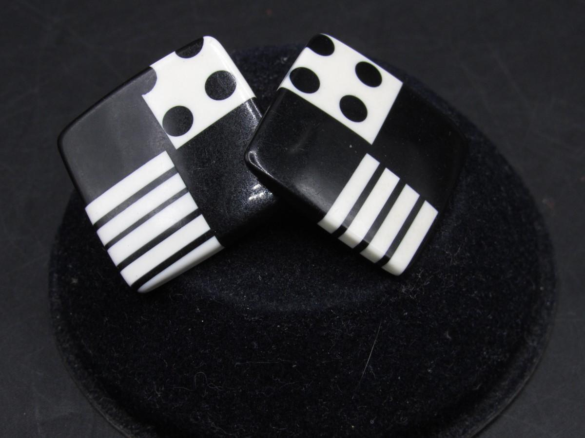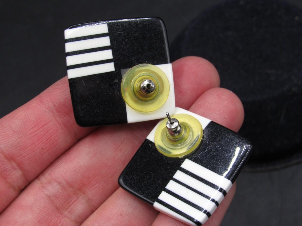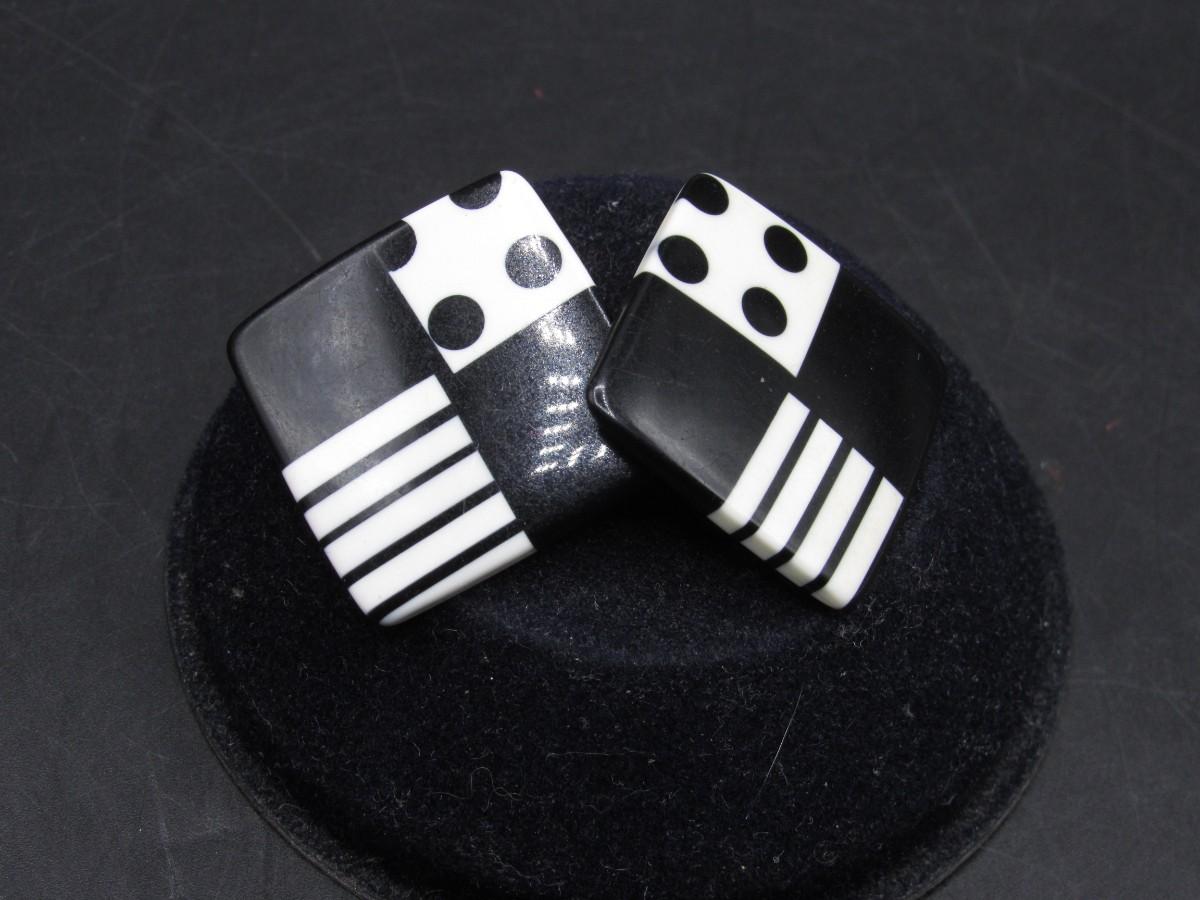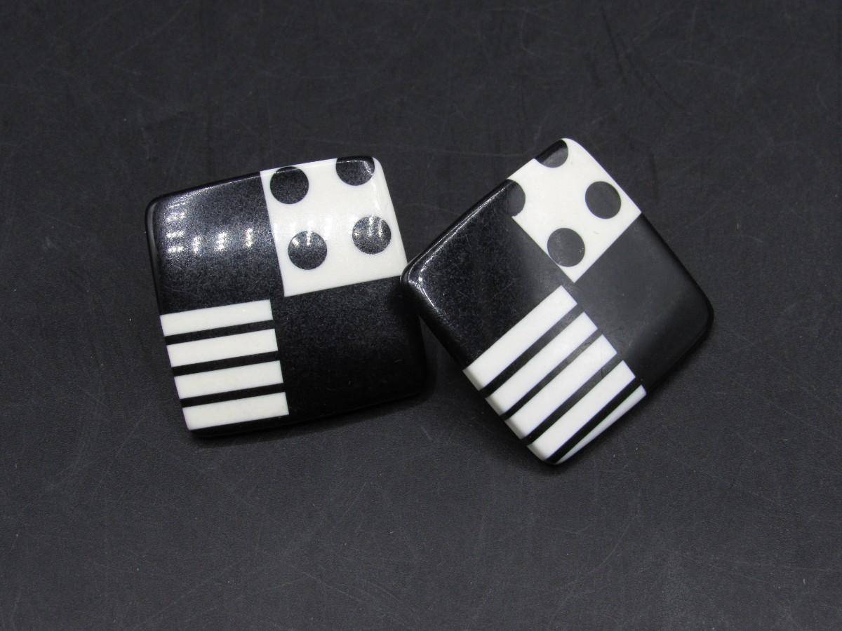 Retro Square Cubist Abstract Black & White Fashion Earrings